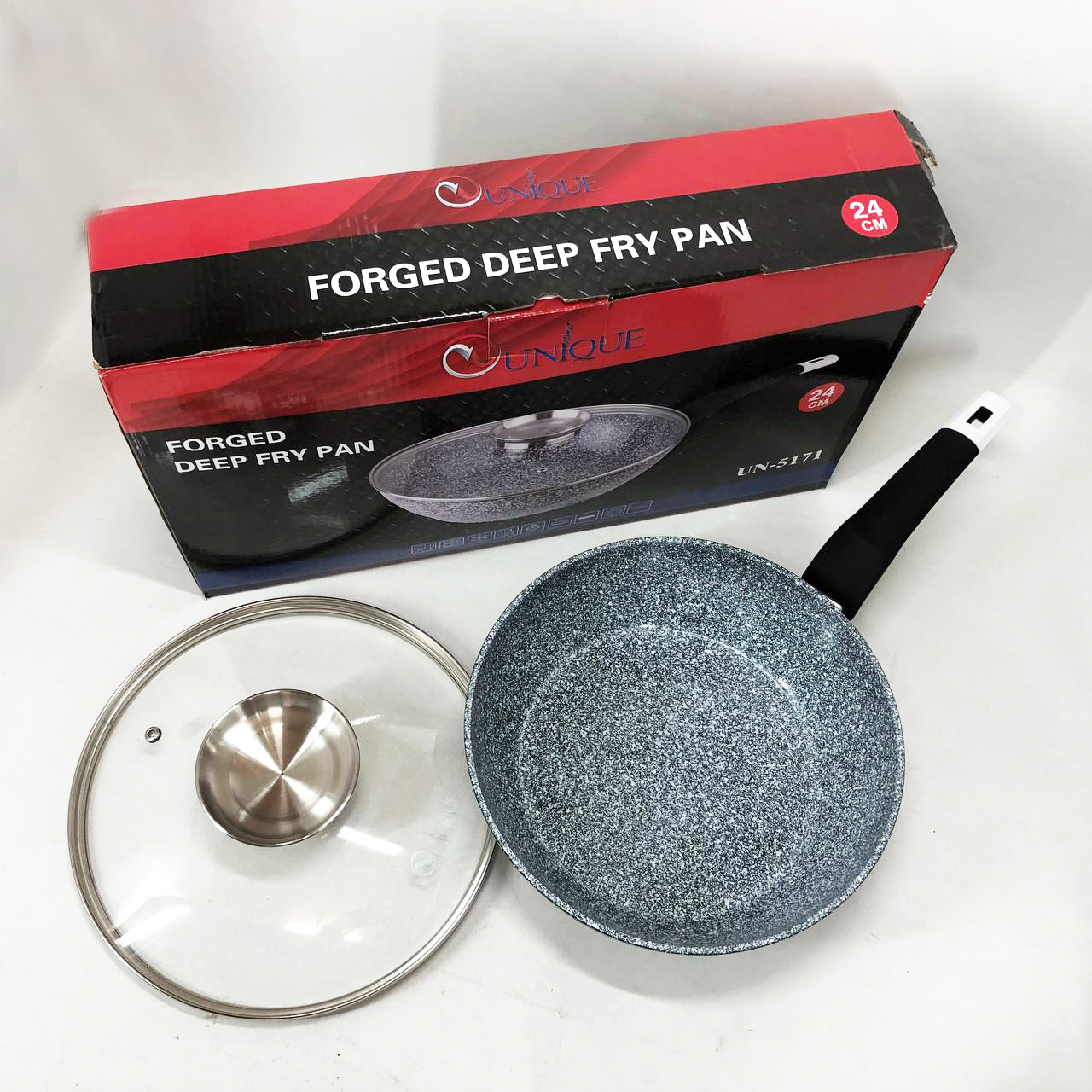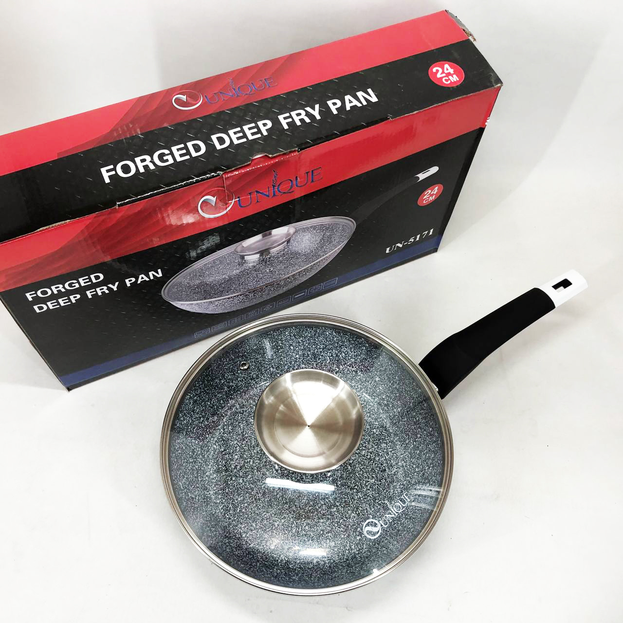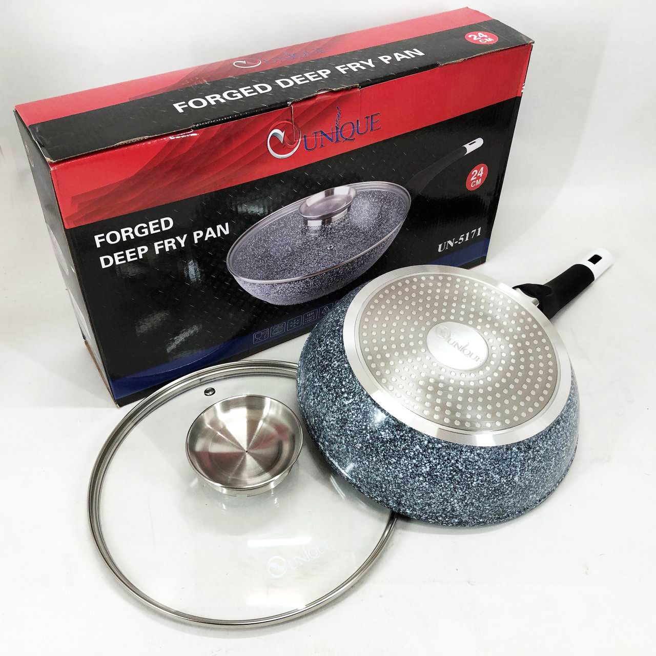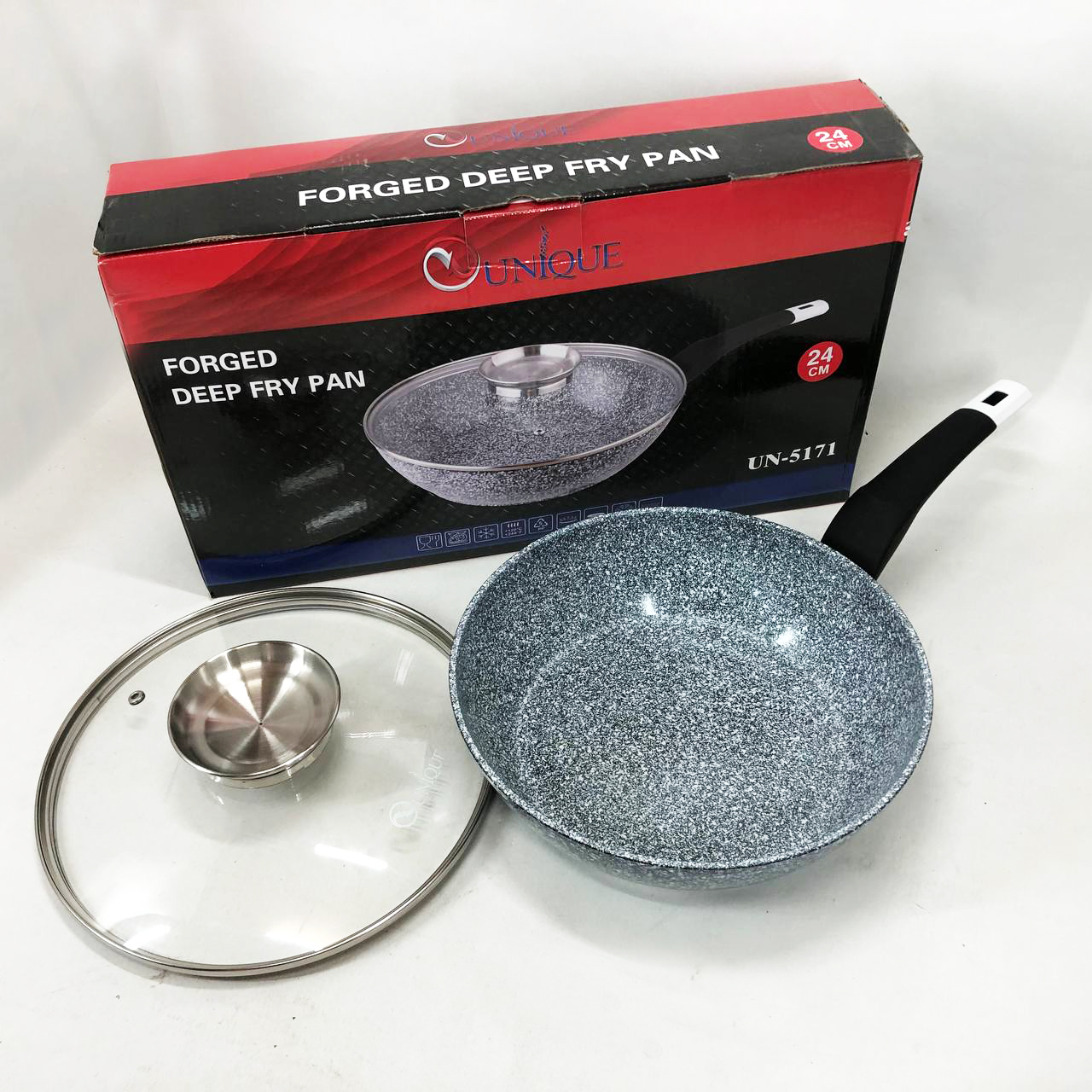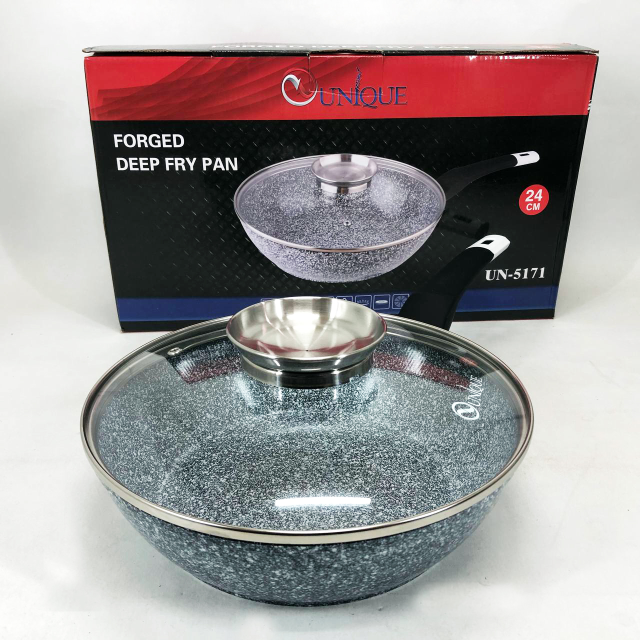 Глибока сковорода з кришкою Unique UN-5171 24 см, Сковорода для приготування на плиті, зручна на кухню