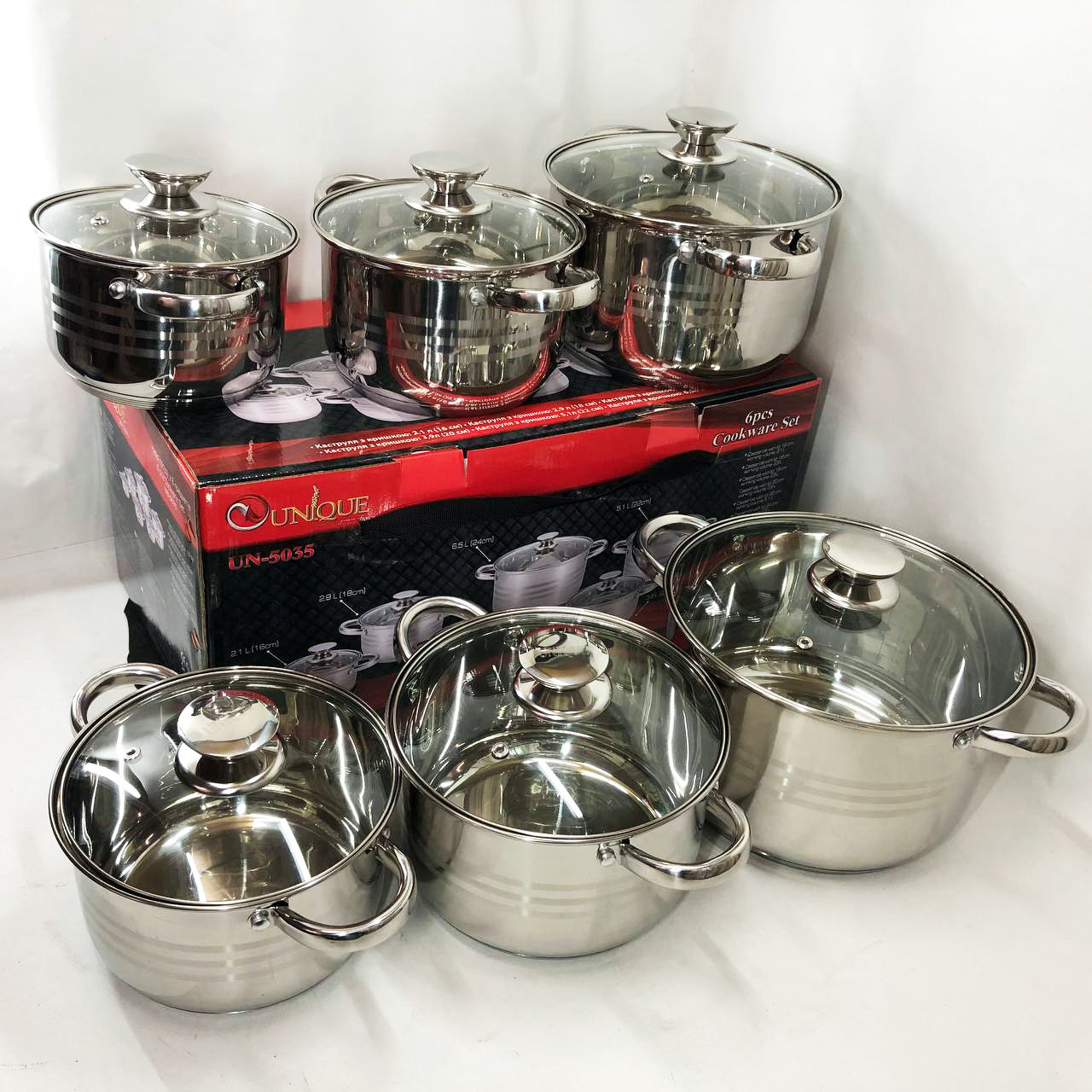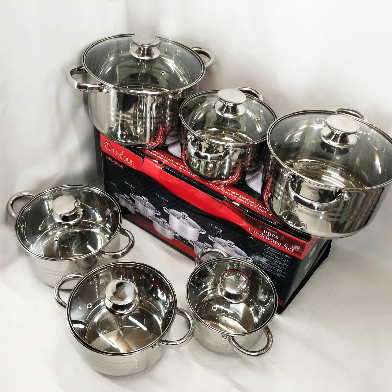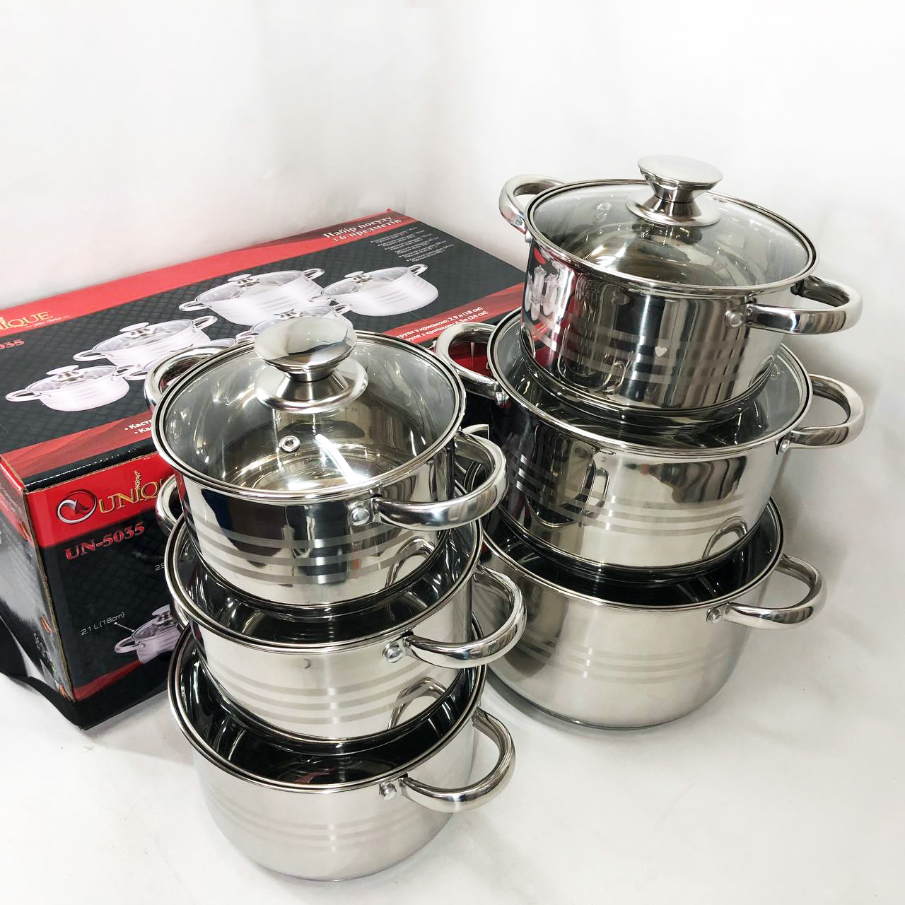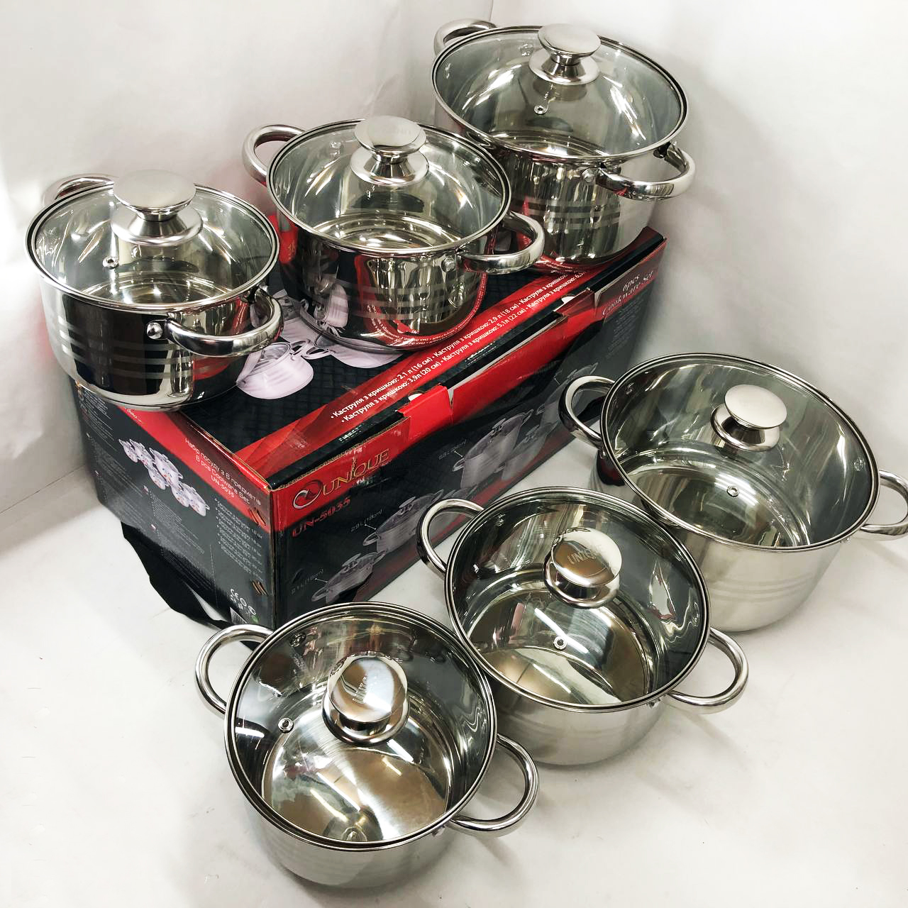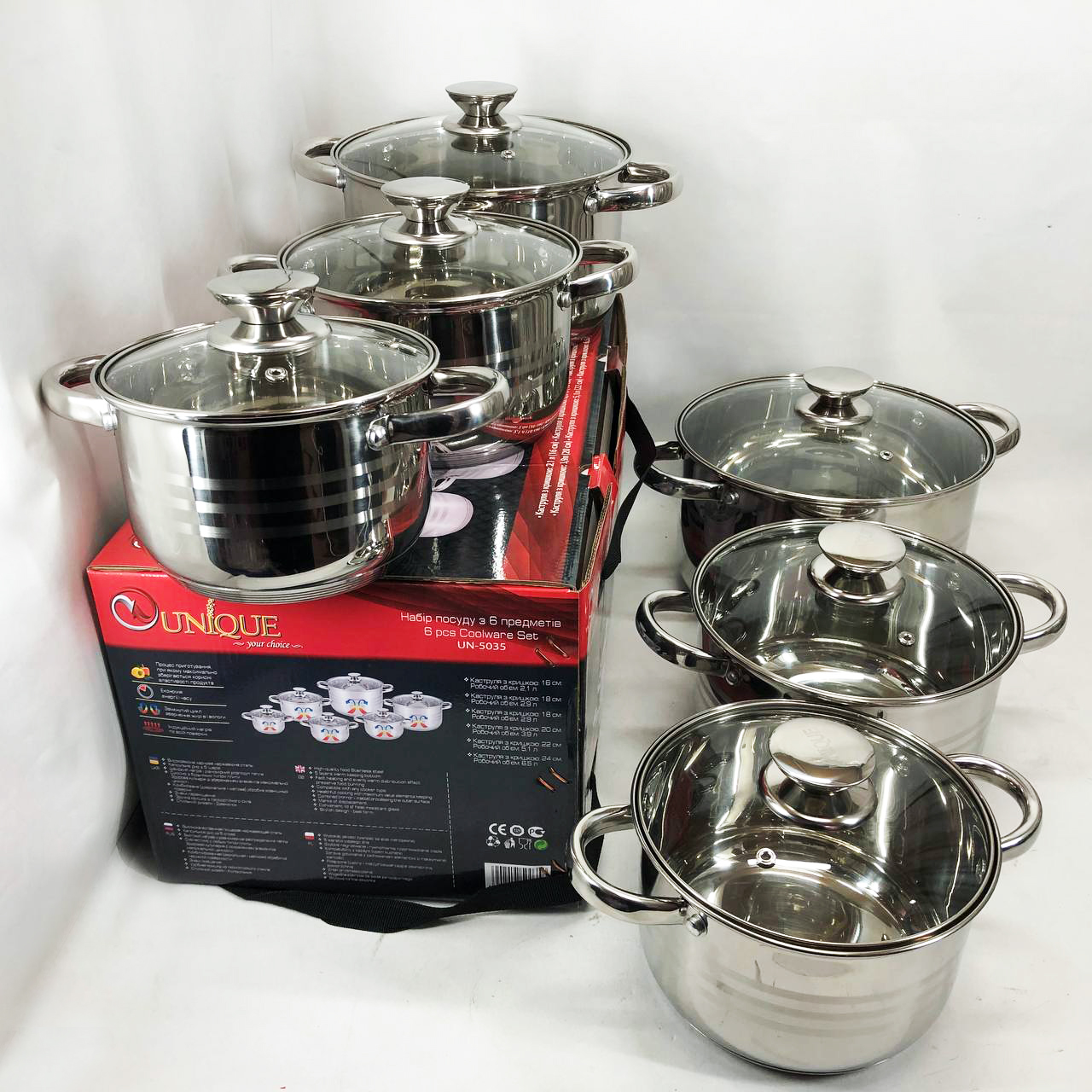 Набір каструль UNIQUE UN-5035 з нержавіючої сталі з товстим дном в 5 шарів з кришками, 12 предметів