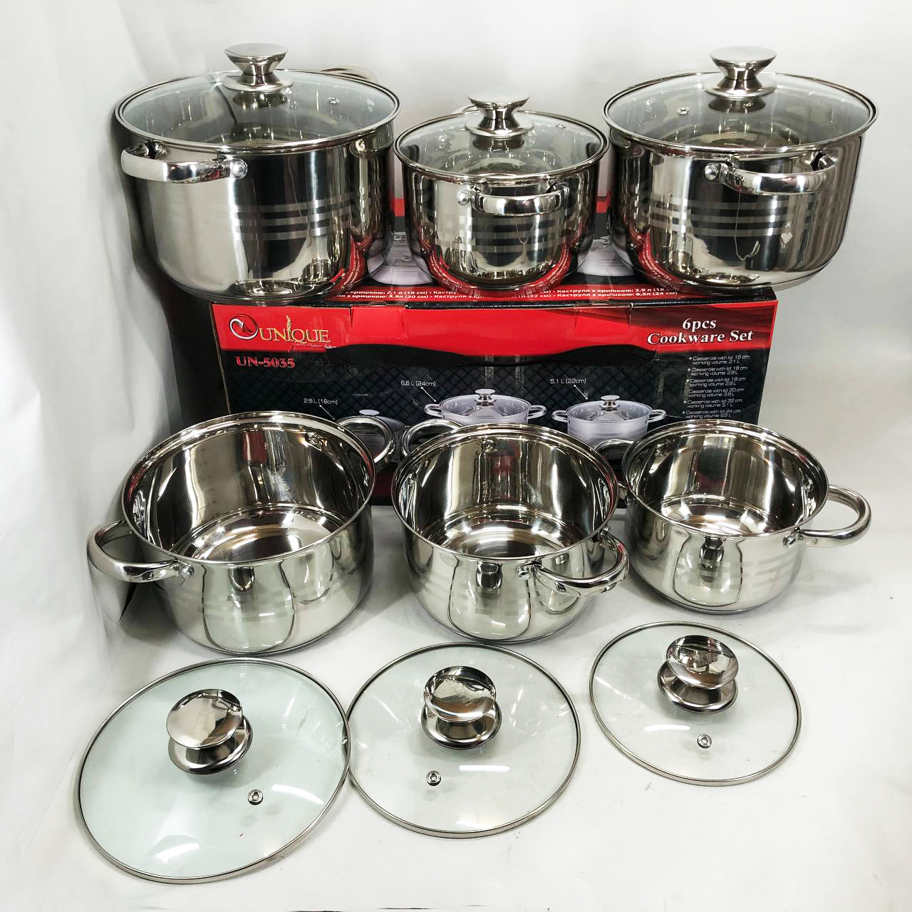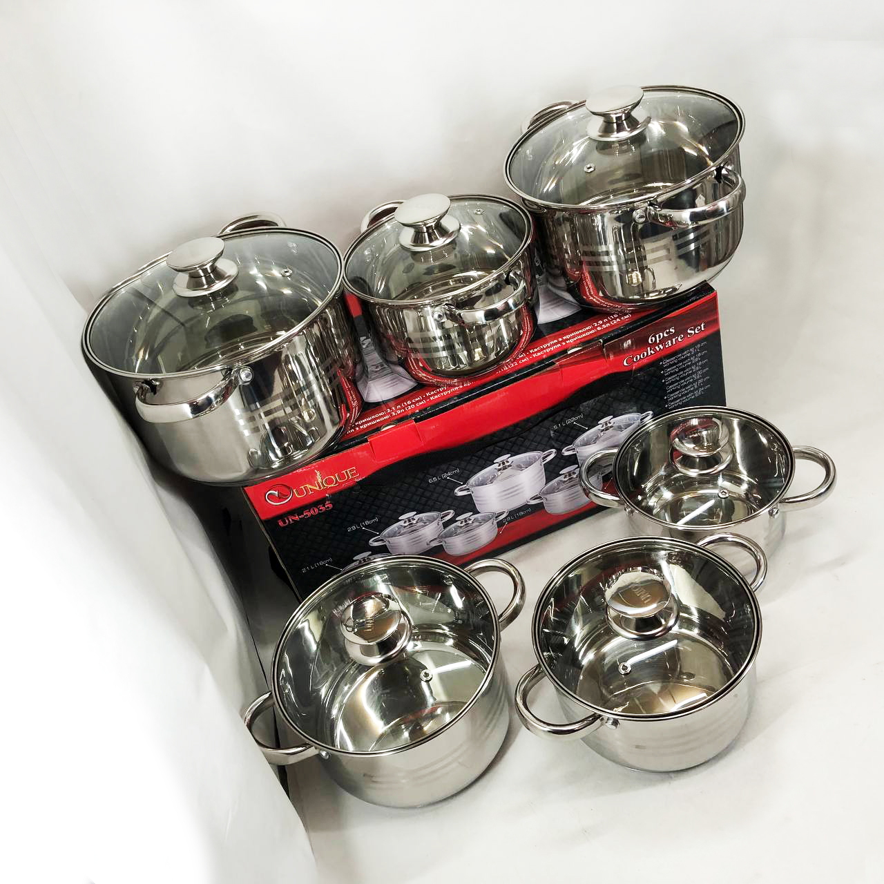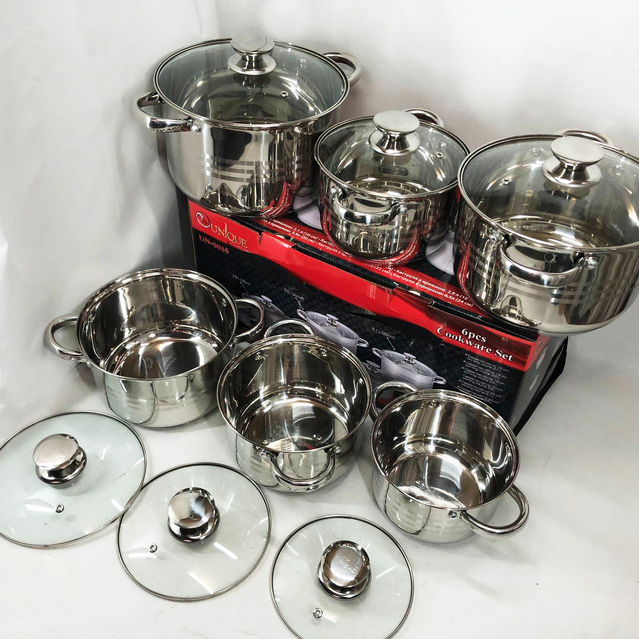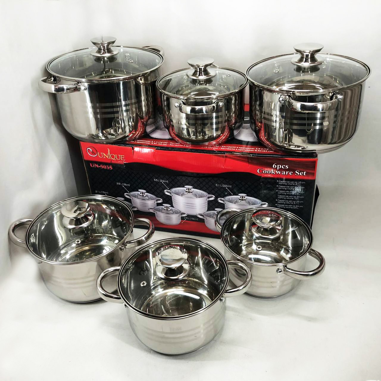 Набір каструль UNIQUE UN-5035 з нержавіючої сталі з товстим дном в 5 шарів з кришками, 12 предметів