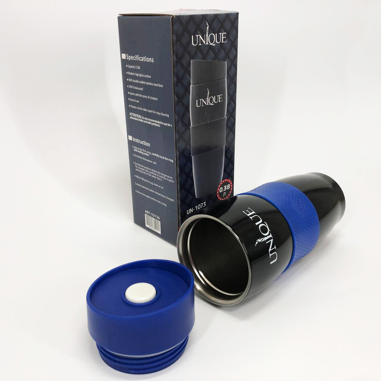 Термокухоль UNIQUE UN-1073 0.38 л, Термос з нержавіючої сталі металевий. Колір: синій