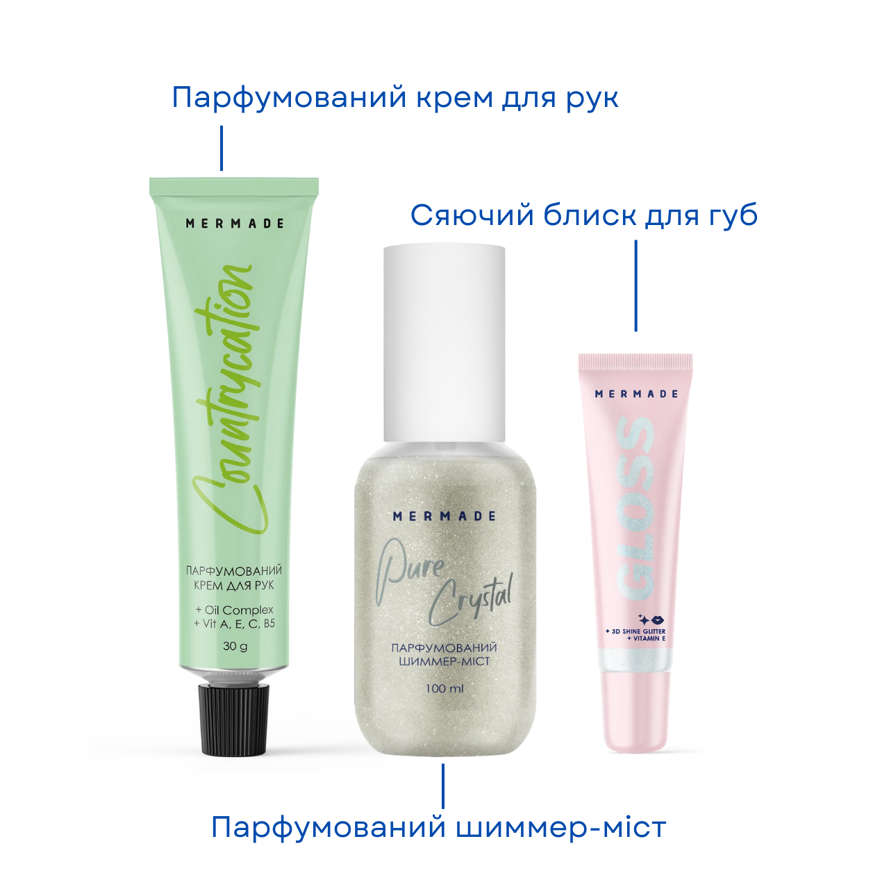 | Склад набору | Спрей|Крем для рук|Блиск для губ |