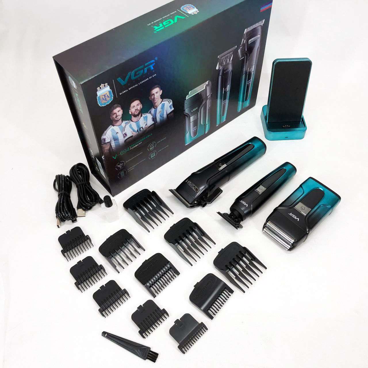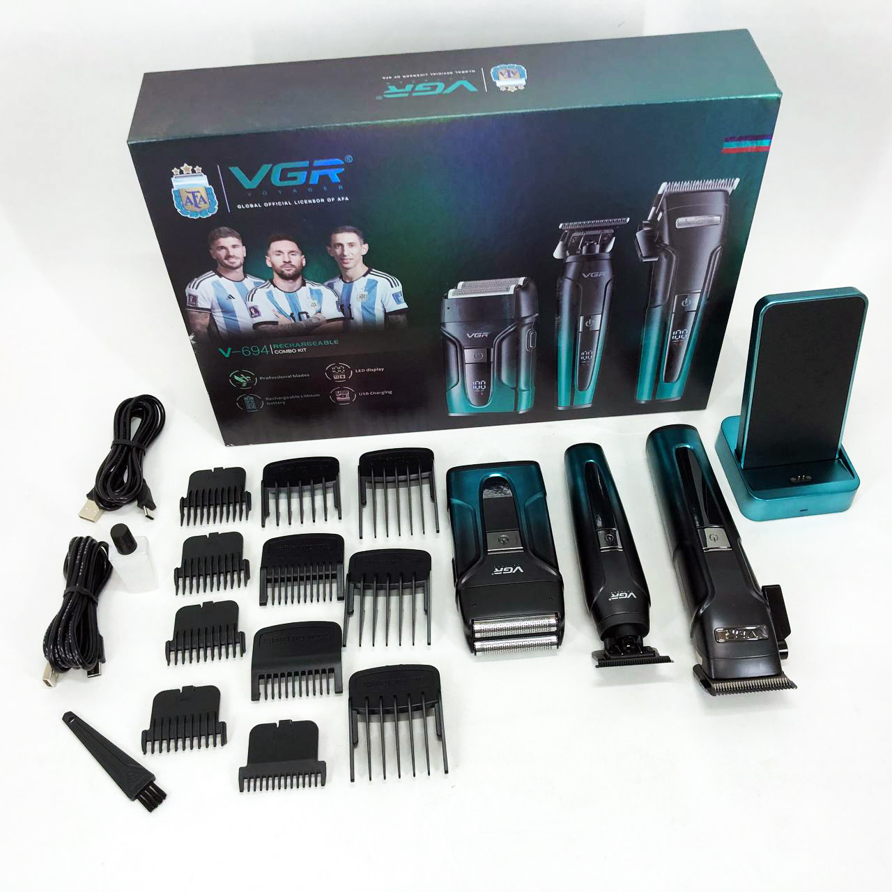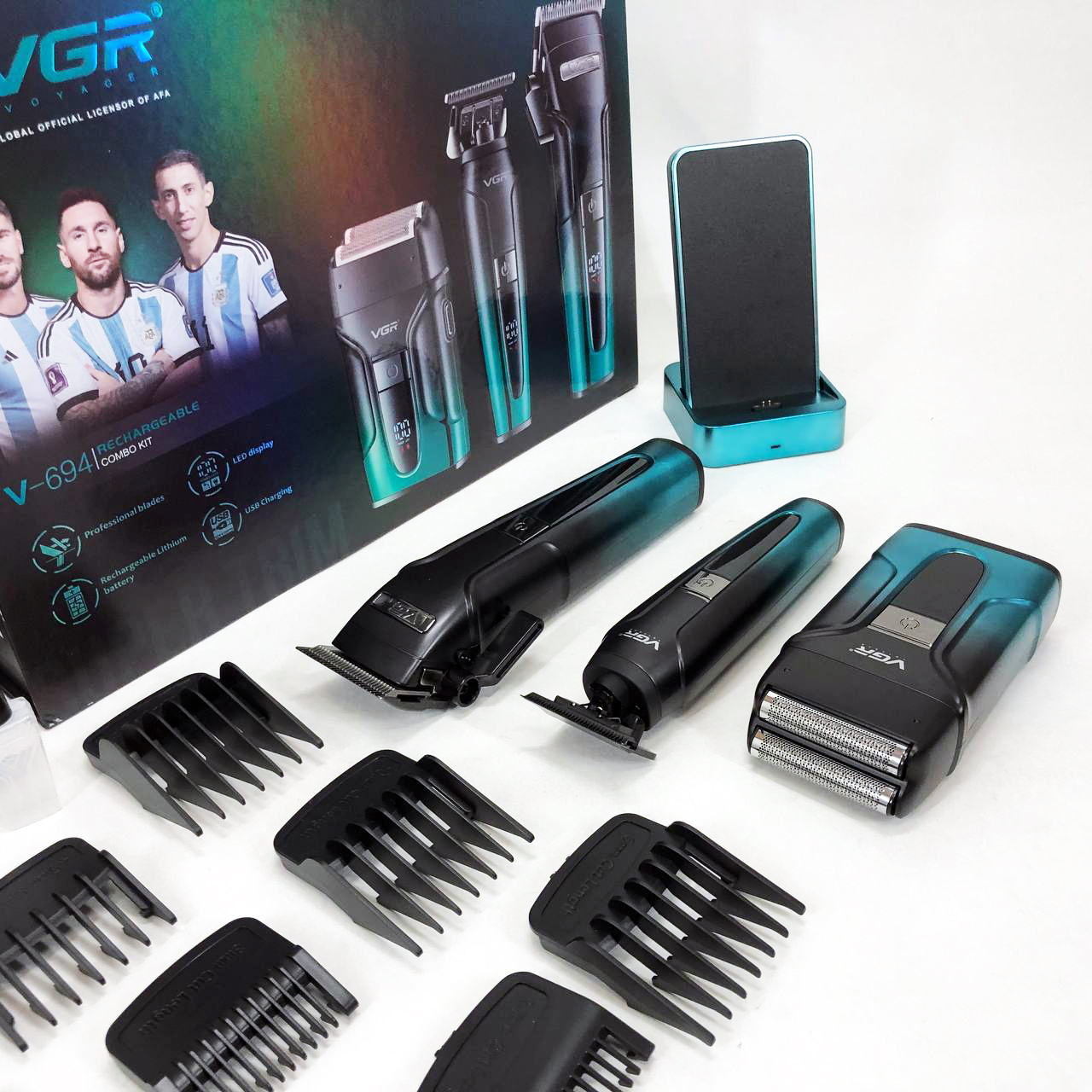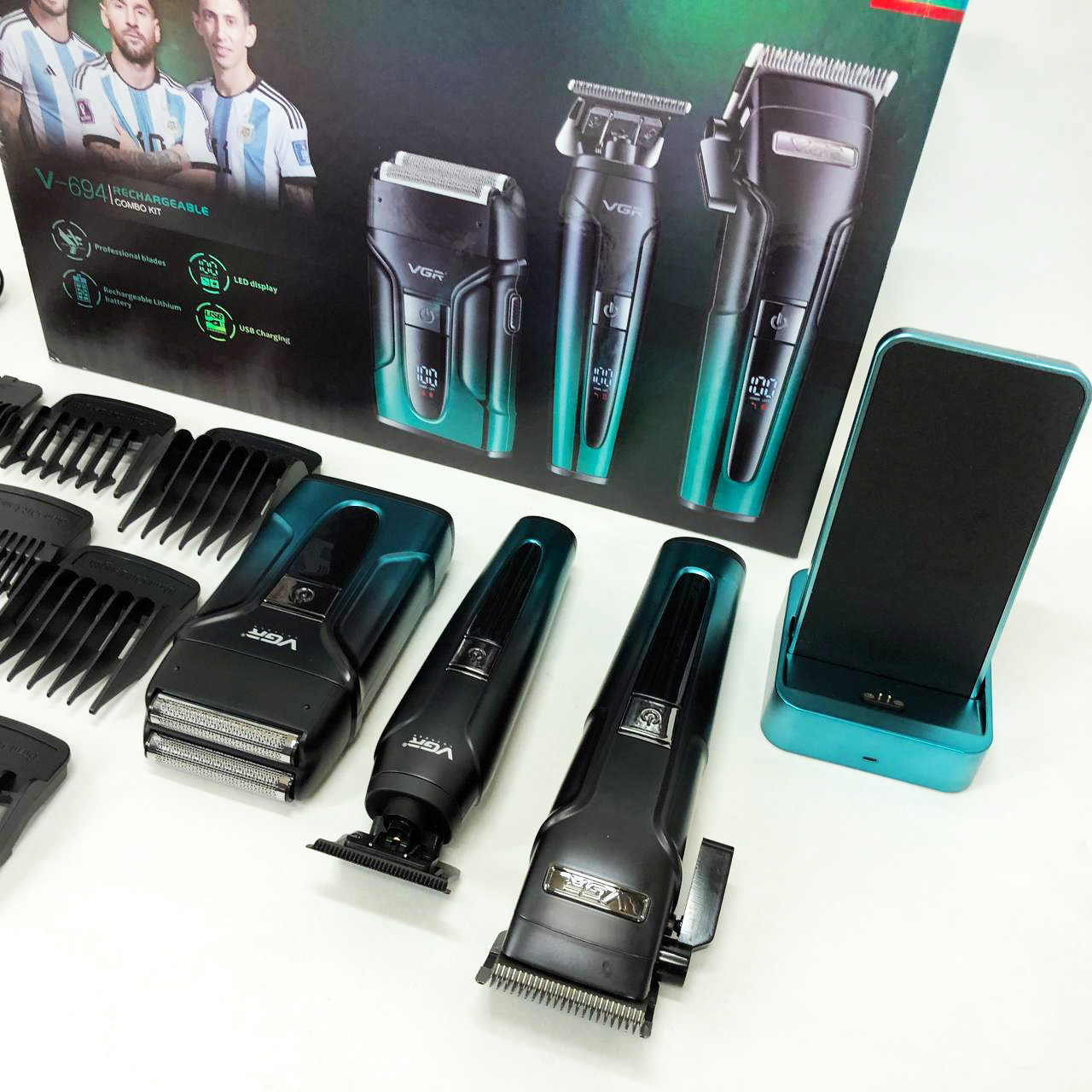 - VGR Professional Rechargeable Combo Kit V-694 є надійним, багатофункціональним набором для стрижки та гоління, який стане незамінним помічником з догляду за волоссям та бородою, забезпечуючи ефективність, зручність та тривалий термін служби.