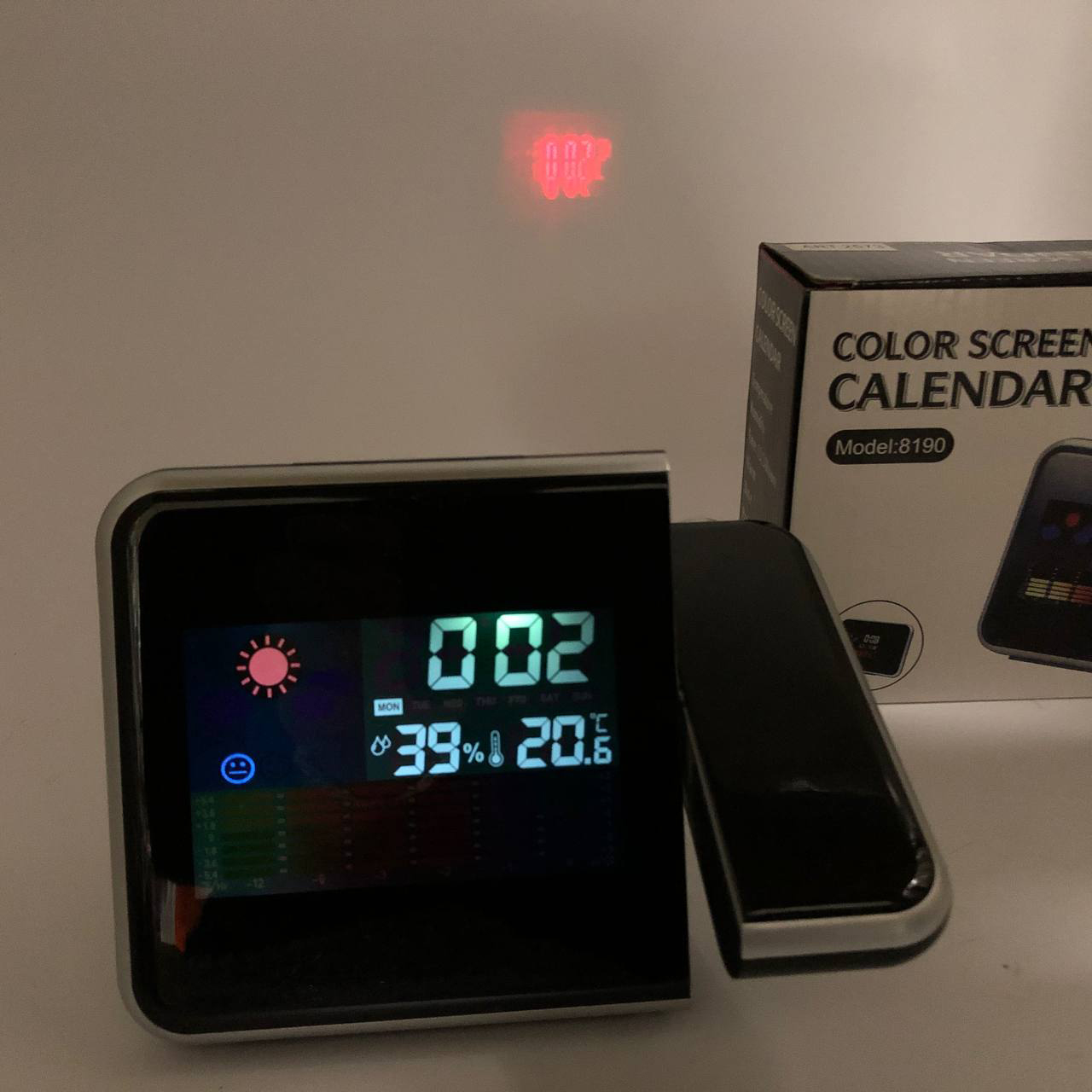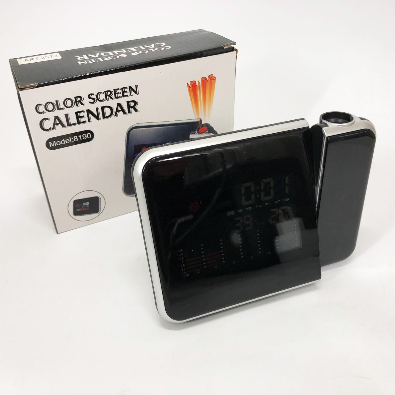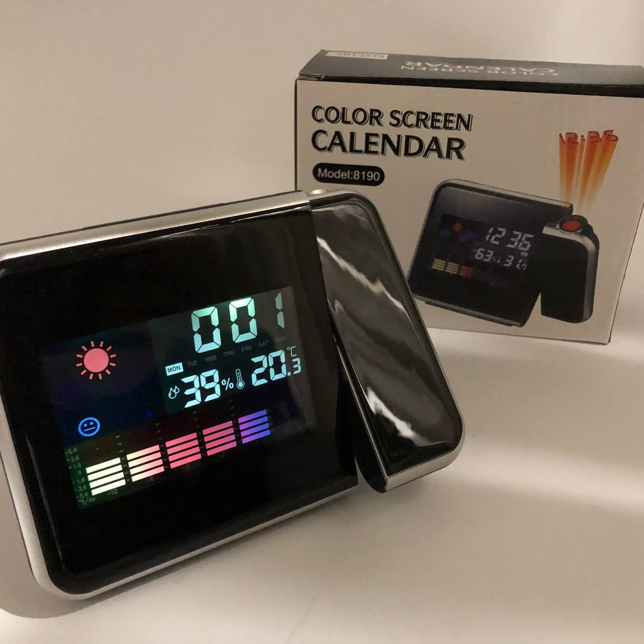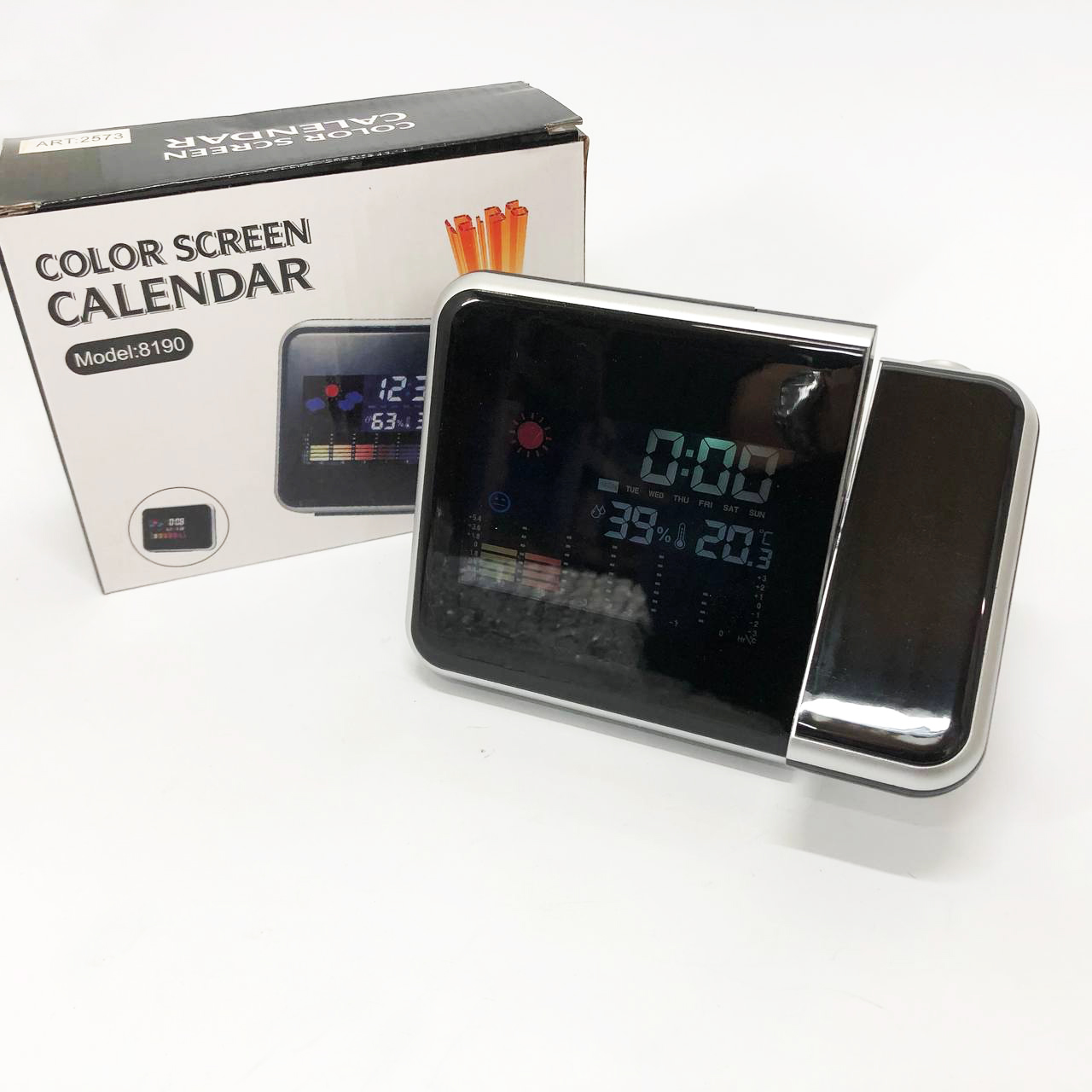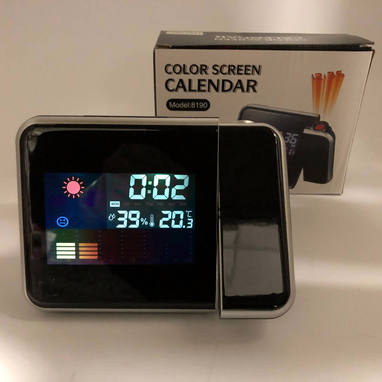 Проекційний годинник моделі Сolor Screen Calendar 8190 поєднує в собі функції годинника, календаря, будильника, метеостанції, які моментально вимірять вологість повітря та температуру в приміщенні. Крім того, даний прилад оснащений функцією проектування часу на стіни, стелю або будь-яку іншу рівну поверхню, а вся інформація виводиться на зручний, кольоровий дисплей. Дисплей оснащений функцією підсвічування, тому ви зможете побачити відображені на ньому цифри навіть уночі.