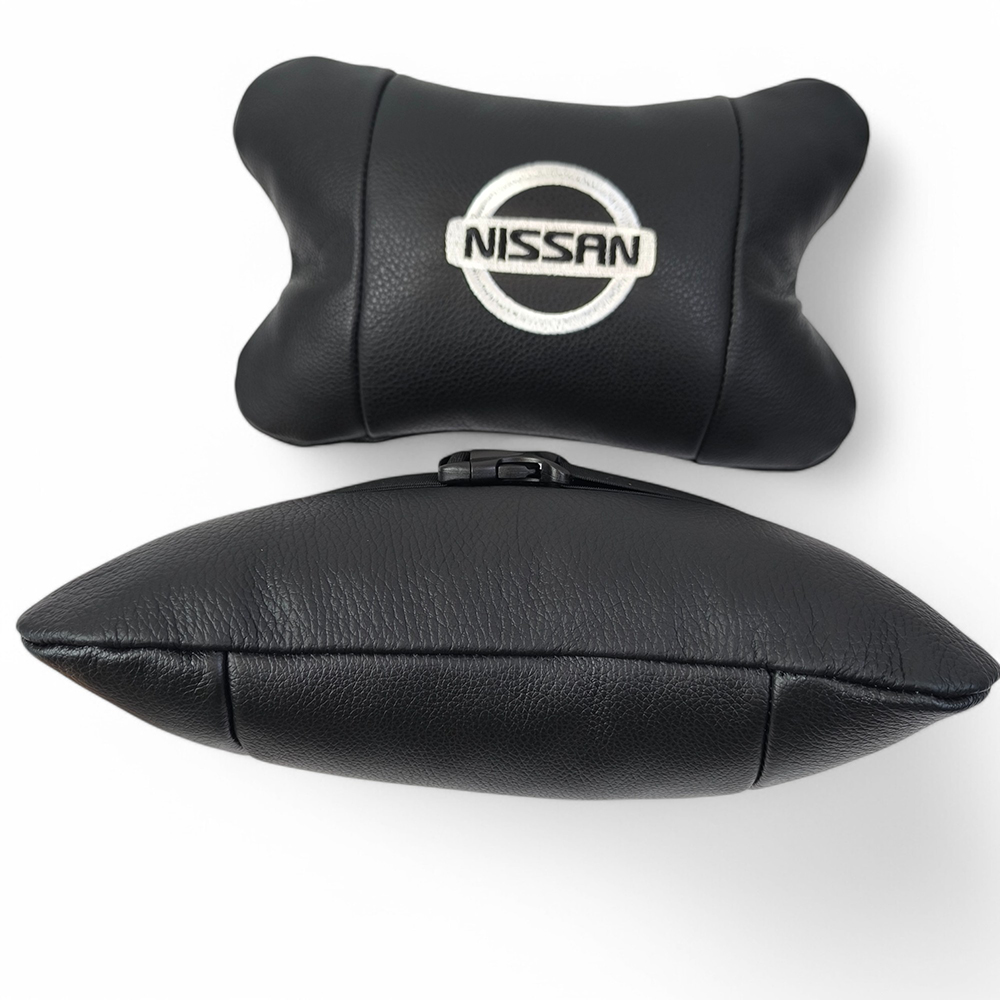 Подушки в авто 2 шт Nissan, натуральна шкіра, з логотипом Ніссан, на підголівник для вашої машини