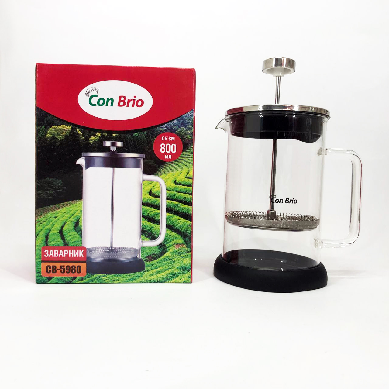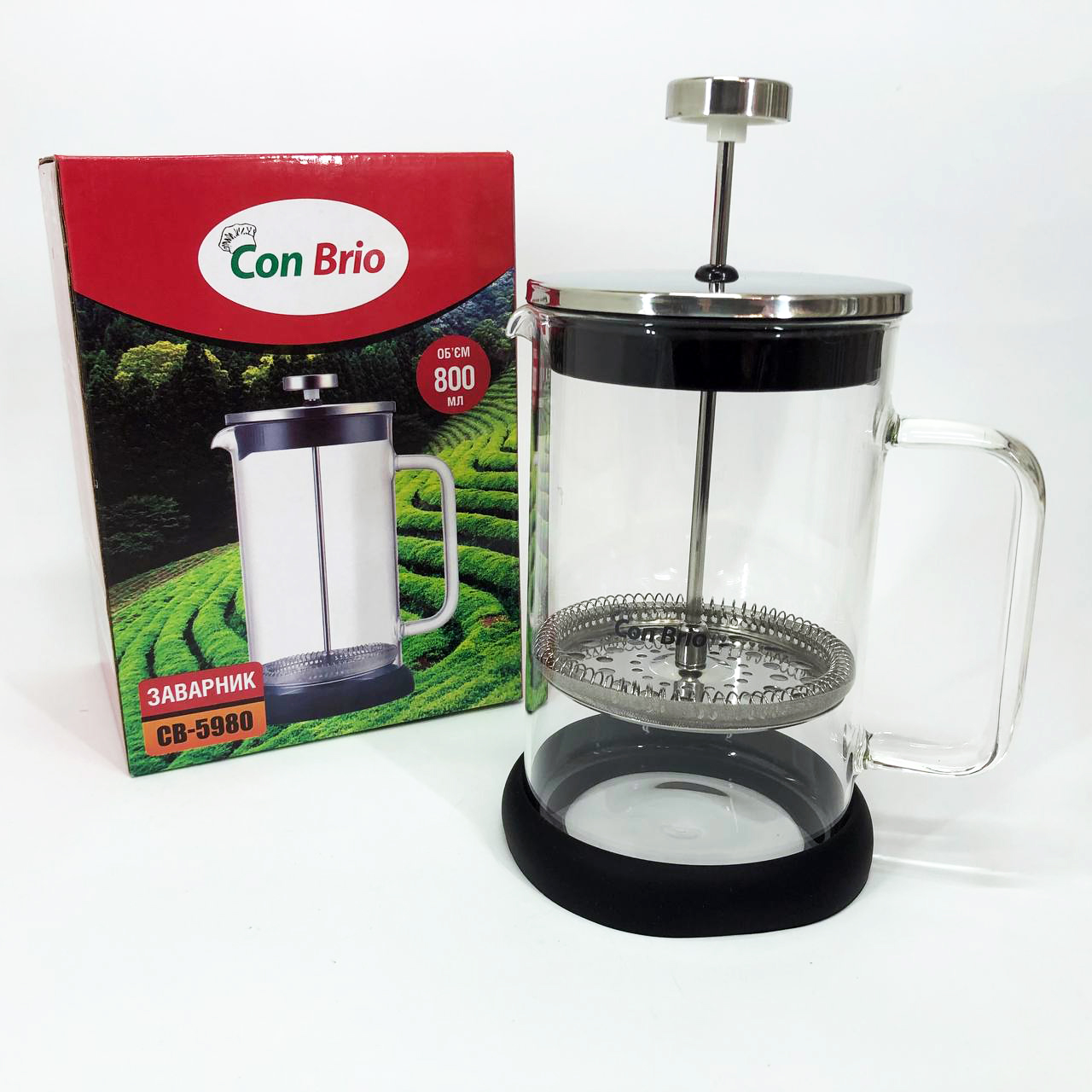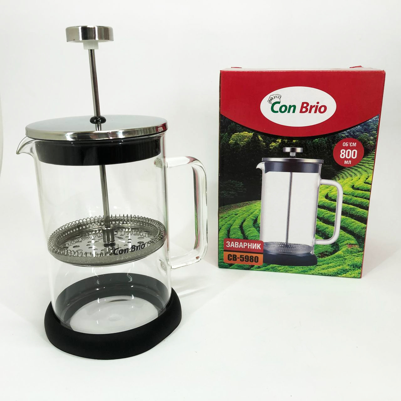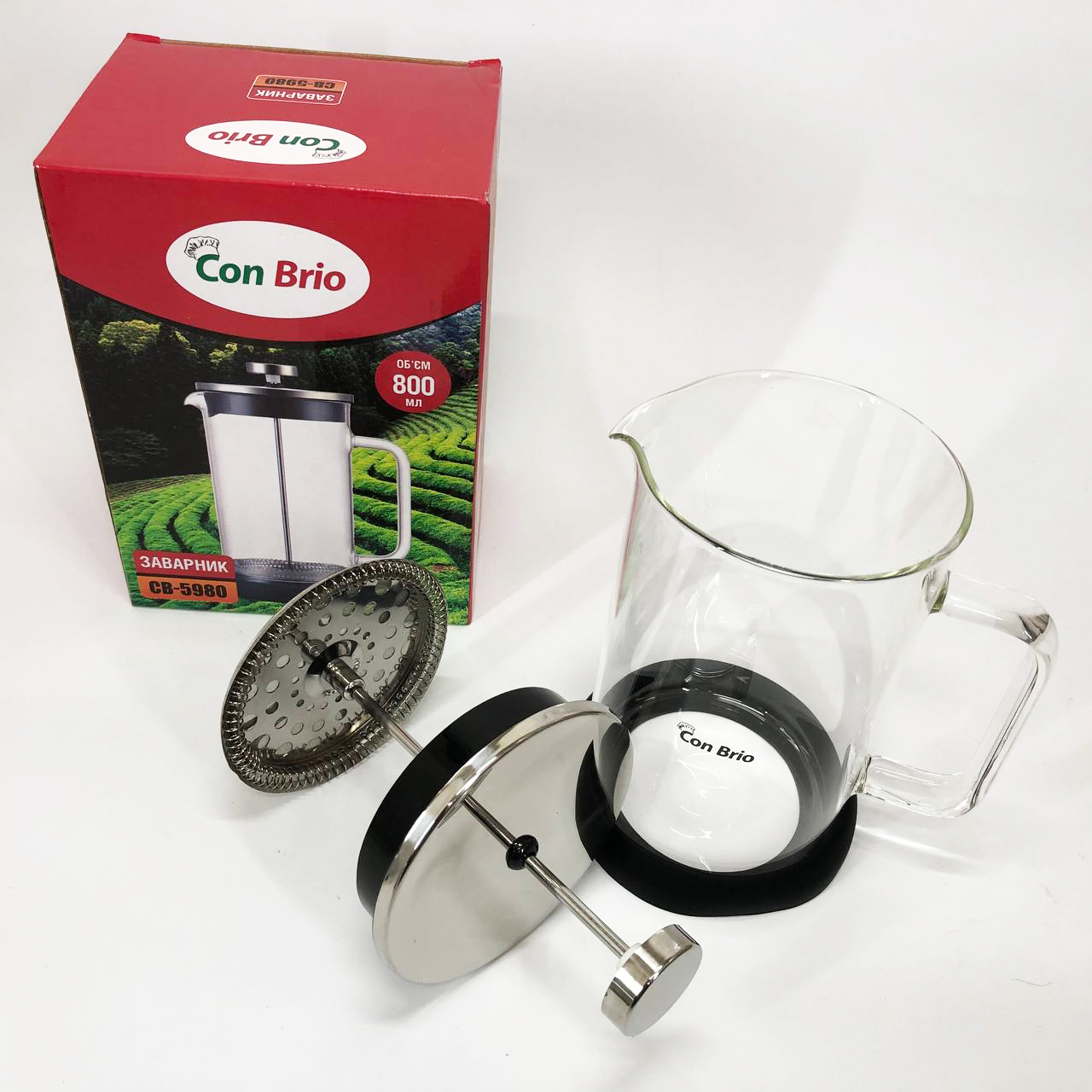 Френч-прес Con Brio CB-5980 800 мл, Чайник для заварювання трав, Заварник прозорий