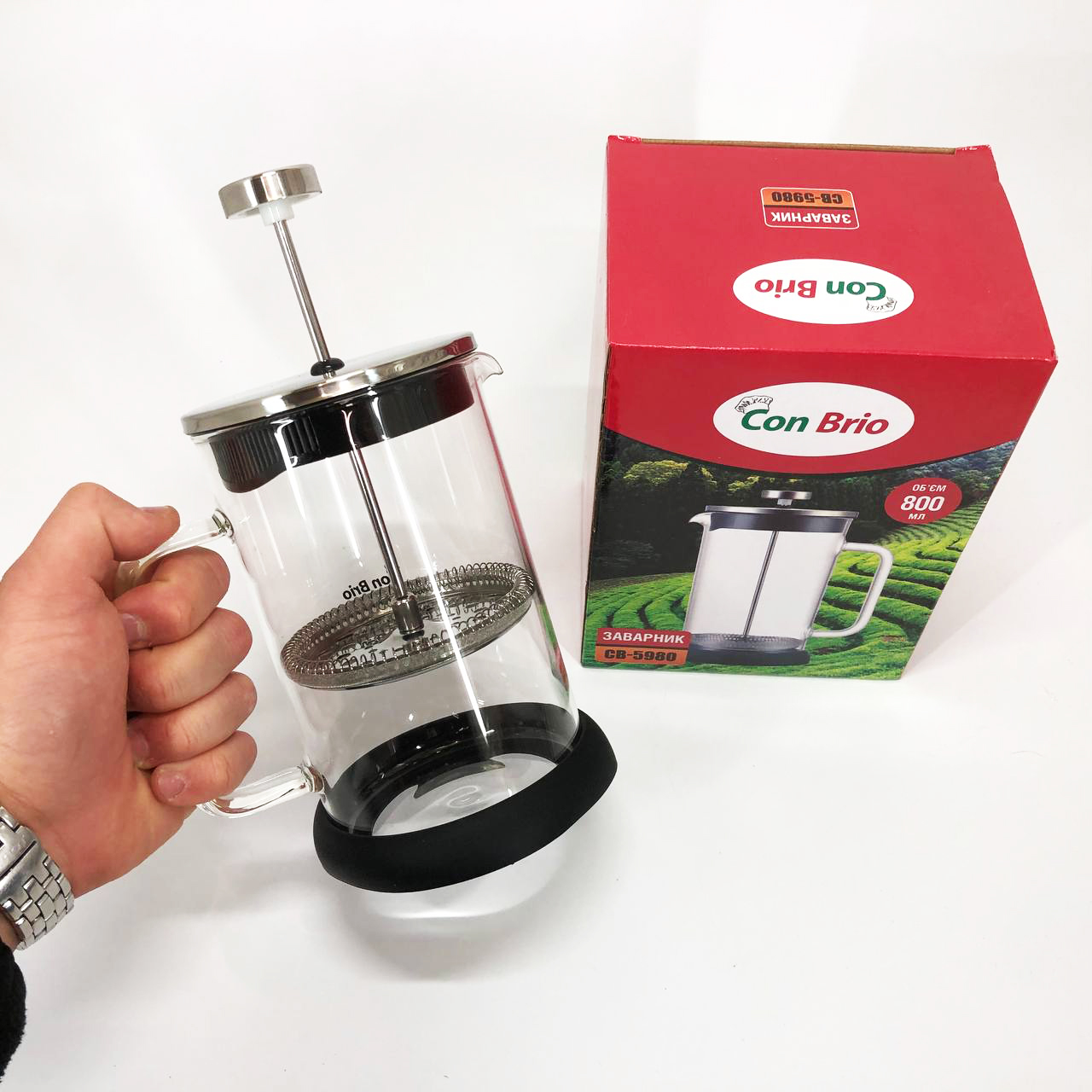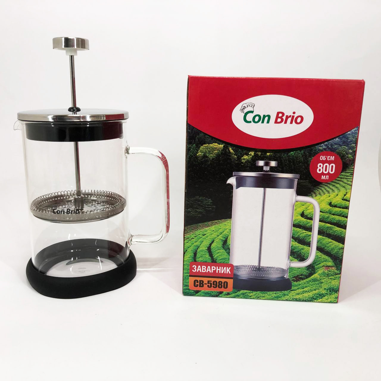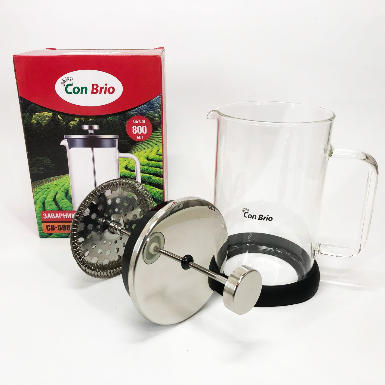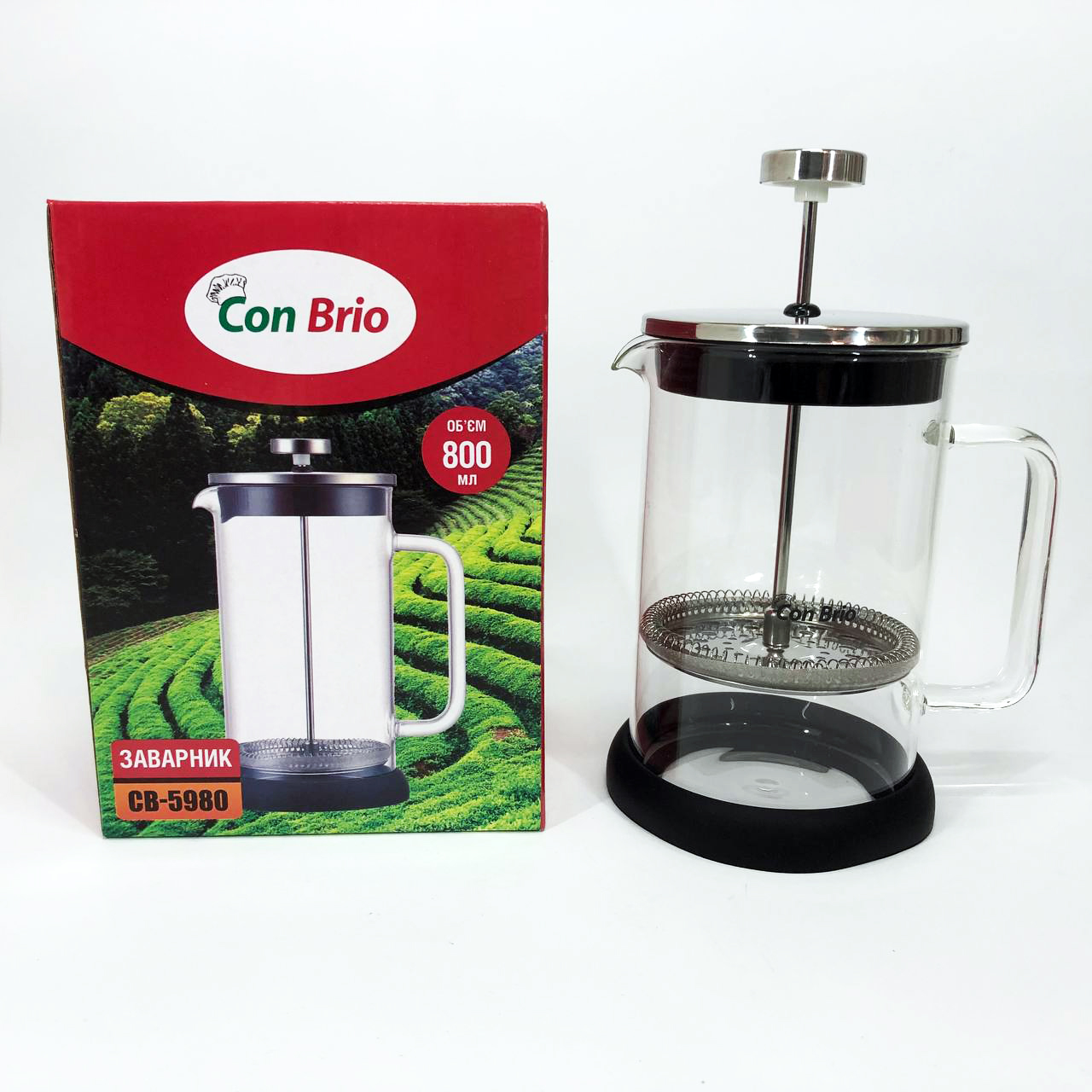 Френч-прес Con Brio CB-5980 800 мл, Чайник для заварювання трав, Заварник прозорий