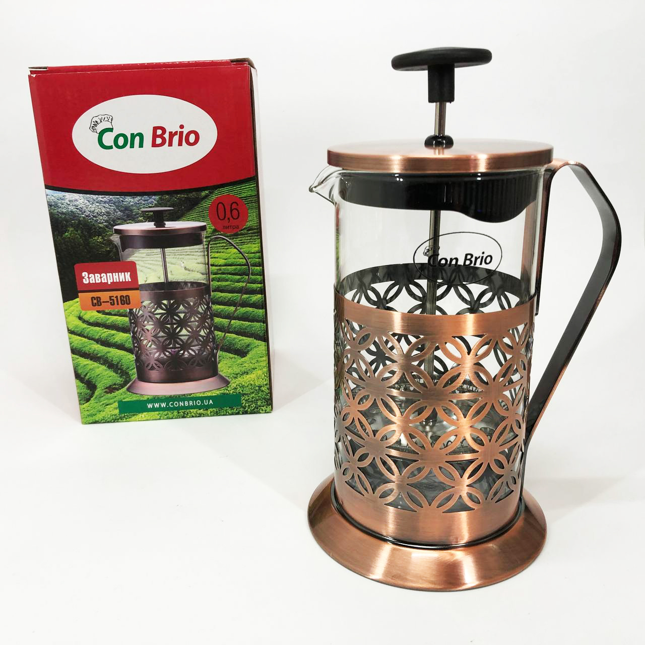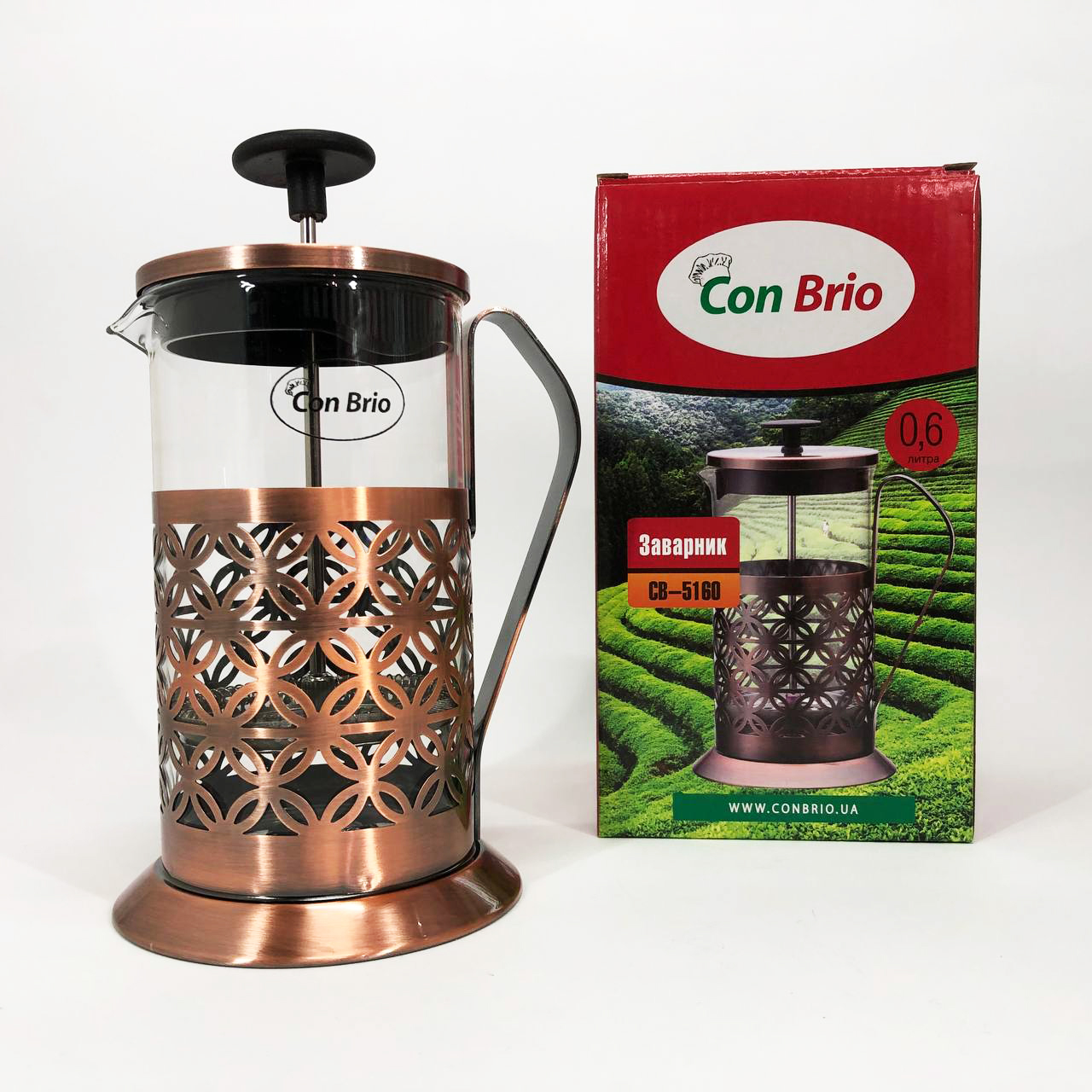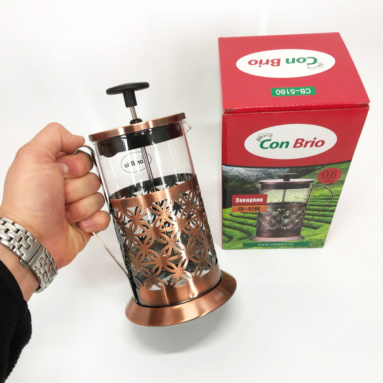 Френч-прес Заварник для чаю Con Brio CB-5160 600мл, Чайник самовар скляний, Чайники для заварювання