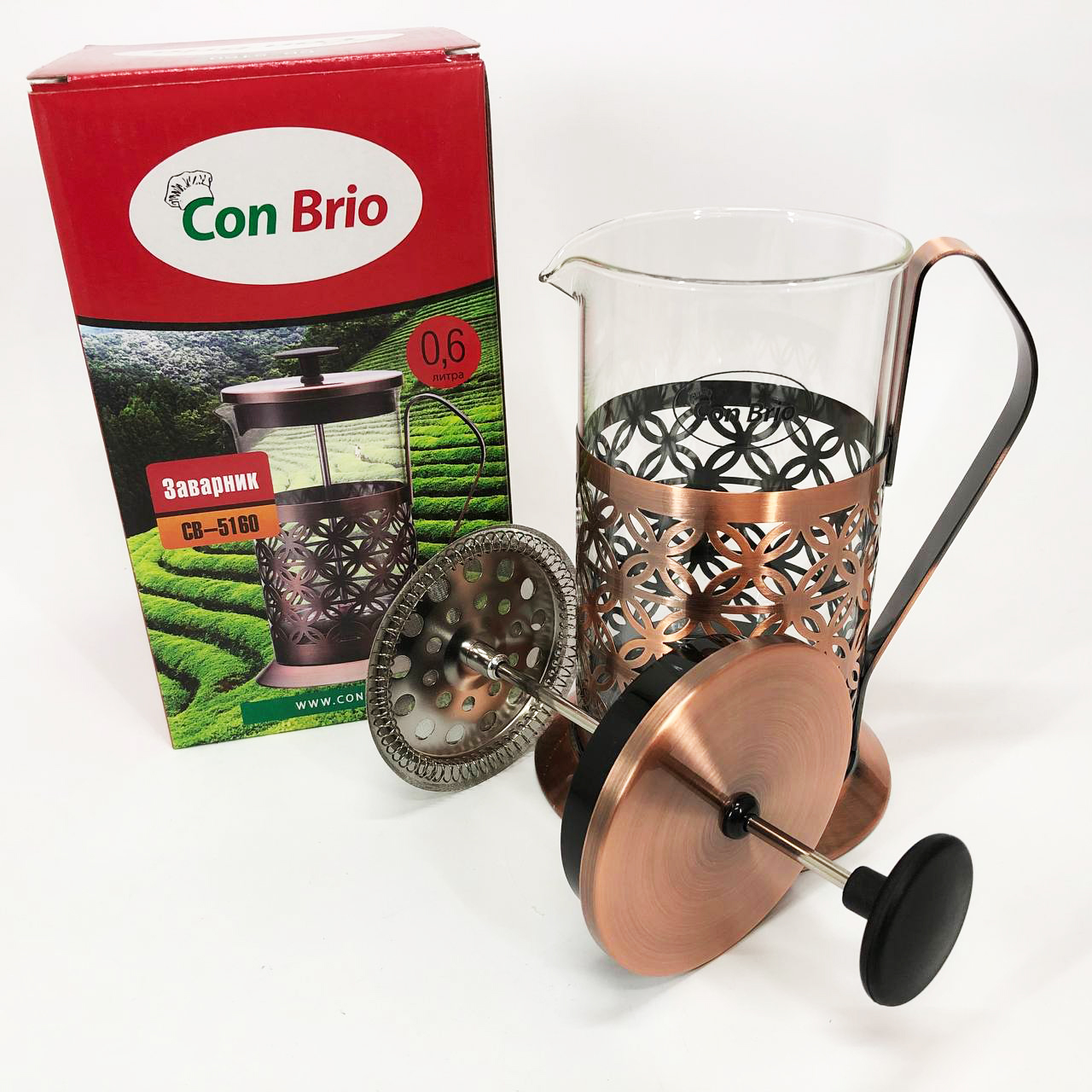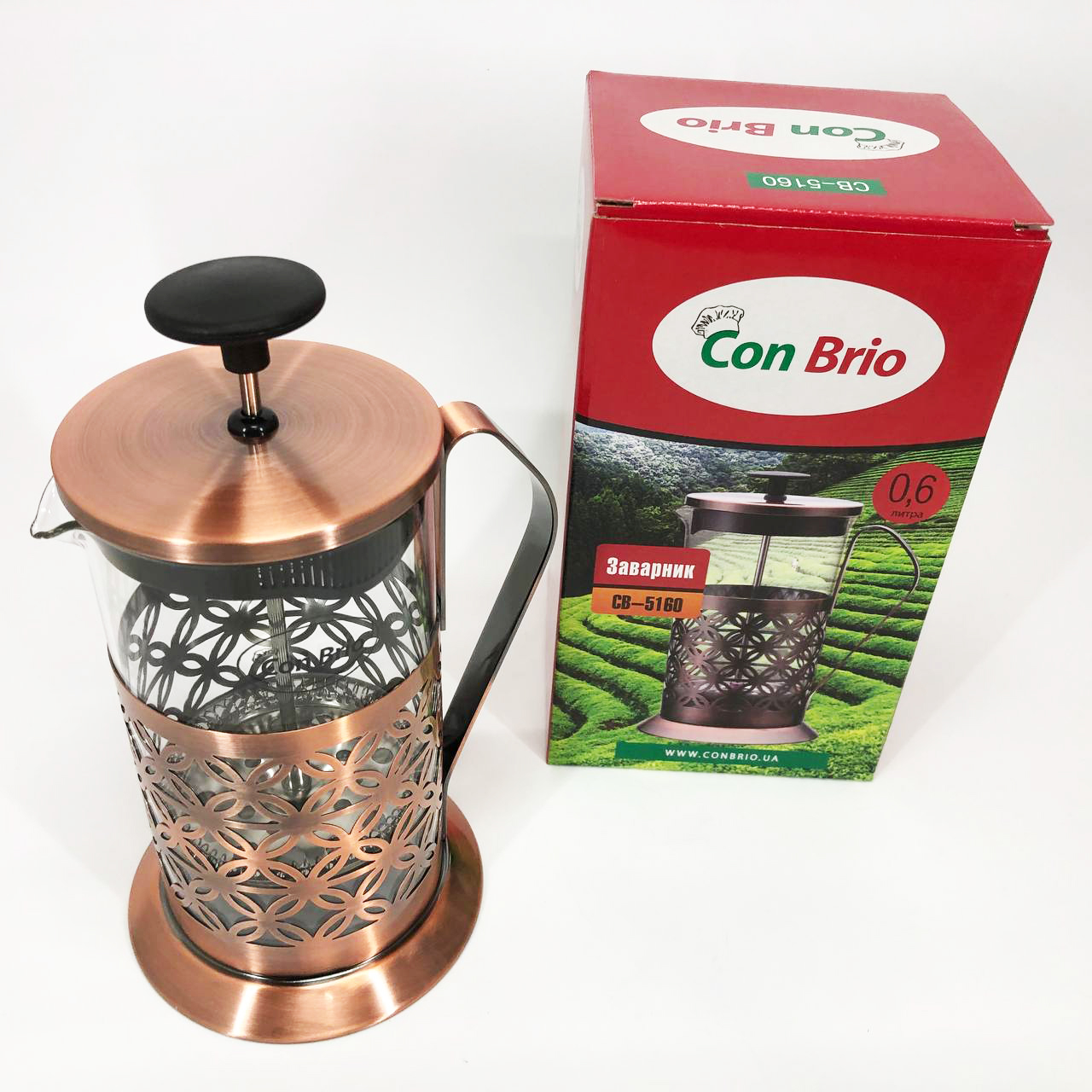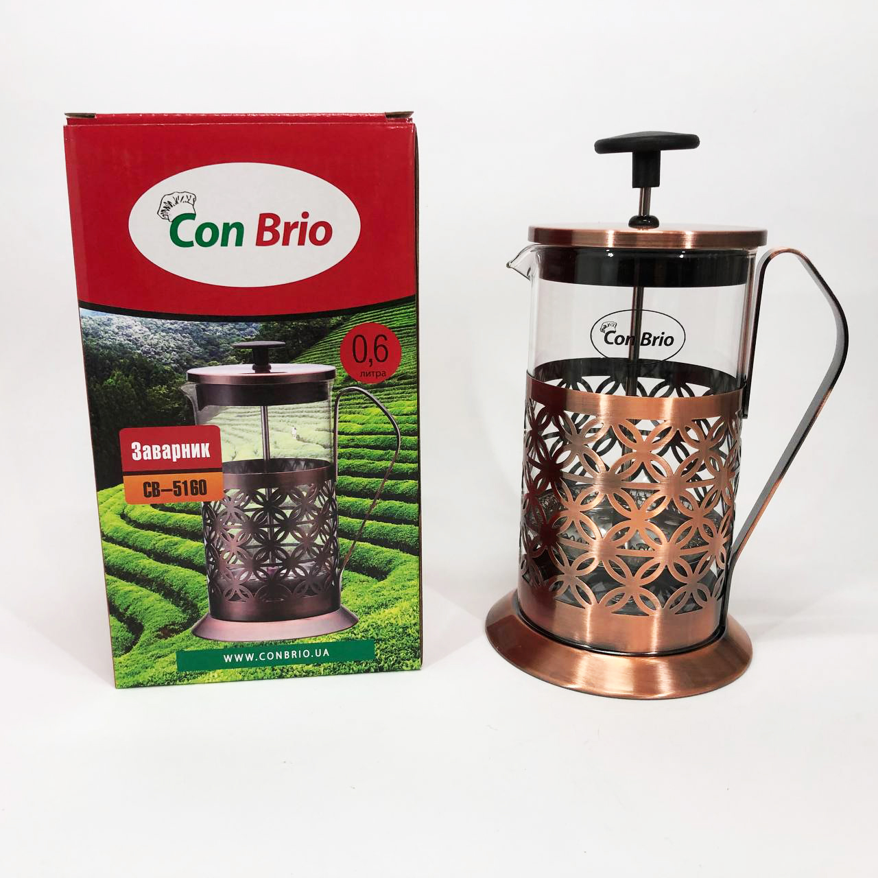 Френч-прес Заварник для чаю Con Brio CB-5160 600мл, Чайник самовар скляний, Чайники для заварювання