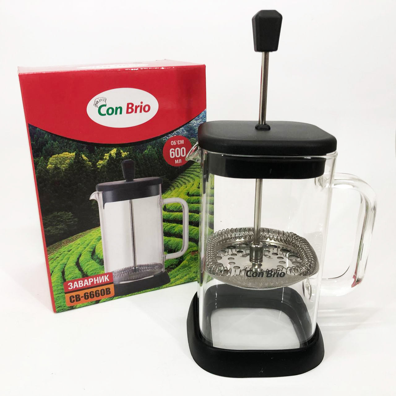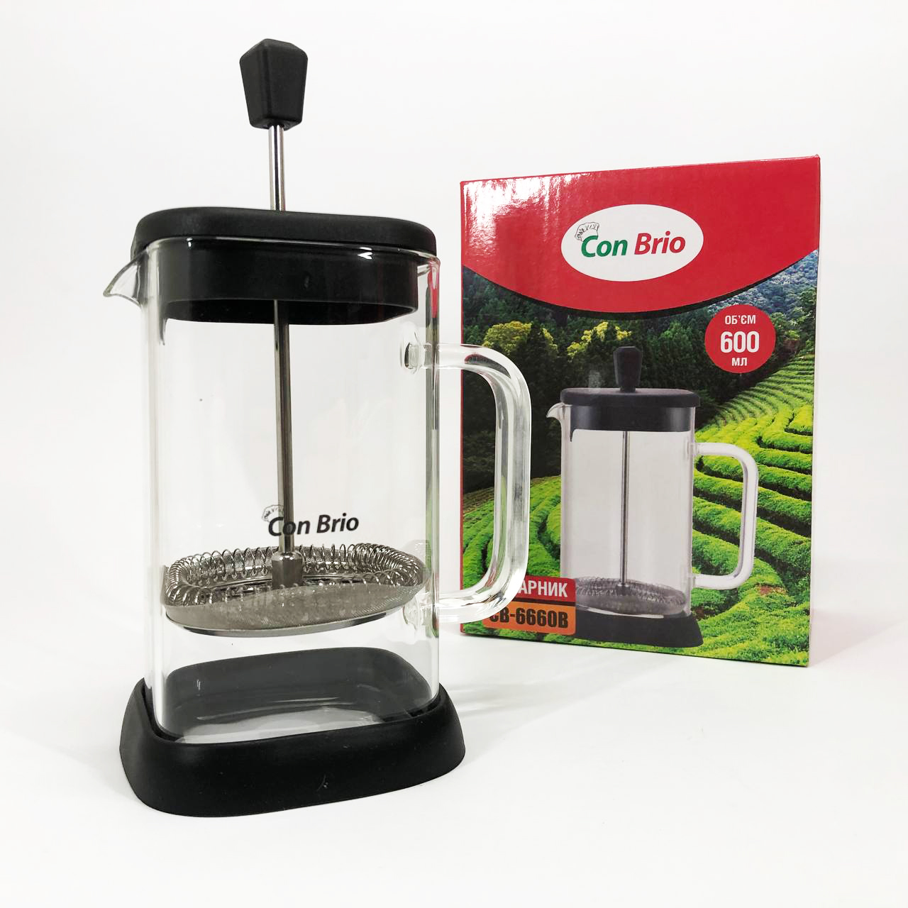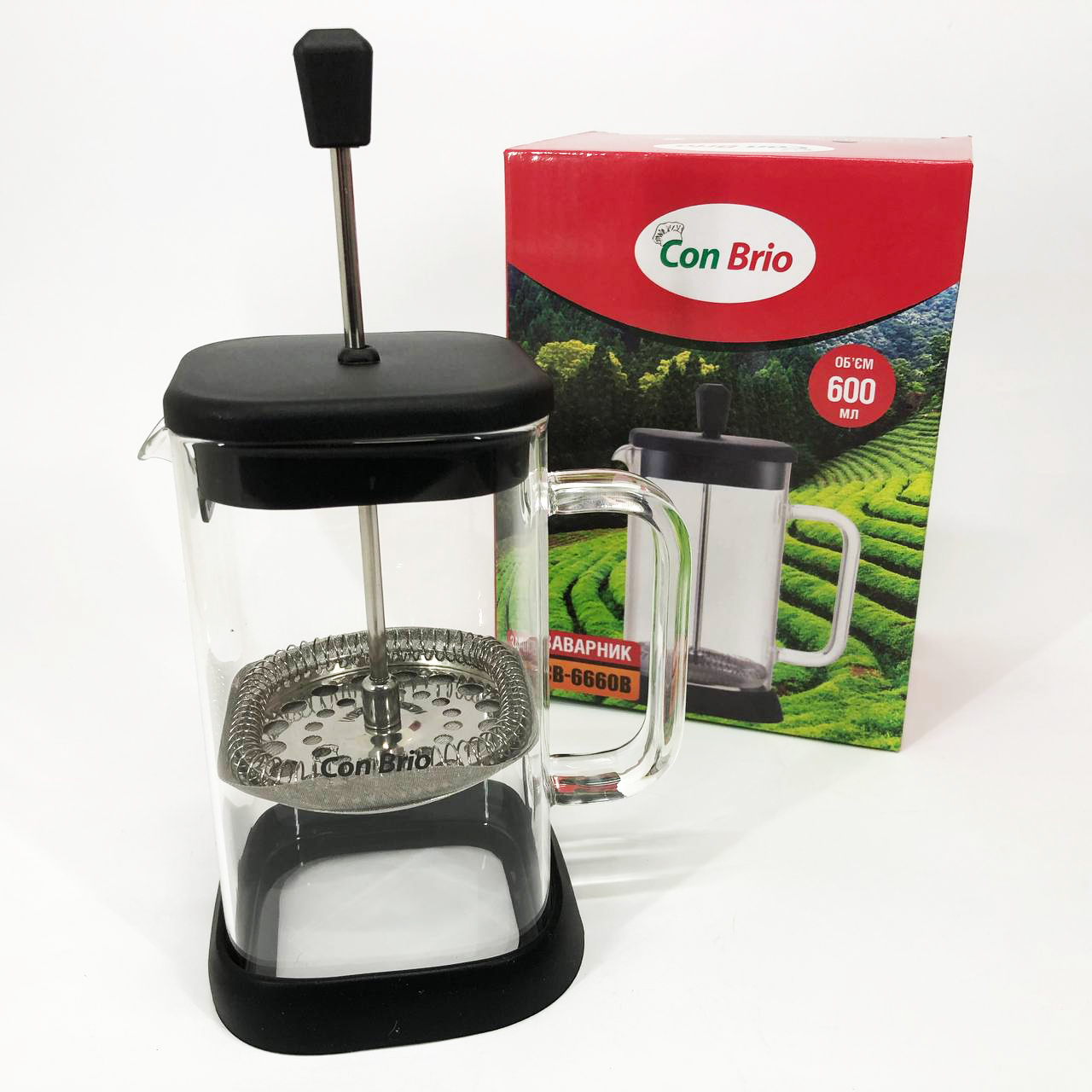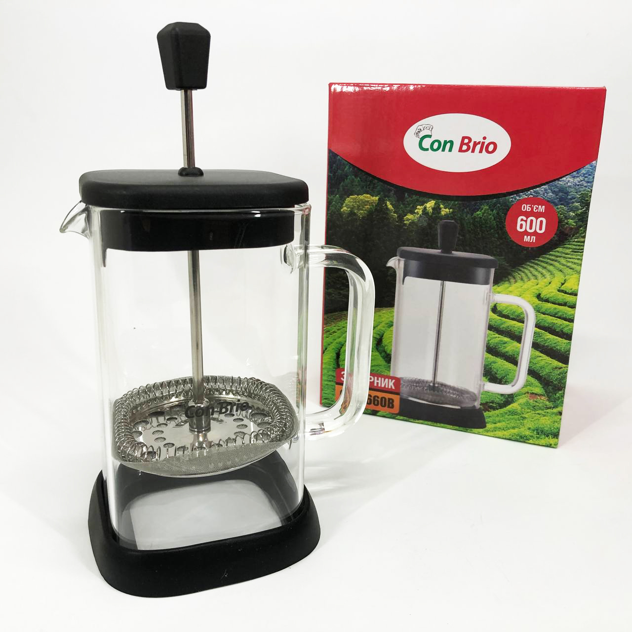 Френч-прес Con Brio 600 мл CB-6660B, Френч-прес для міцної кави, Багаторазовий френч-прес