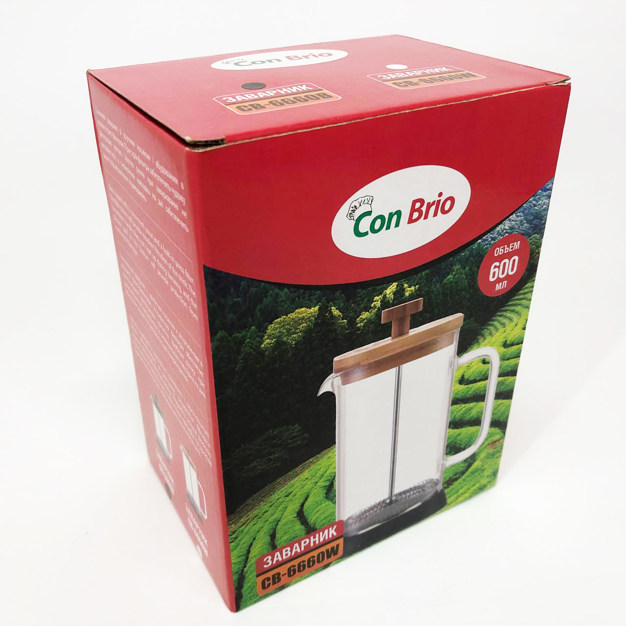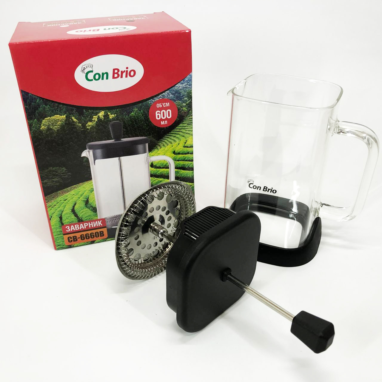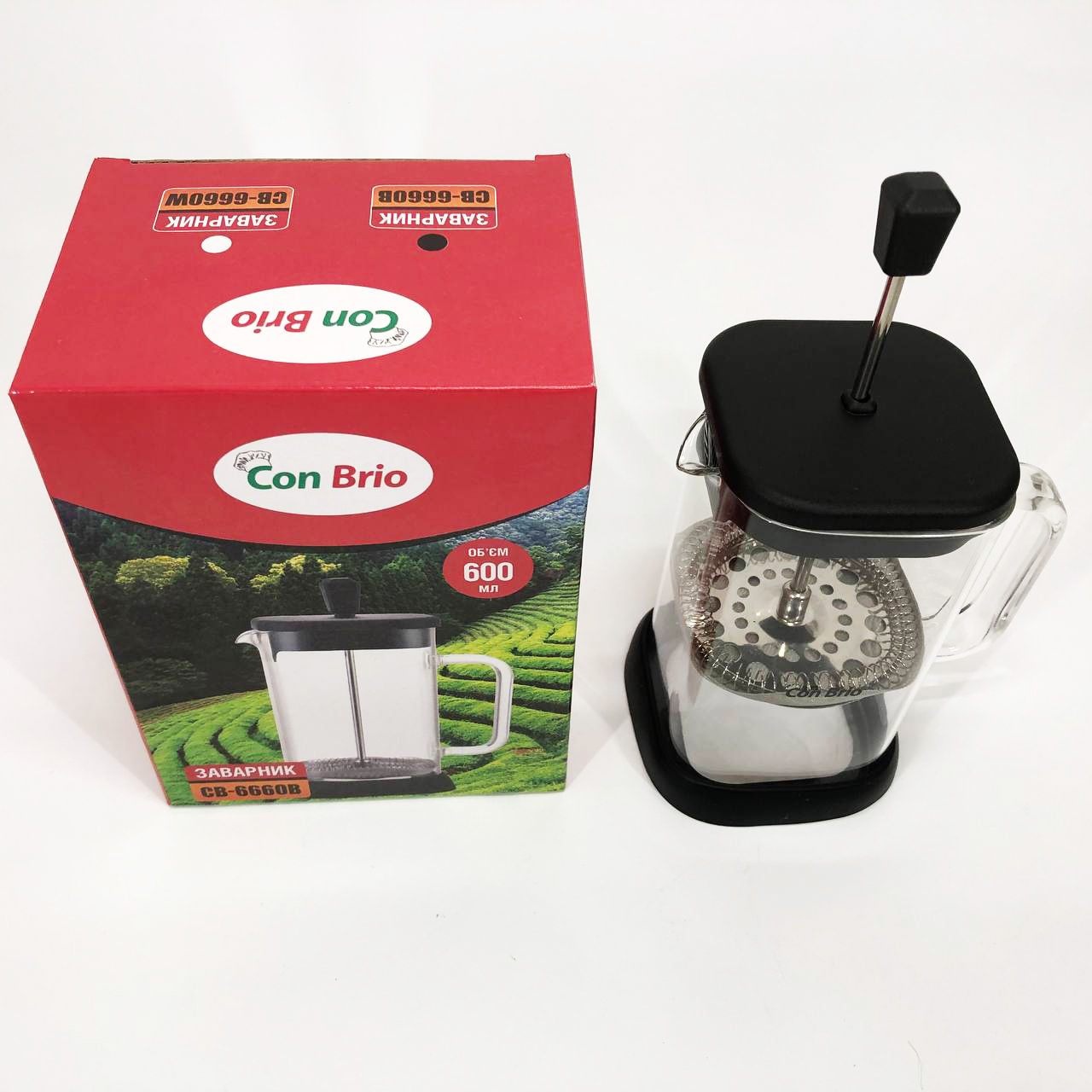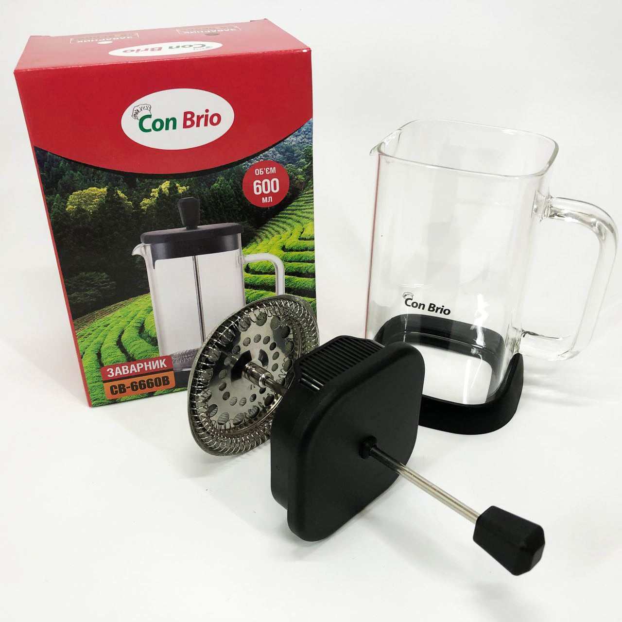Френч-прес Con Brio 600 мл CB-6660B, Френч-прес для міцної кави, Багаторазовий френч-прес
