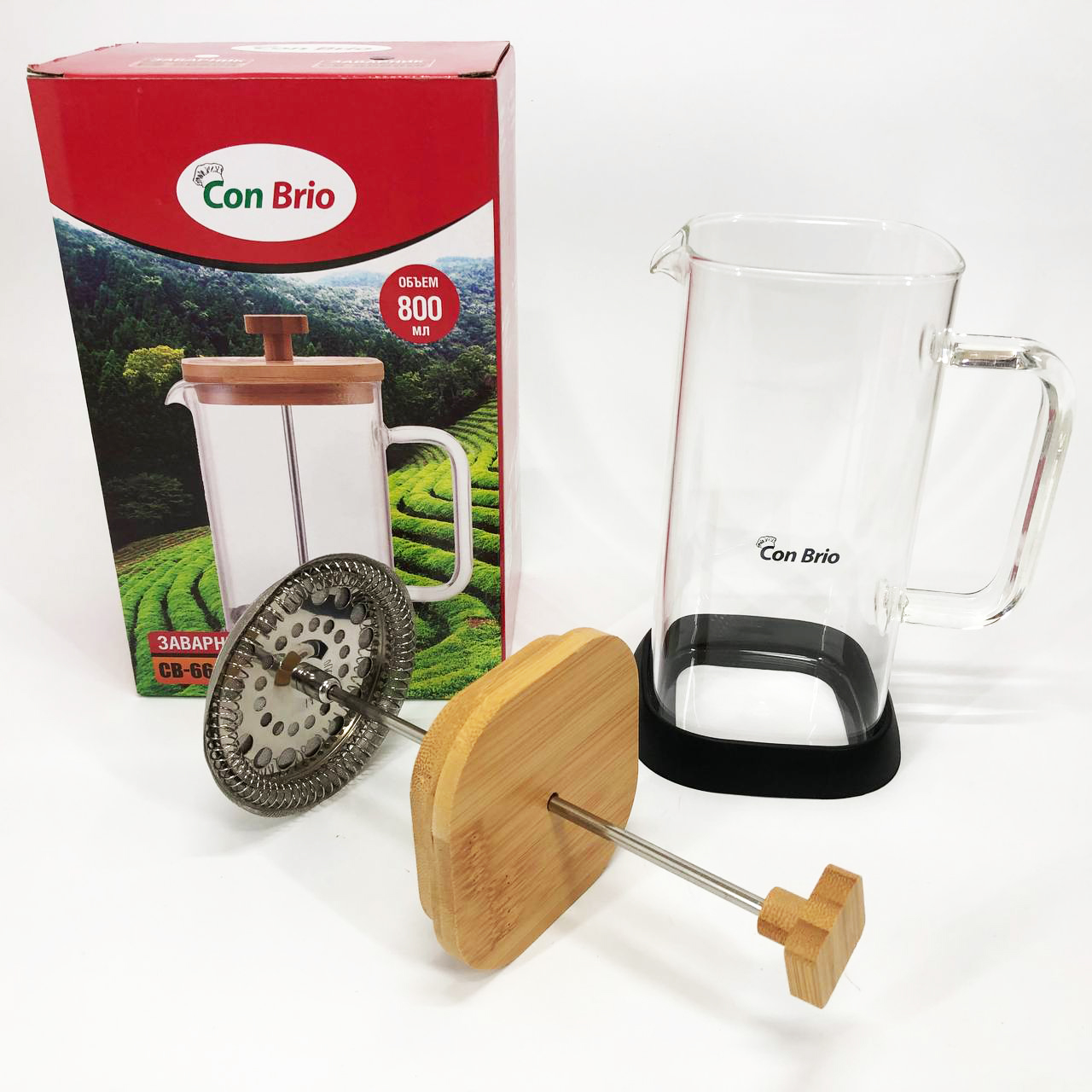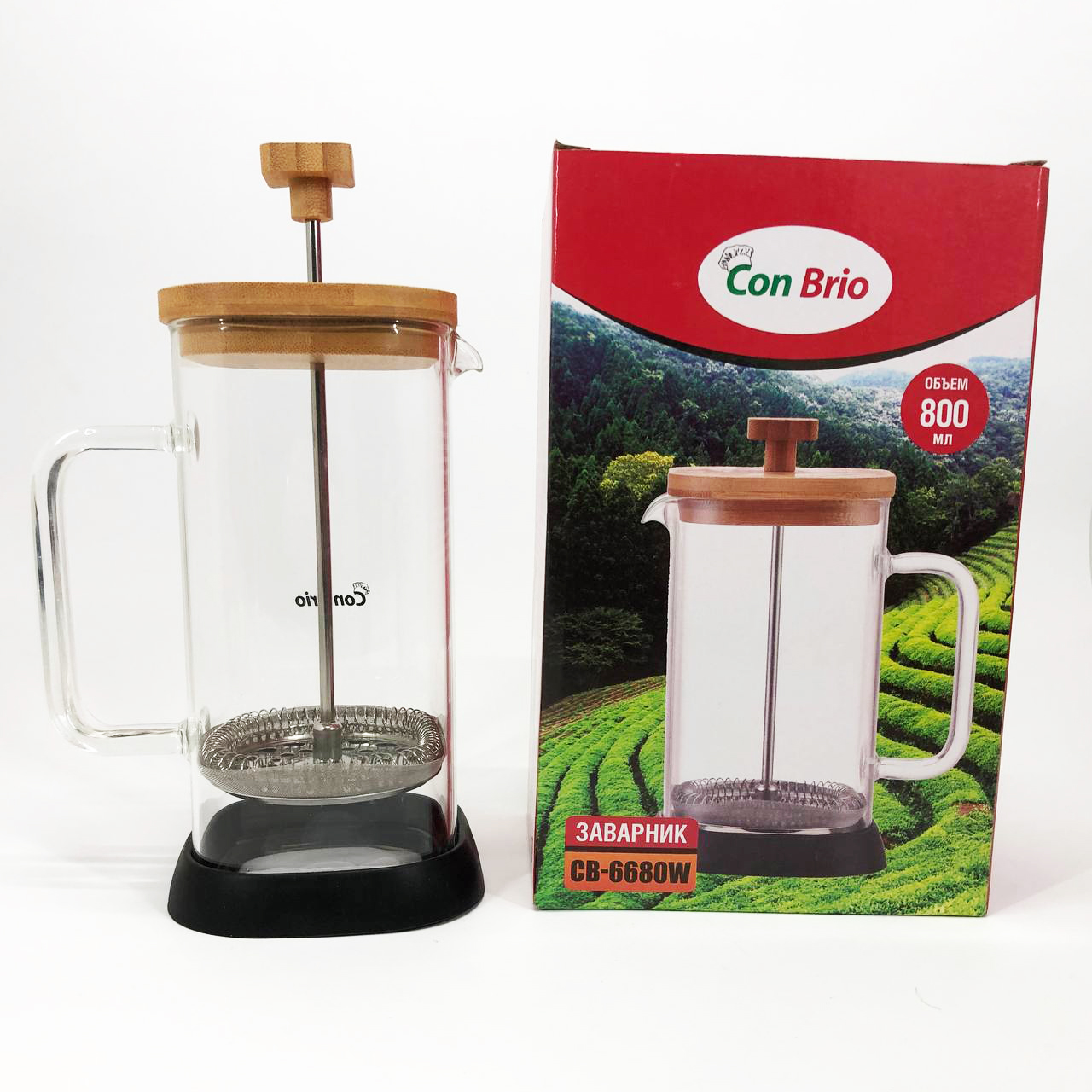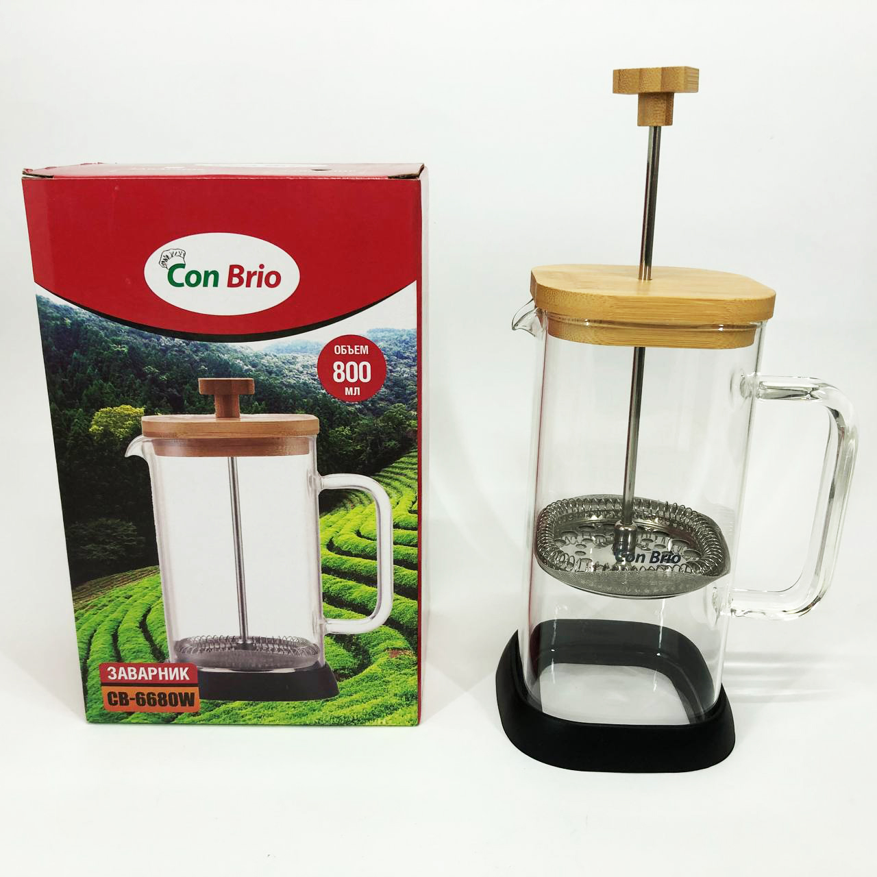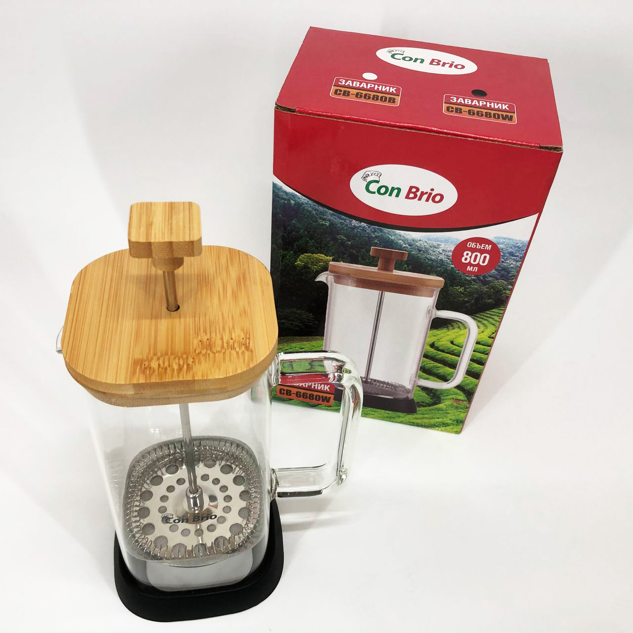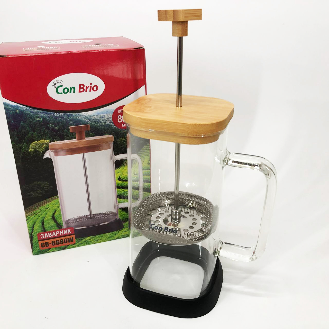 Френч-прес Con Brio CB-5580 0.8 л, Стильний скляний чайник для заварювання, Заварний скляний чайник