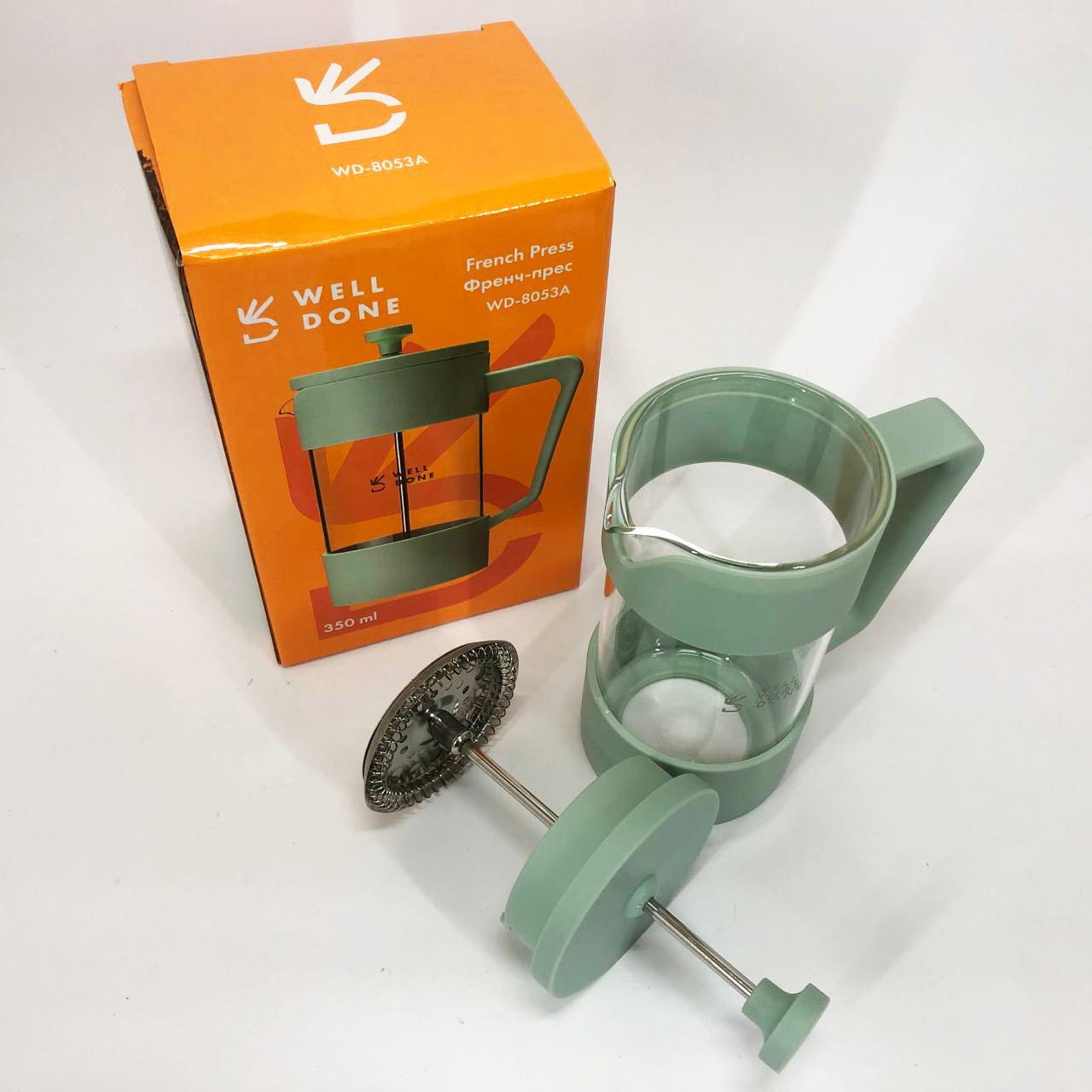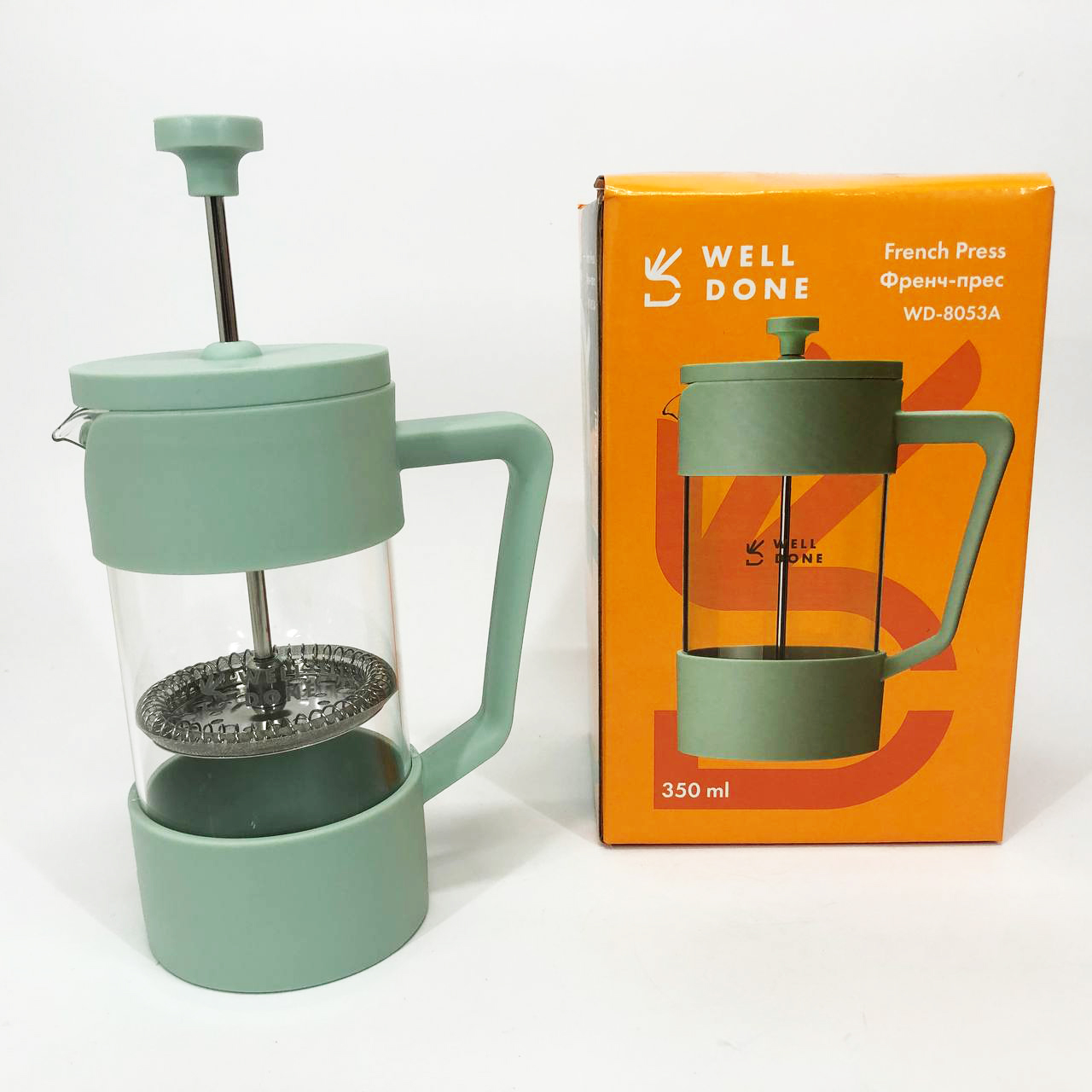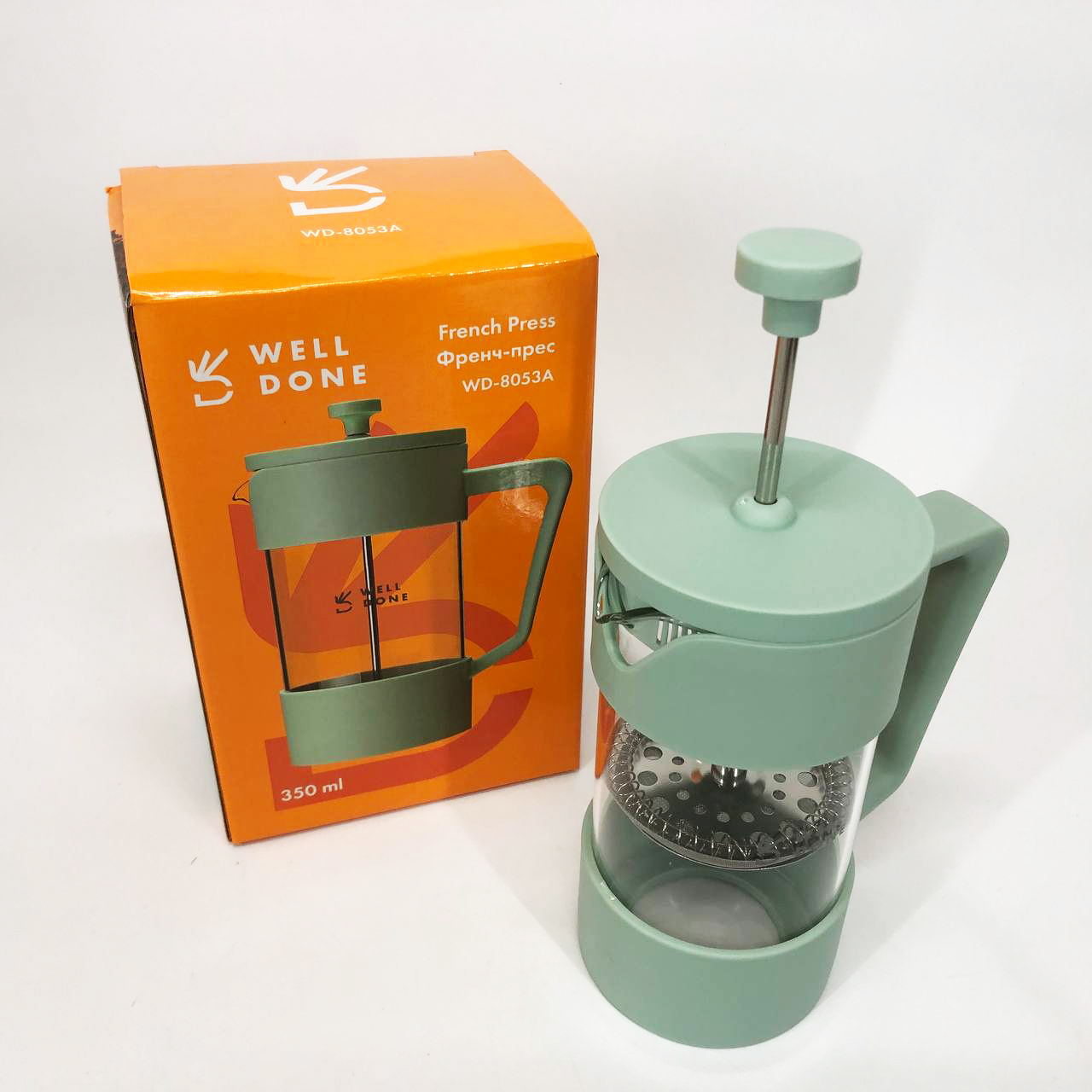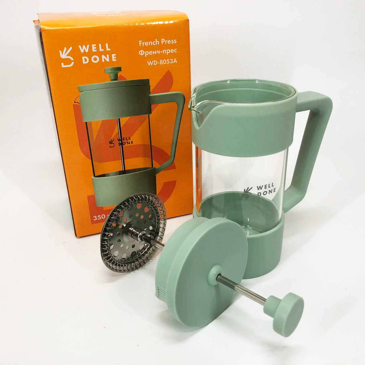 Френч-прес Well Done WD-8053A м'ятний 350 мл, Чайник самовар скляний, Чайники для заварки