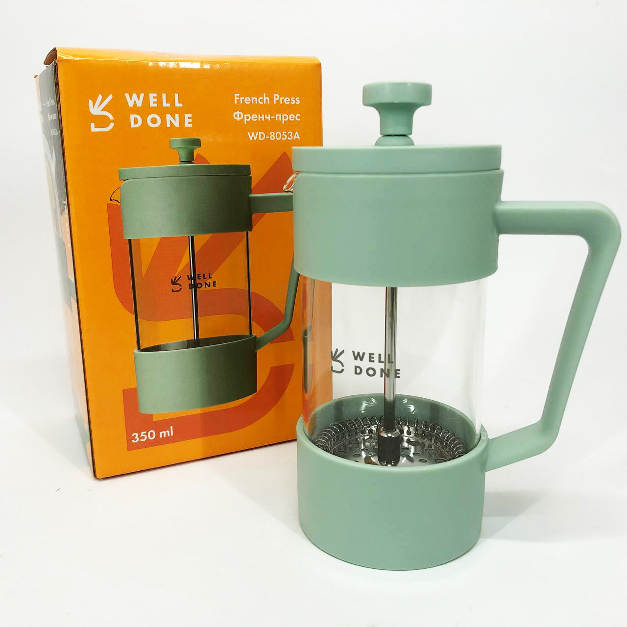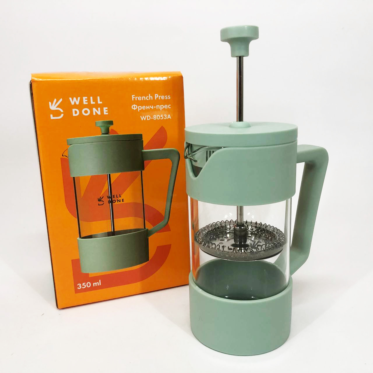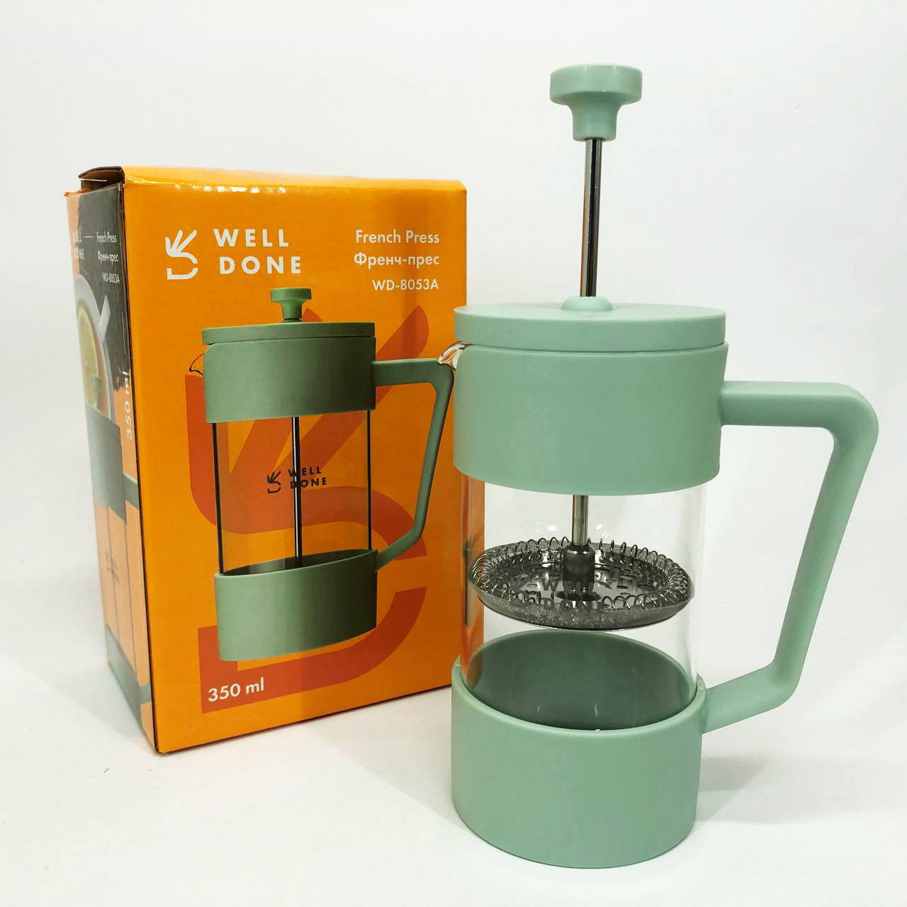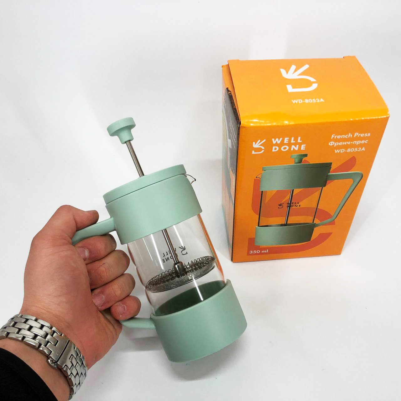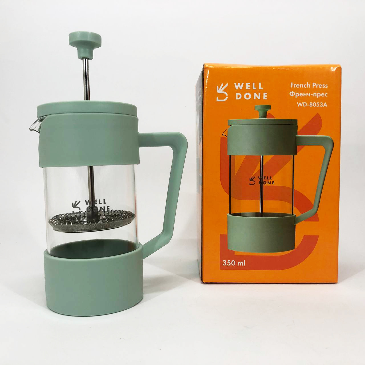 Френч-прес Well Done WD-8053A м'ятний 350 мл, Чайник самовар скляний, Чайники для заварки