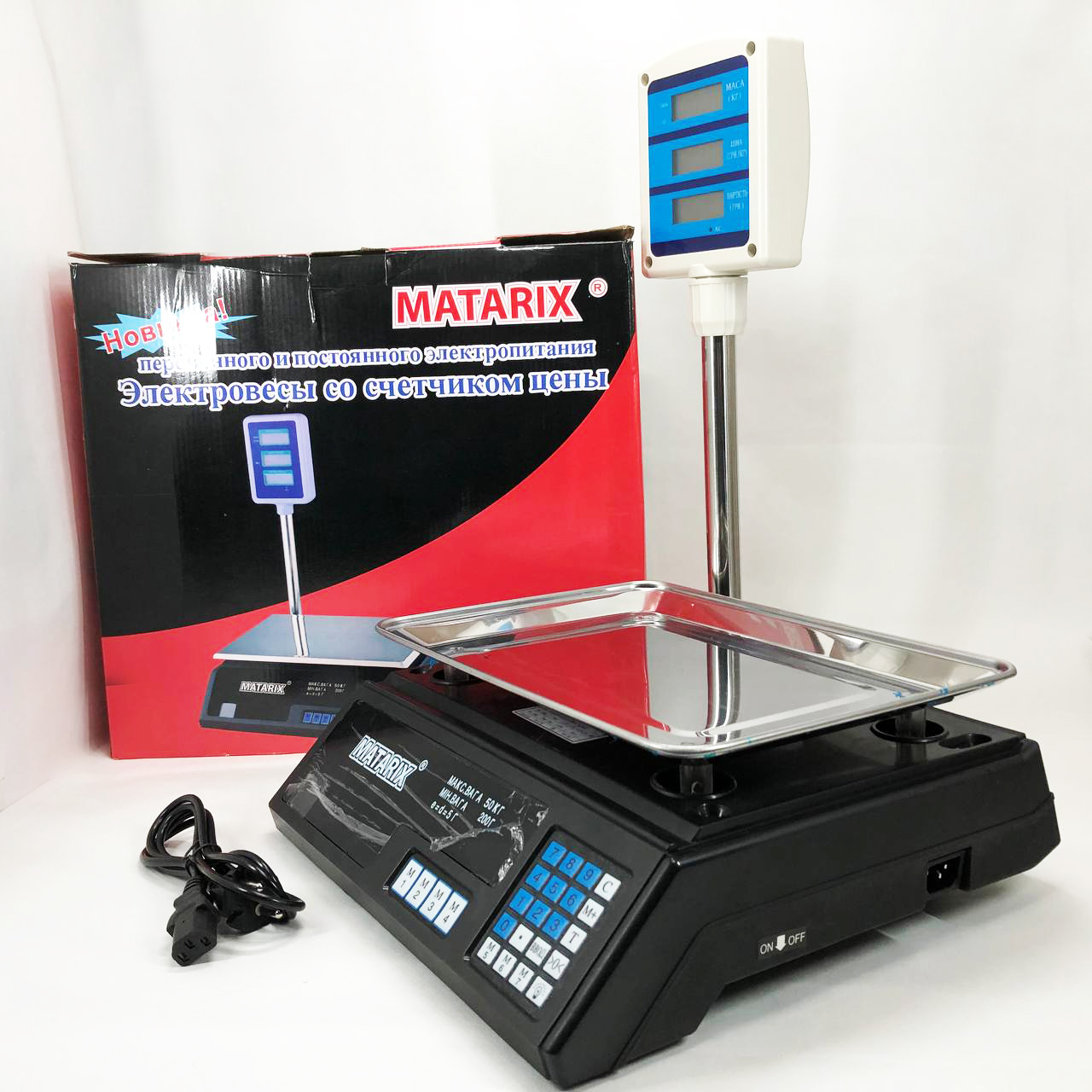 Ваги товарні Matarix MX-411+ на 50 кг, Ваги торговельні з табло, Ваги торговельні настільні зі стійкою
