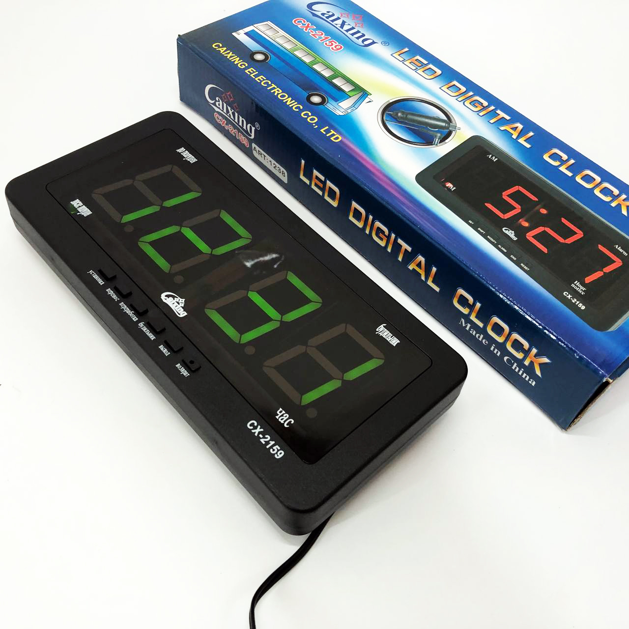 Годинник електронний Caixing CX 2159 12В 220В Настільні Настінні Будильник Чорний корпус Зелені цифри