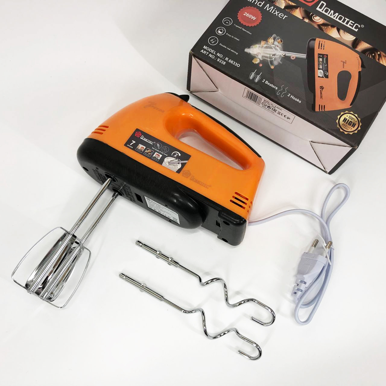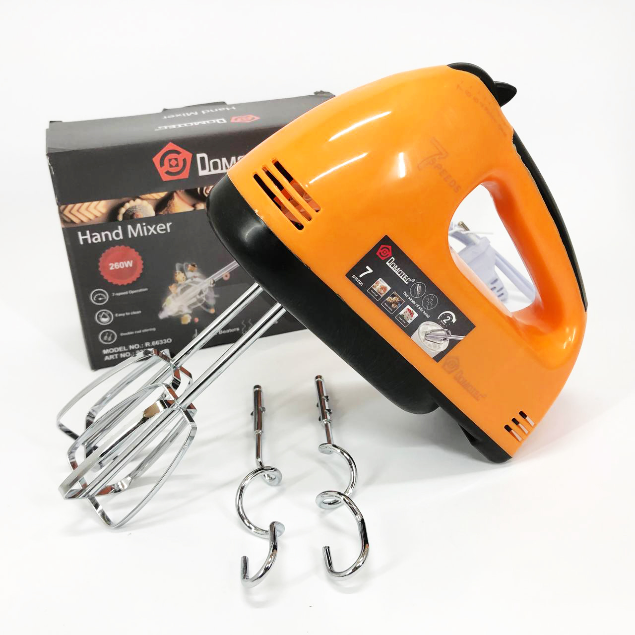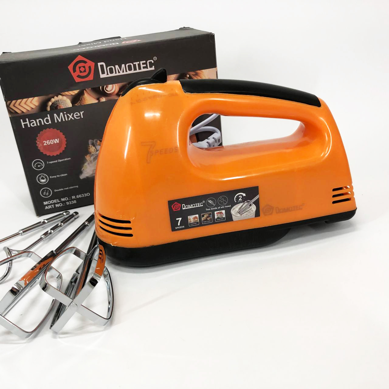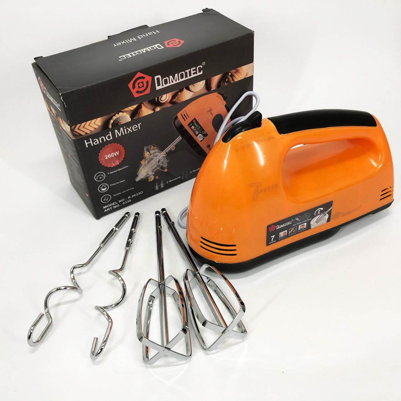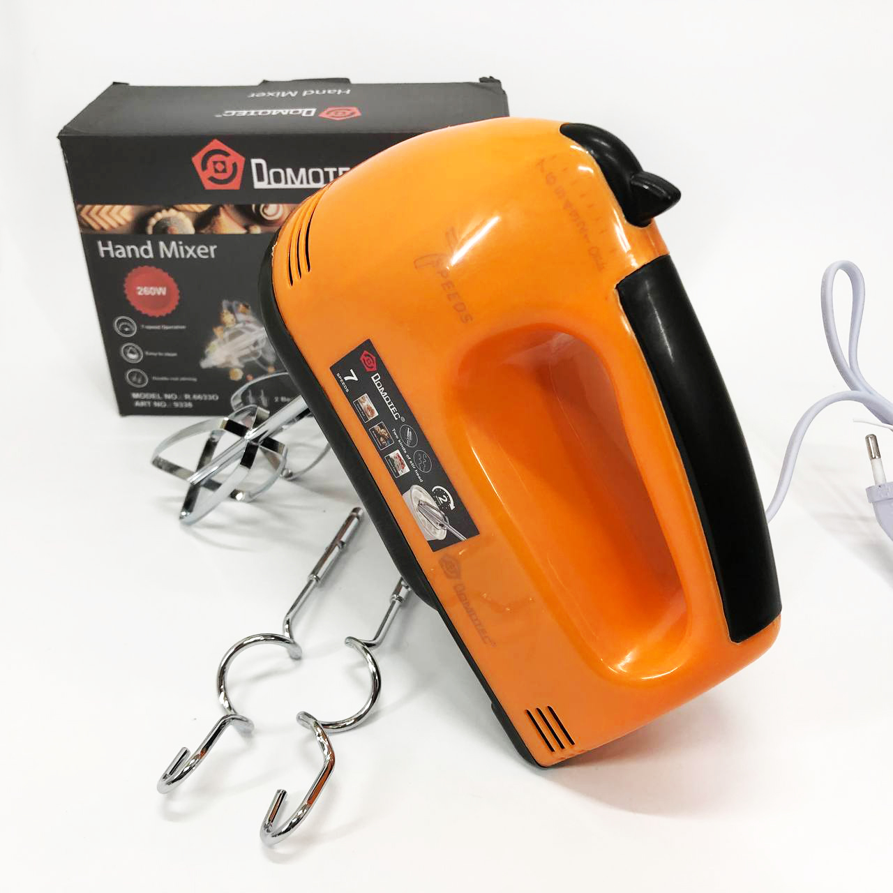 Міксер DOMOTEC R6633O 7 швидкостей 260 Вт 2 віночки, Міксер для молочних коктейлів для дому ручний міксер