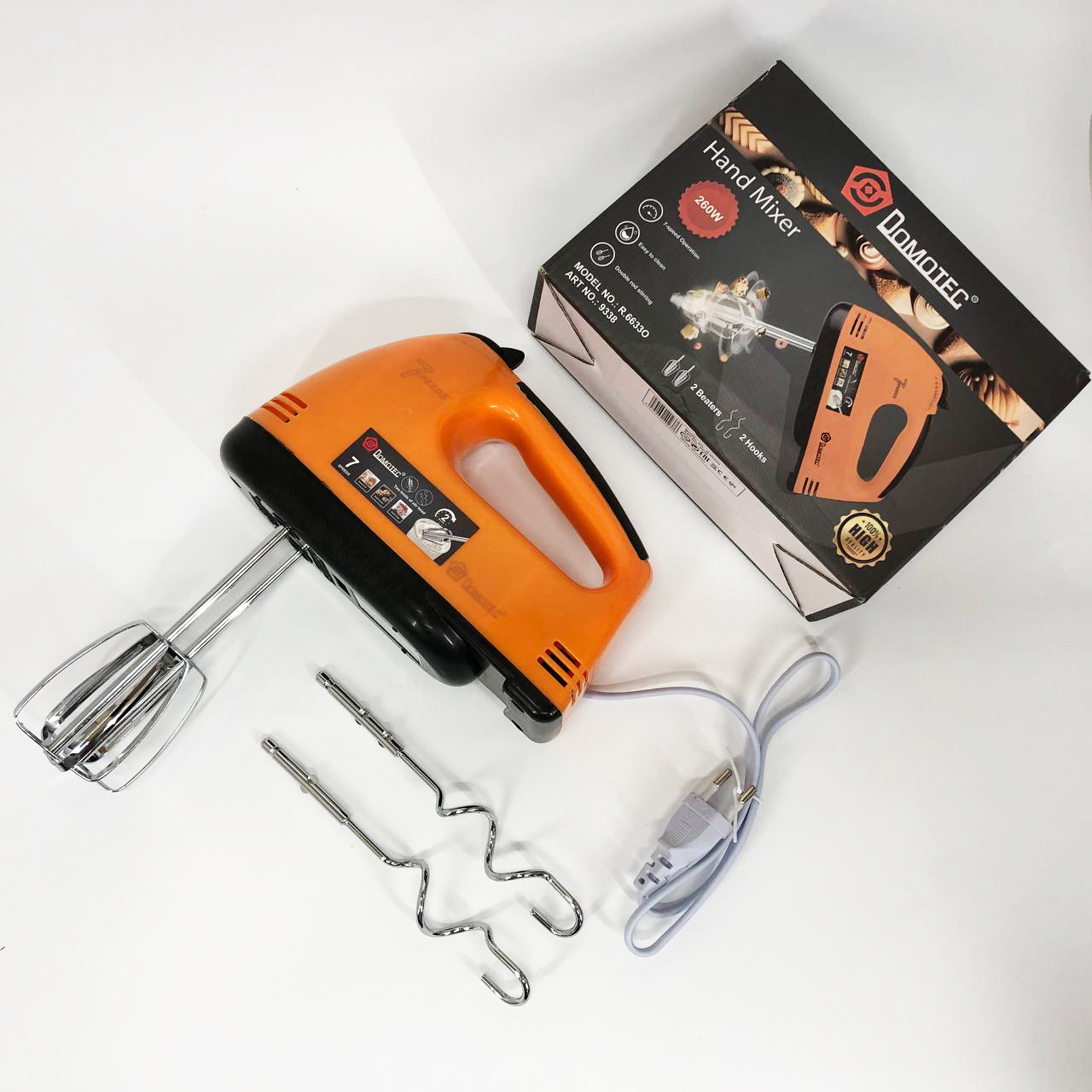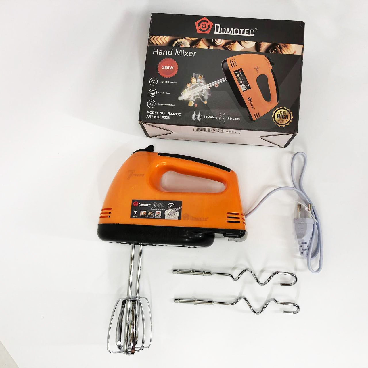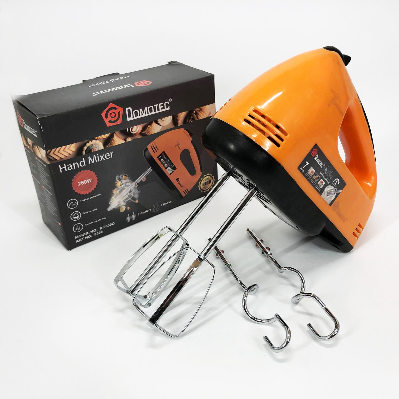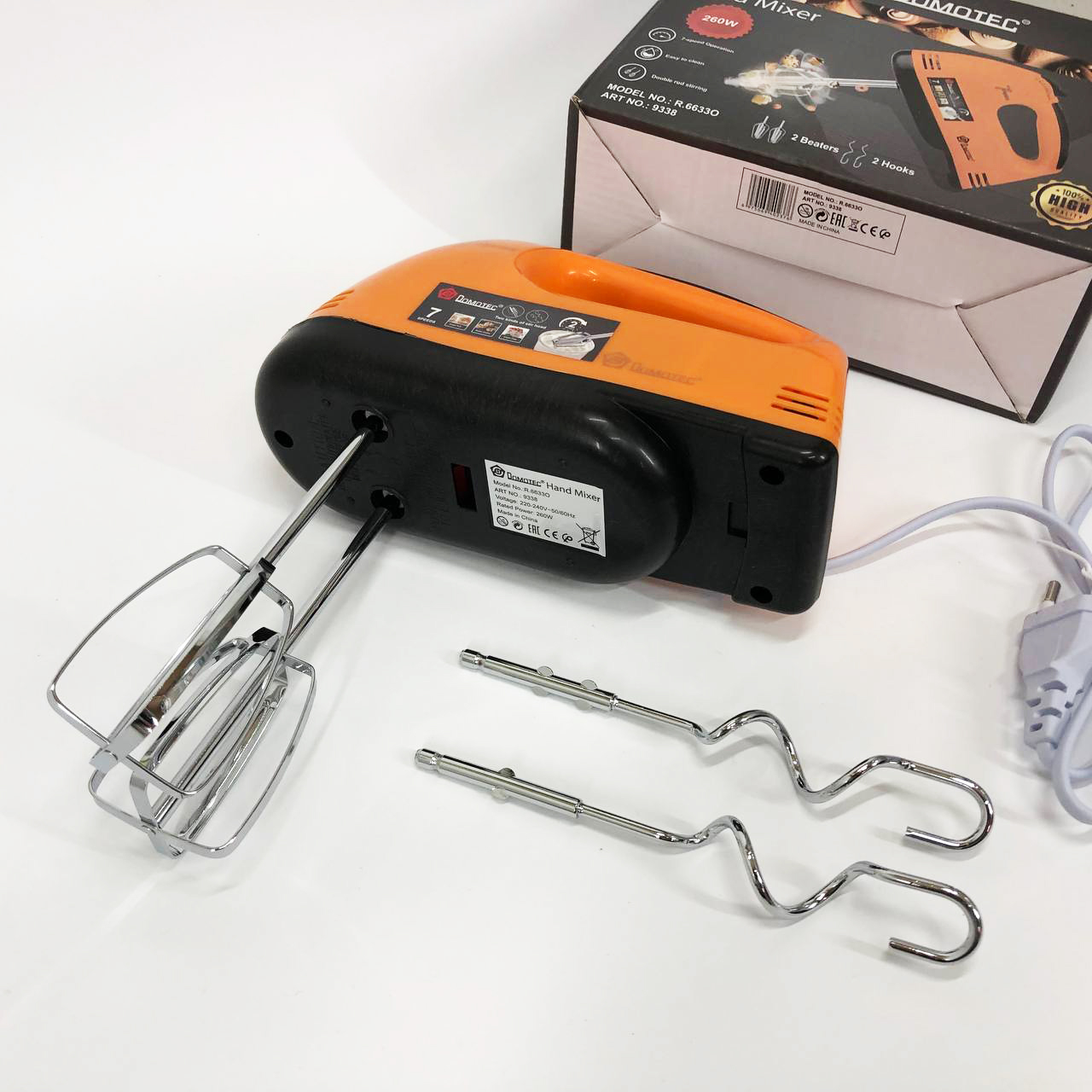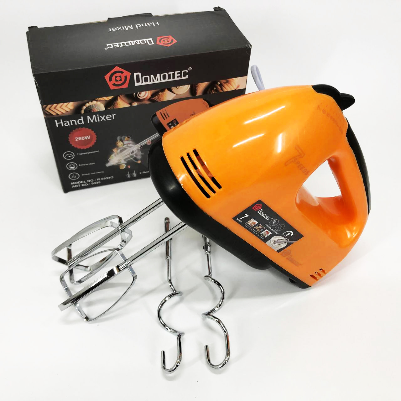 Міксер DOMOTEC R6633O 7 швидкостей 260 Вт 2 віночки, Міксер для молочних коктейлів для дому ручний міксер