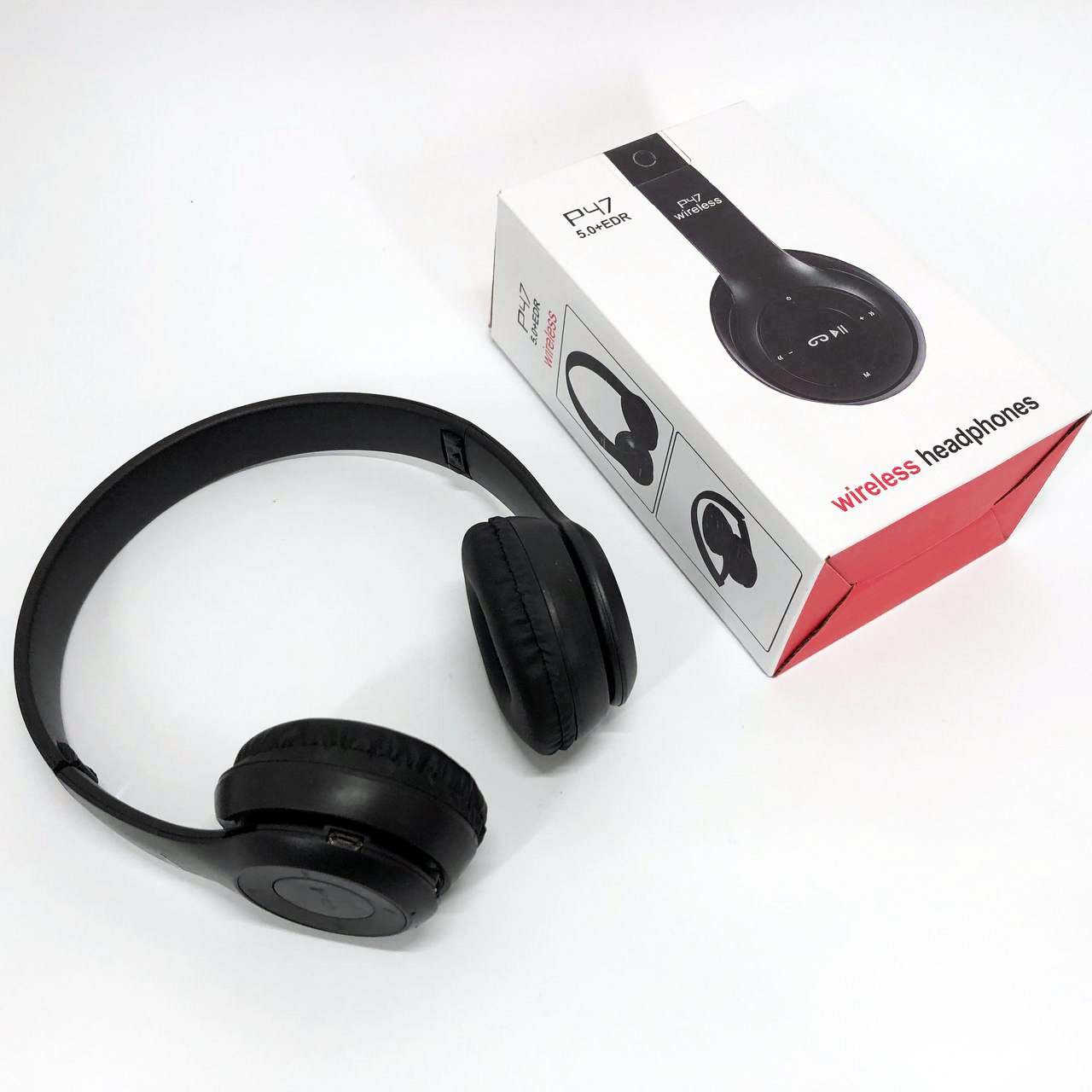 Виконані бездротові навушники з глянсового пластику і виглядають досить стильно і навіть схожі на професійні, які використовують на студіях звукозапису. Внутрішня сторона навушників оздоблена м’якою під шкіру тканиною, яка на довгий час позбавить Вас від неприємних відчуттів. Навушники можуть використовуватися як FM приймача (приймач вбудований в навушники, відмінний прийом). Навушники MDR P47 BT із вбудованим мп3 плеєром. Навушники відтворюють чистий, гарний звук із басами. Вбудований плеєр підтримує флеш-карту типу microSD. Вбудована акумуляторна батарея.