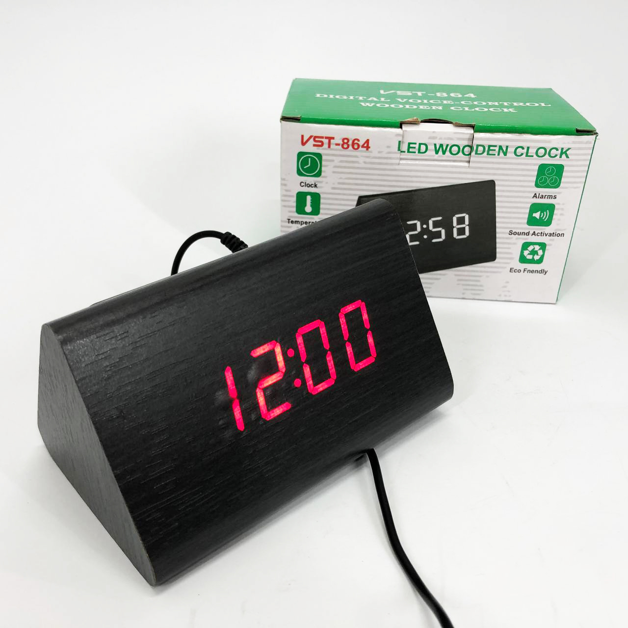 Годинник настільний VST 864 зовні виглядає як брусок дерева. Але варто лише підключити живлення, вони миттєво оживають і перетворюються на багатофункціональний LED годинник. Вдало вписуються практично в будь-який інтер’єр, ідеально гармонують із дерев’яними меблями.