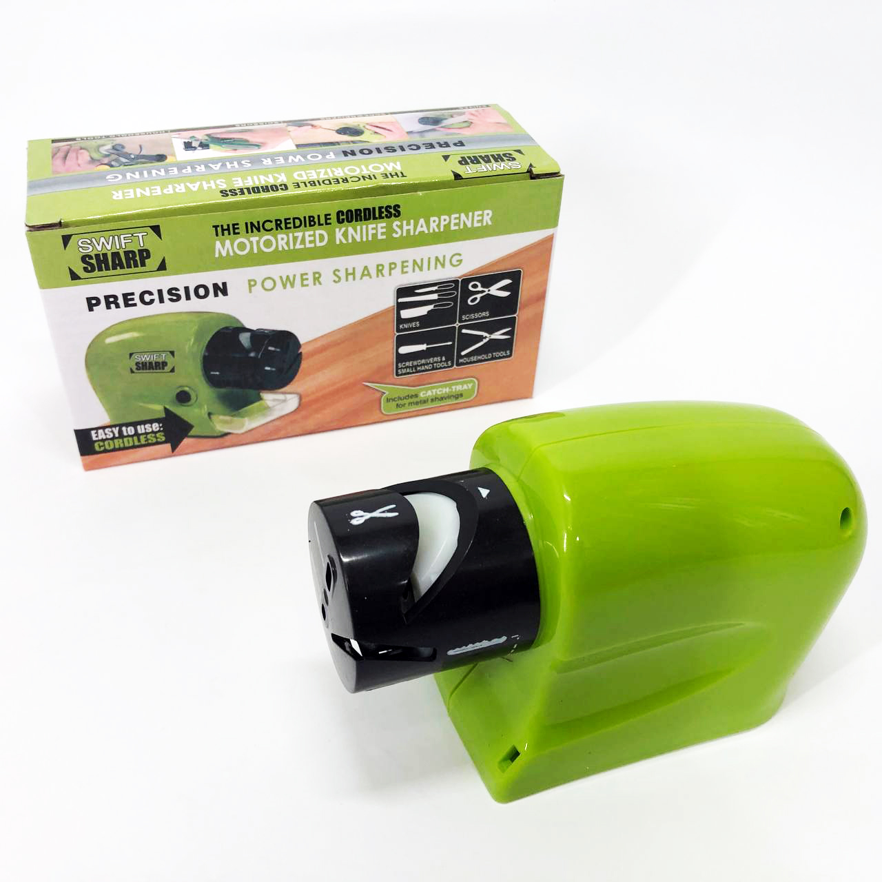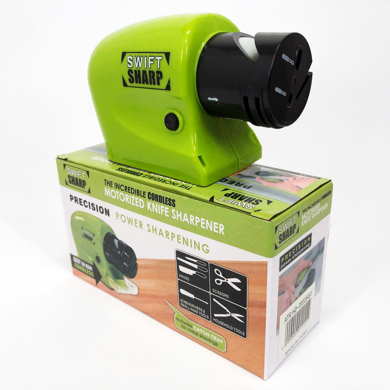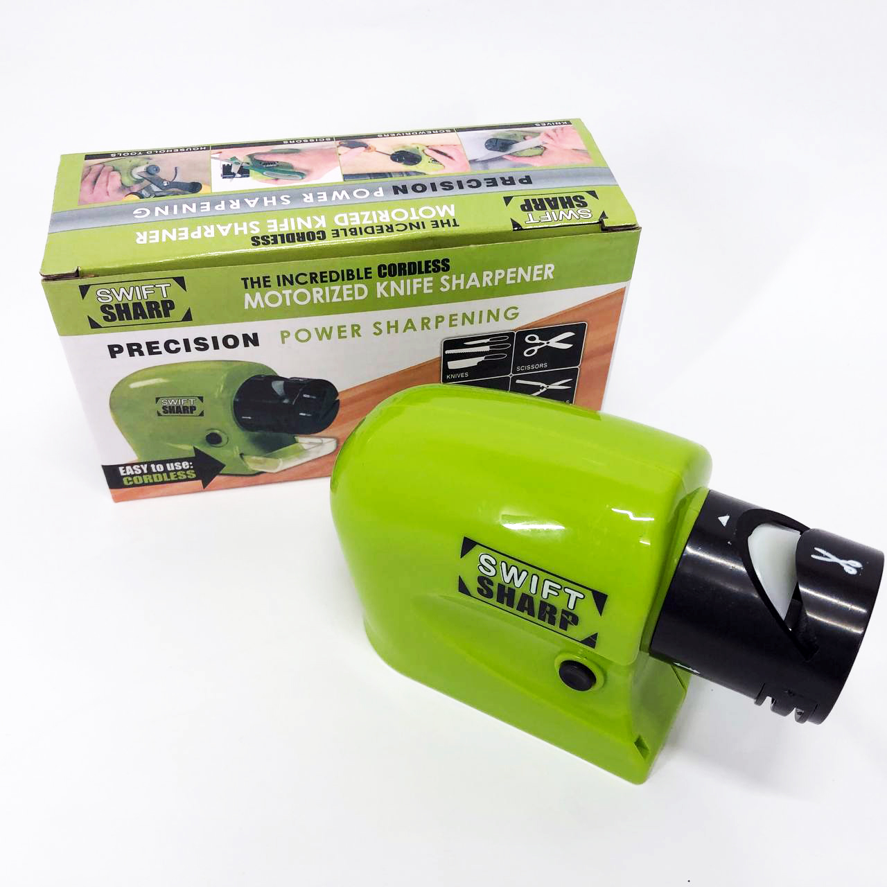 Точилка для ножів та ножиць на батарейках Swifty Sharp призначена як для домашнього, так і професійного використання. Ця точила допоможе вам заощадити час, гроші та підвищити рівень безпеки при поводженні з ножами, він призначений для забезпечення ідеального та міцного гострого кута 20.