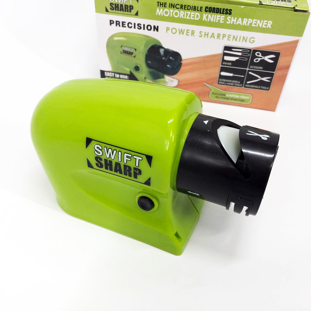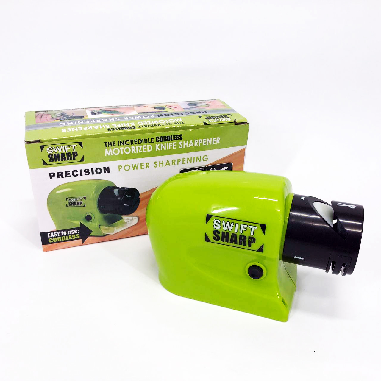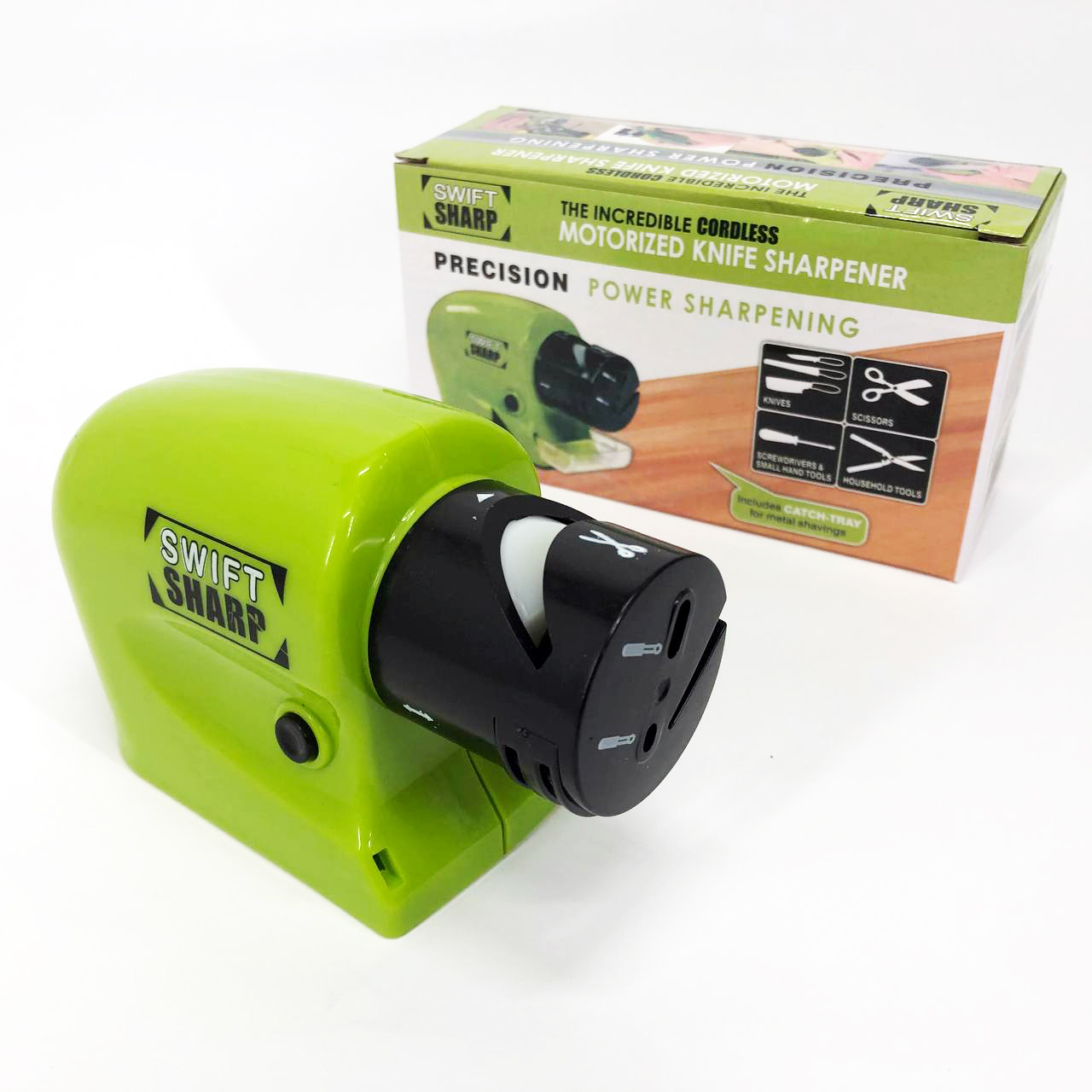 Точилка для ножів та ножиць на батарейках Swifty Sharp призначена як для домашнього, так і професійного використання. Ця точила допоможе вам заощадити час, гроші та підвищити рівень безпеки при поводженні з ножами, він призначений для забезпечення ідеального та міцного гострого кута 20.