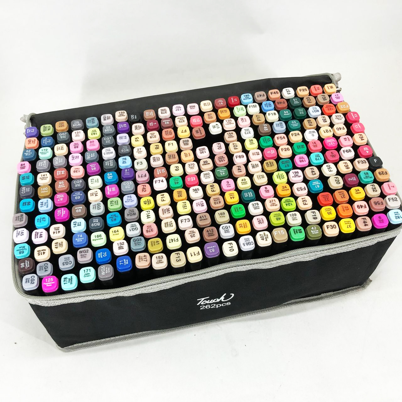 Набір маркерів скетч для малювання Touch 262 шт двосторонні професійні фломастери з чохлом