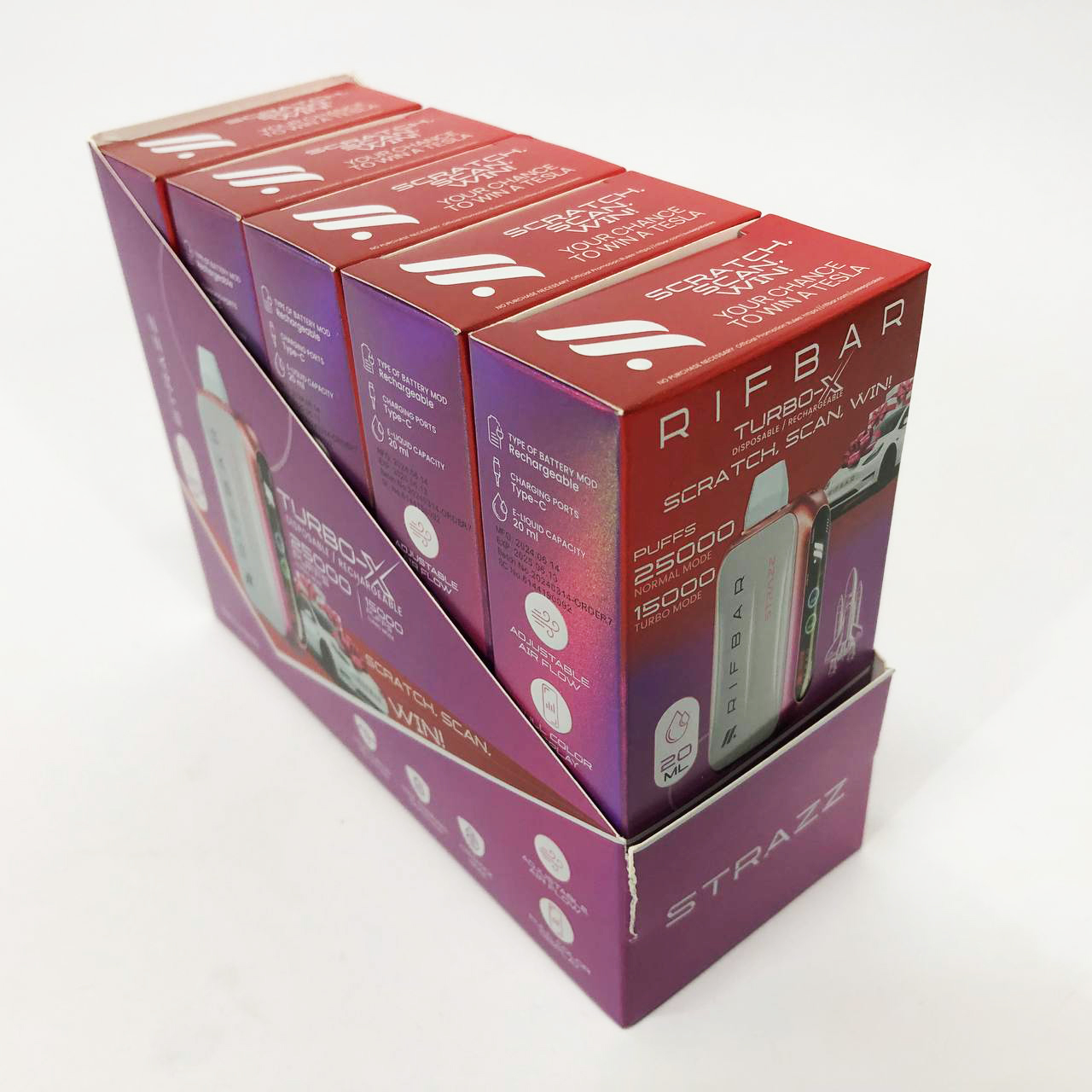 Rif Bar TURBO-X 25000 – це одноразовий пристрій, розроблений для тих, хто цінує тривале використання та насичений смак. Завдяки своїй ємній батареї та великому об’єму рідини, вона здатна забезпечити безліч задоволення.