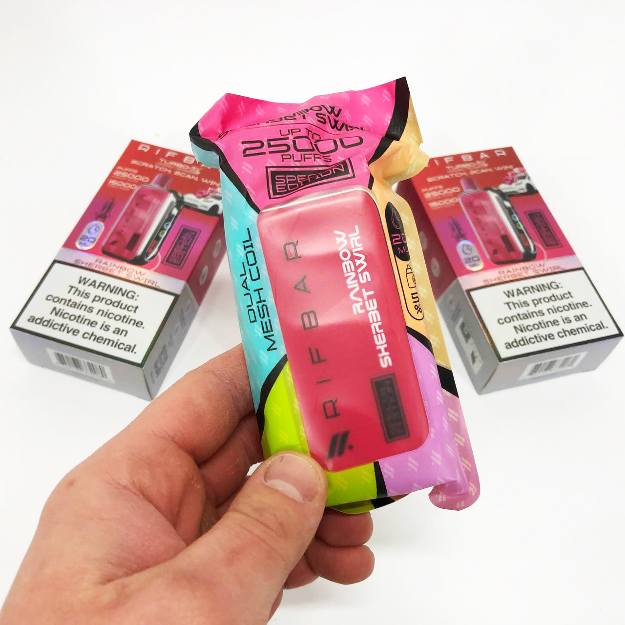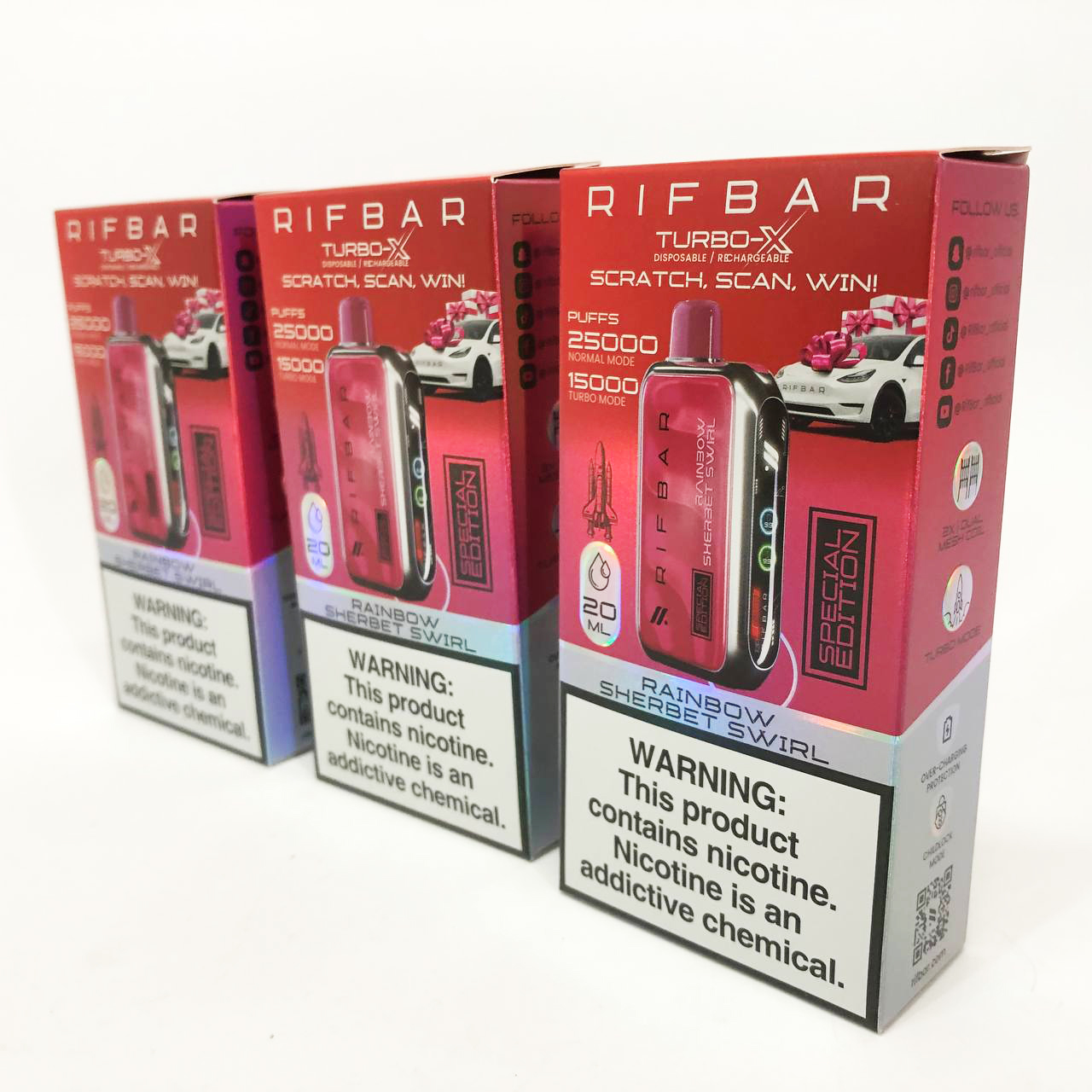 Rif Bar TURBO-X 25000 – це одноразовий пристрій, розроблений для тих, хто цінує тривале використання та насичений смак. Завдяки своїй ємній батареї та великому об’єму рідини, вона здатна забезпечити безліч задоволення.