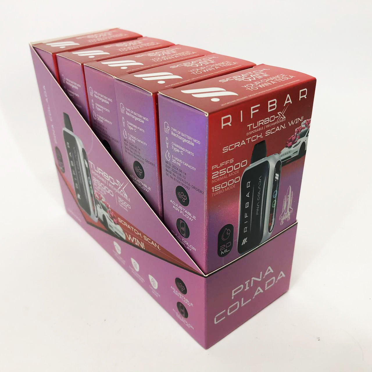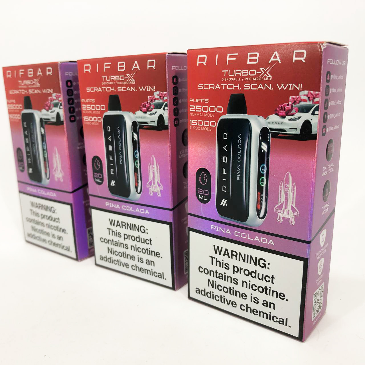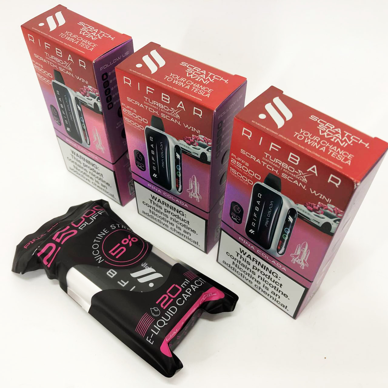 Rif Bar TURBO-X 25000 – це одноразовий пристрій, розроблений для тих, хто цінує тривале використання та насичений смак. Завдяки своїй ємній батареї та великому об’єму рідини, вона здатна забезпечити безліч задоволення.