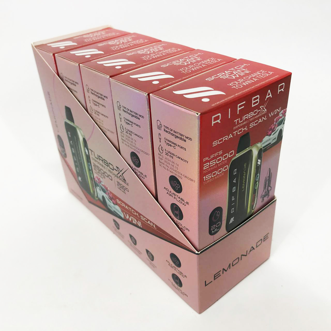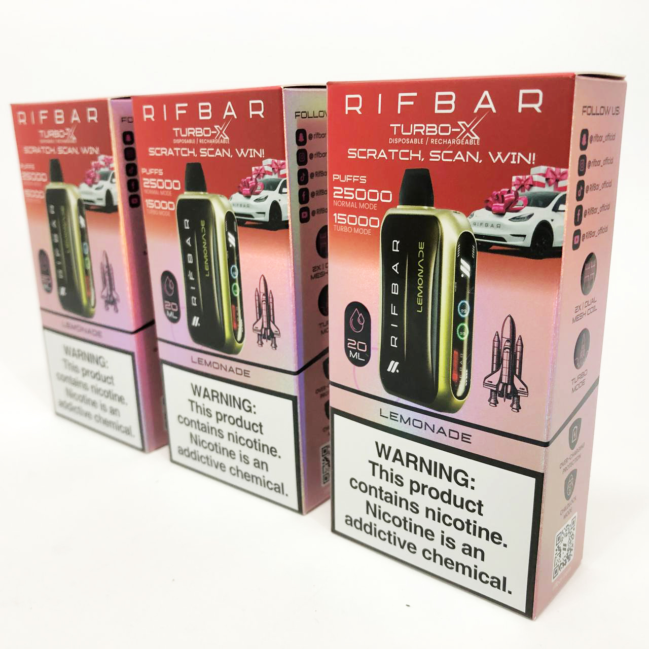 Rif Bar TURBO-X 25000 – це одноразовий пристрій, розроблений для тих, хто цінує тривале використання та насичений смак. Завдяки своїй ємній батареї та великому об’єму рідини, вона здатна забезпечити безліч задоволення.