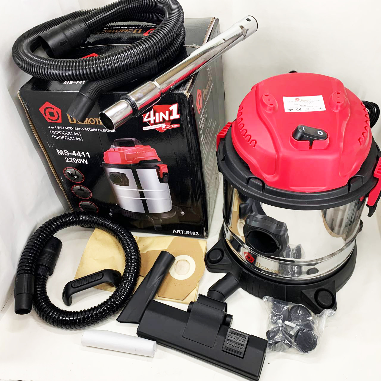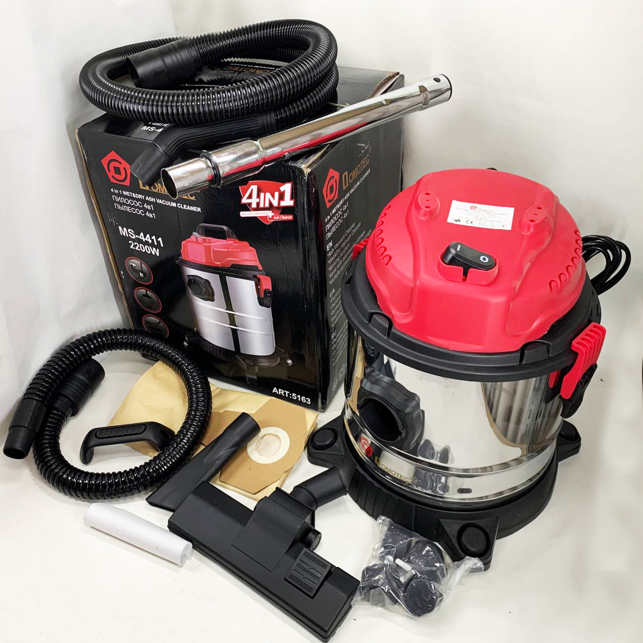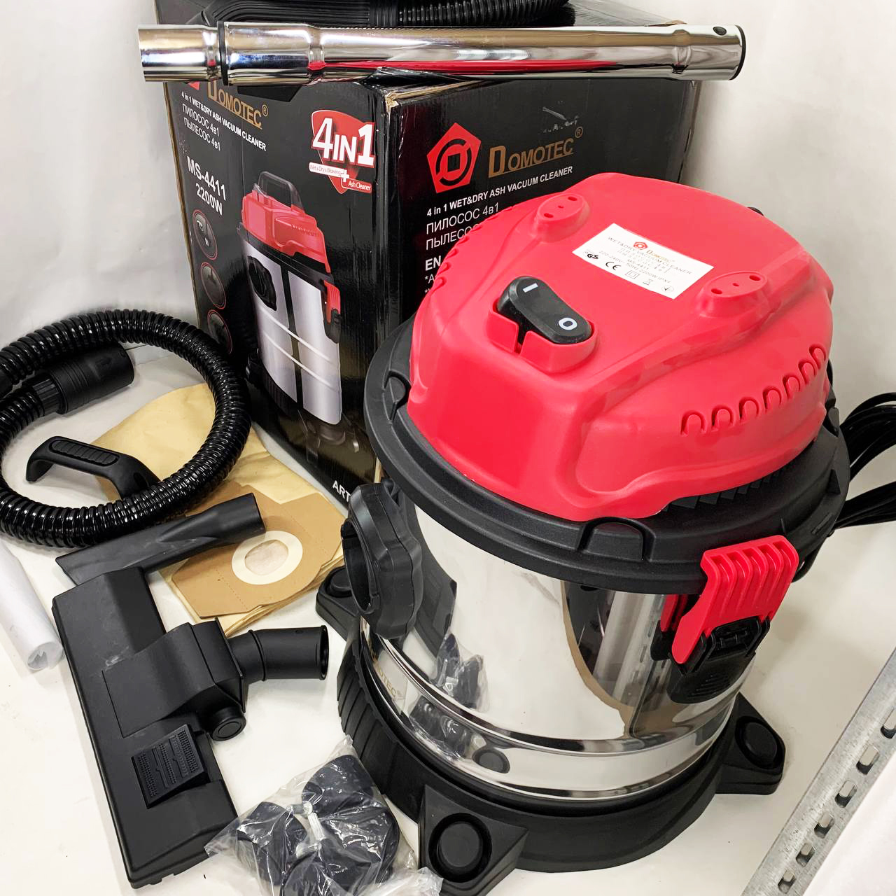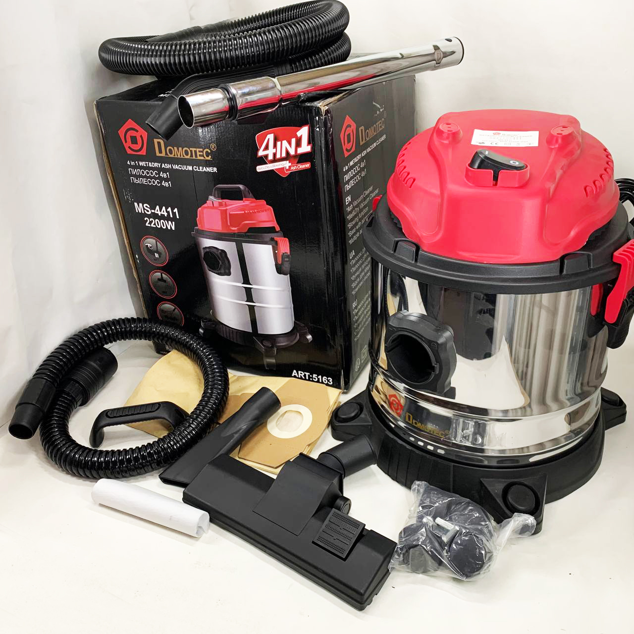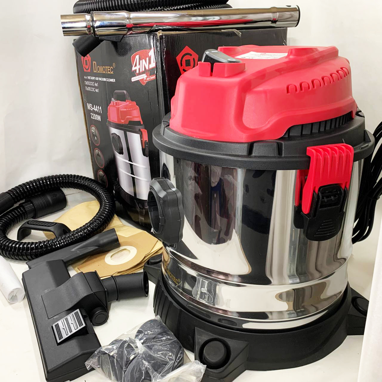 Промисловий будівельний пилосос 4в1 Domotec MS-4411 2200 Вт без мішка для сухого та вологого збирання.