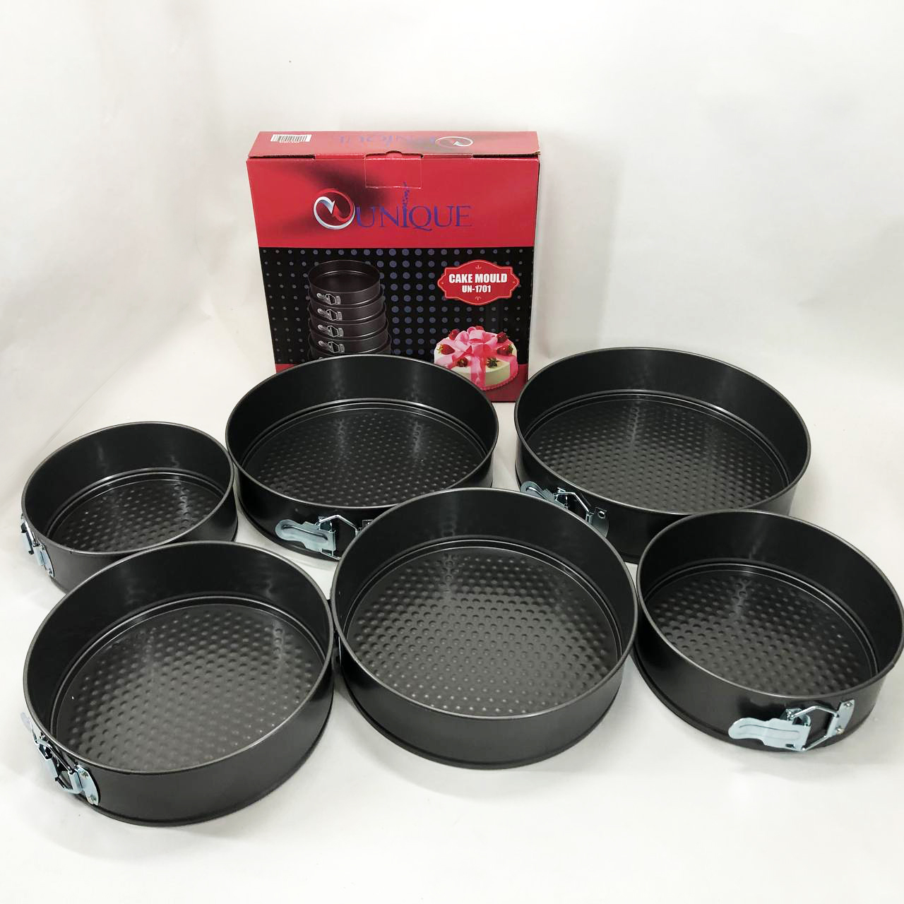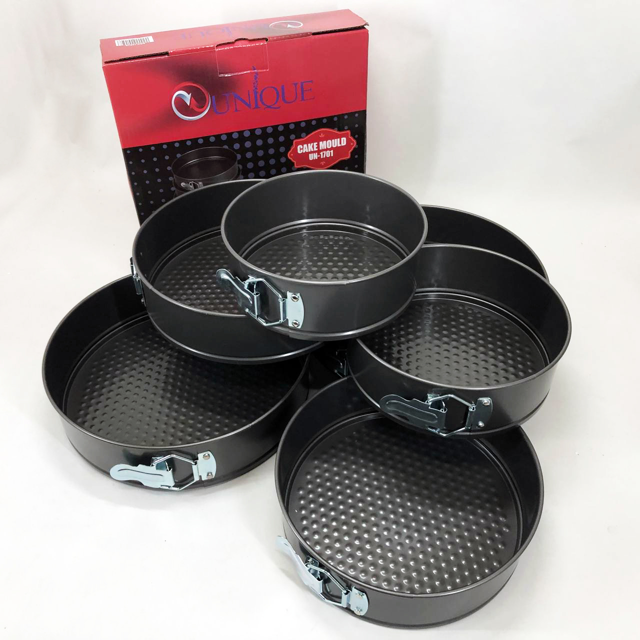 Рознімні форми для запікання UNIQUE UN-1701 з 6 формочок призначені для випікання всіх видів тіста, складання тортів та мусових десерти. Завдяки роз’ємній конструкції коржі легко витягаються з форми.