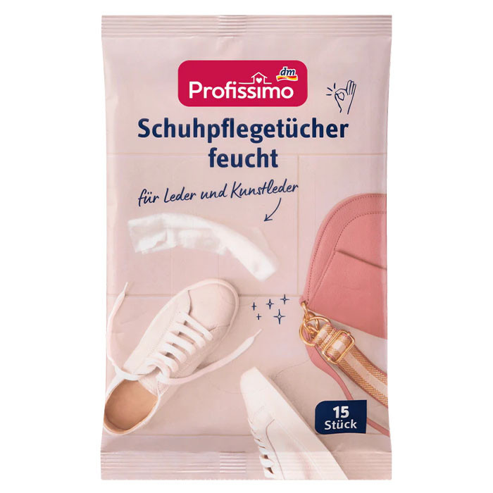 Вологі серветки Profissimo Schuhpflegetücher для догляду за взуттям надають чистоти та блиску. Вологі серветки призначені для чищення та оновлення всіх видів виробів із натуральної та штучної шкіри. Вони повертають їй природний вигляд, а також захищають та зберігають її протягом тривалого часу, нейтралізують статичну електрику.