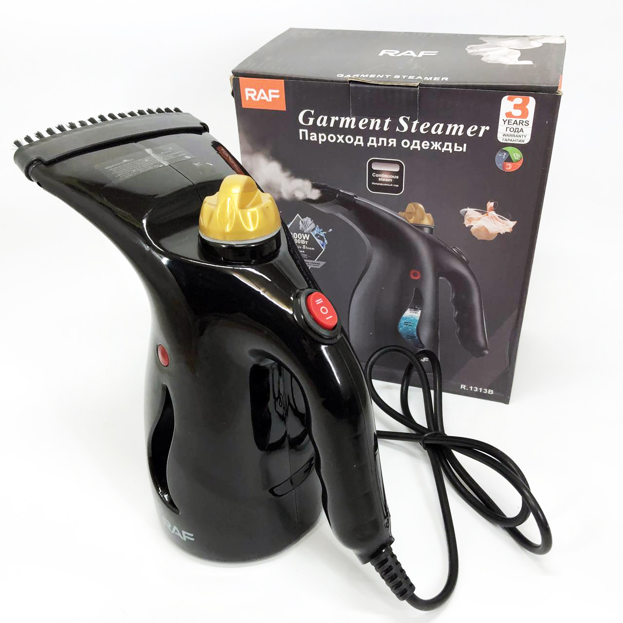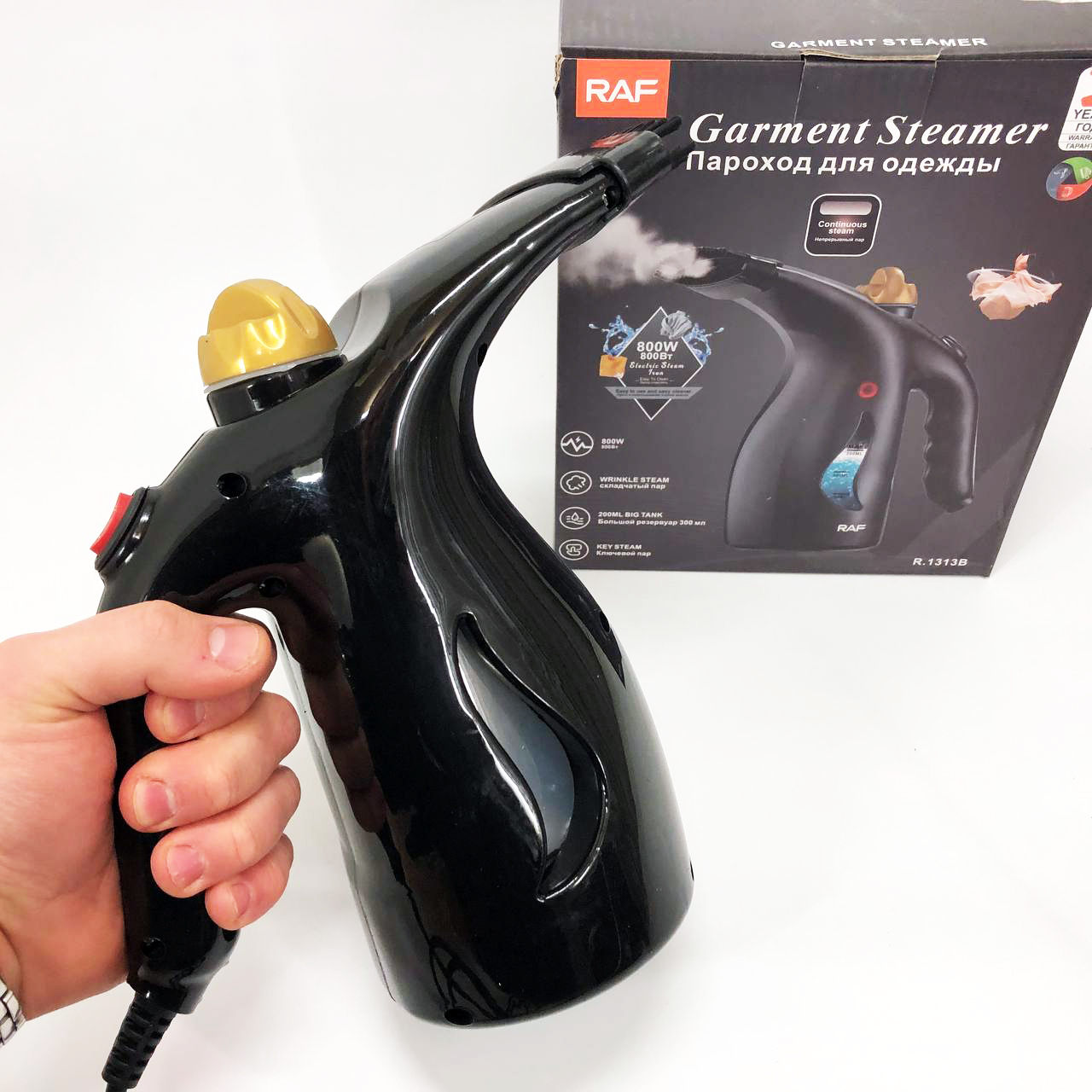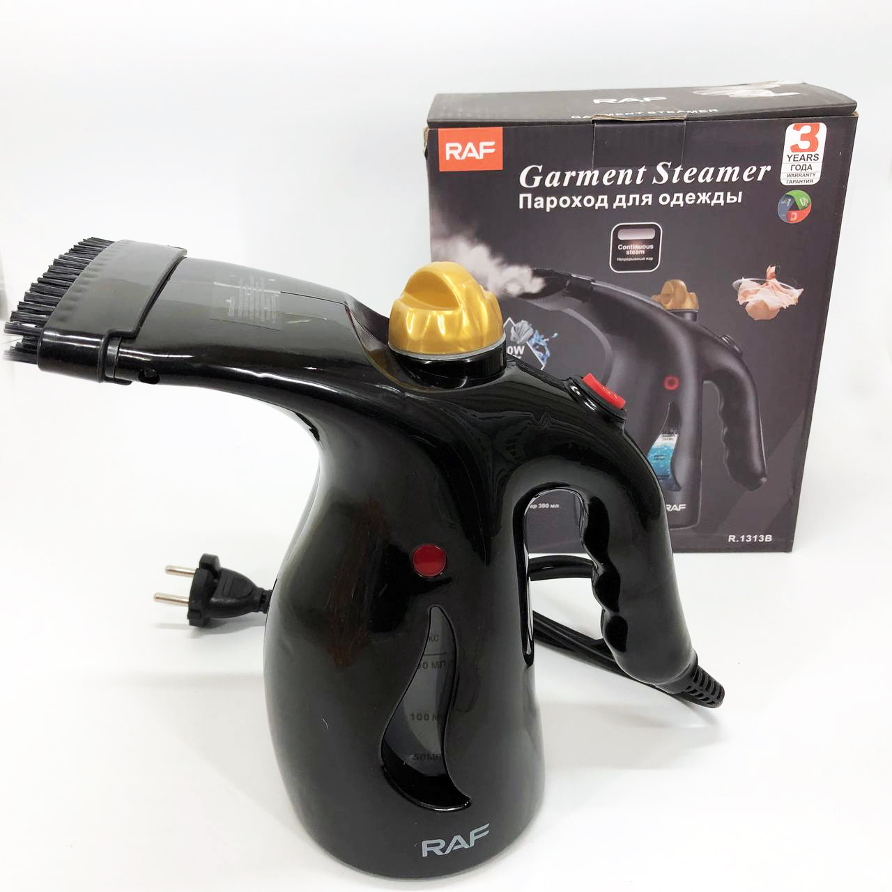 Ручний вертикальний відпарювач RAF R.1313B для одягу з мірною чашею для води на 1000 Вт