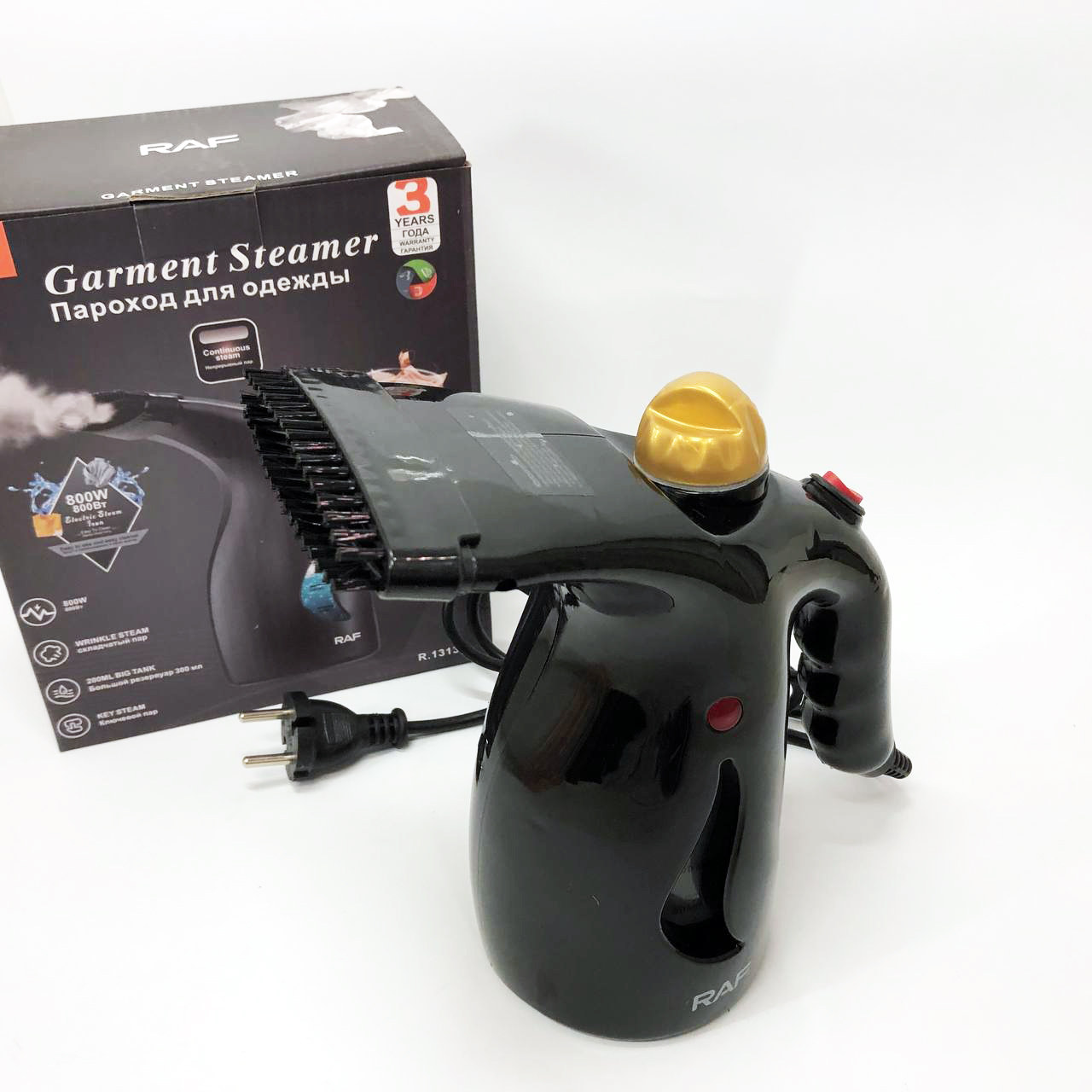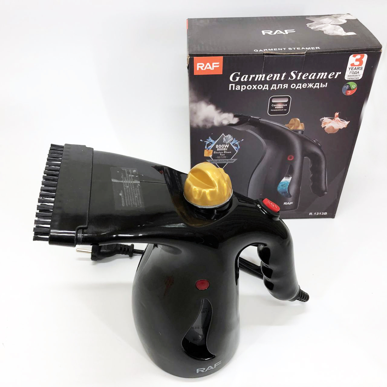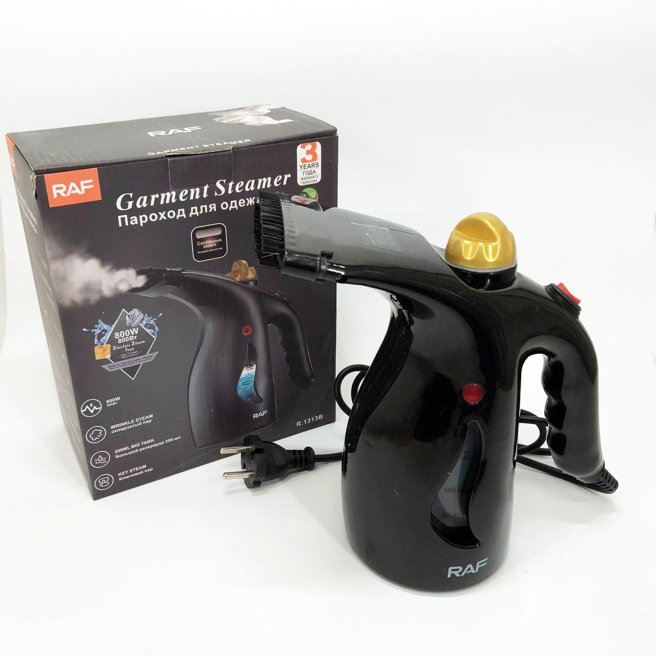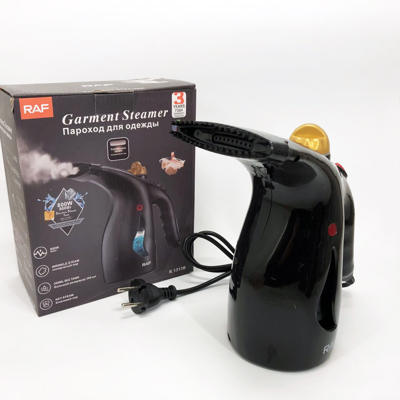 Ручний вертикальний відпарювач RAF R.1313B для одягу з мірною чашею для води на 1000 Вт