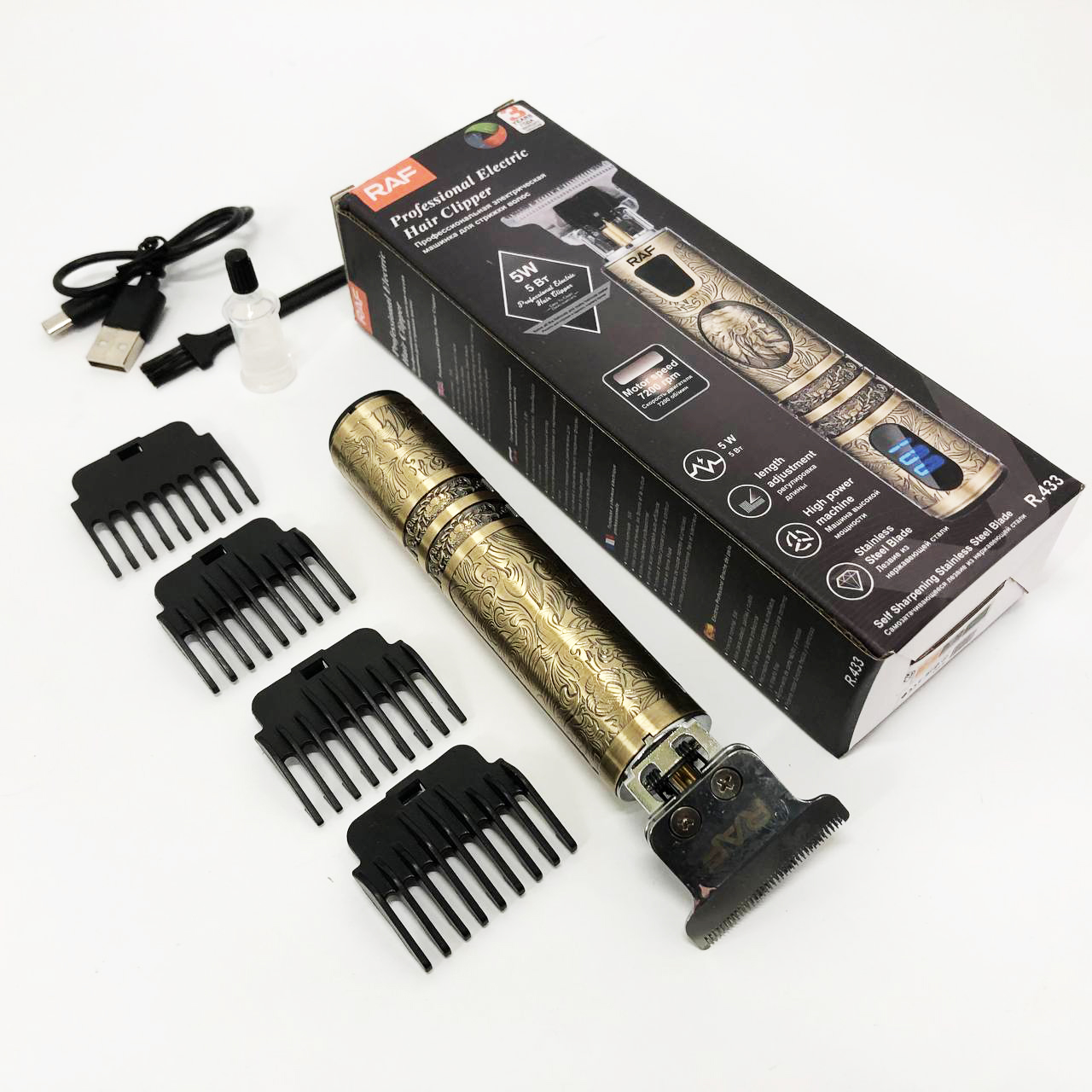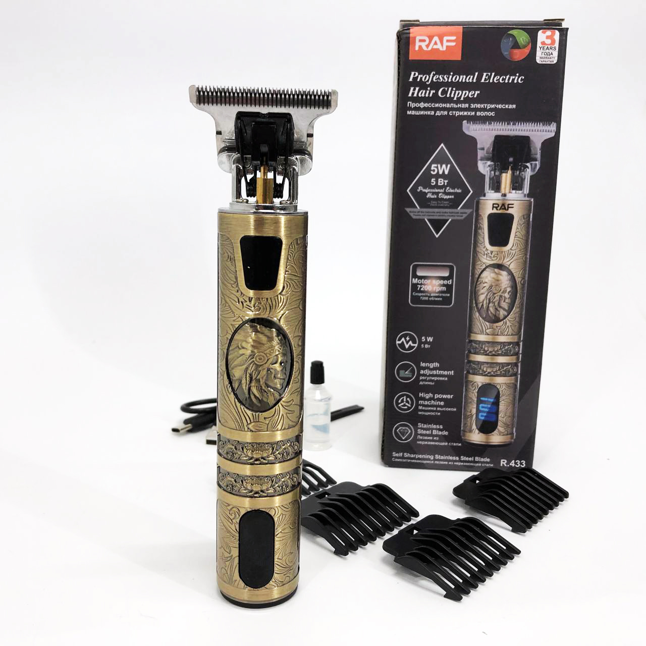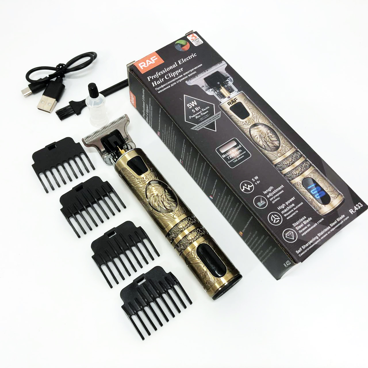 Тример для стрижки волосся R.433 – це портативний пристрій, який використовується для стрижки волосся у різних зонах: таких як волосся на голові, борода, вуса, брови або волосся навколо вух.