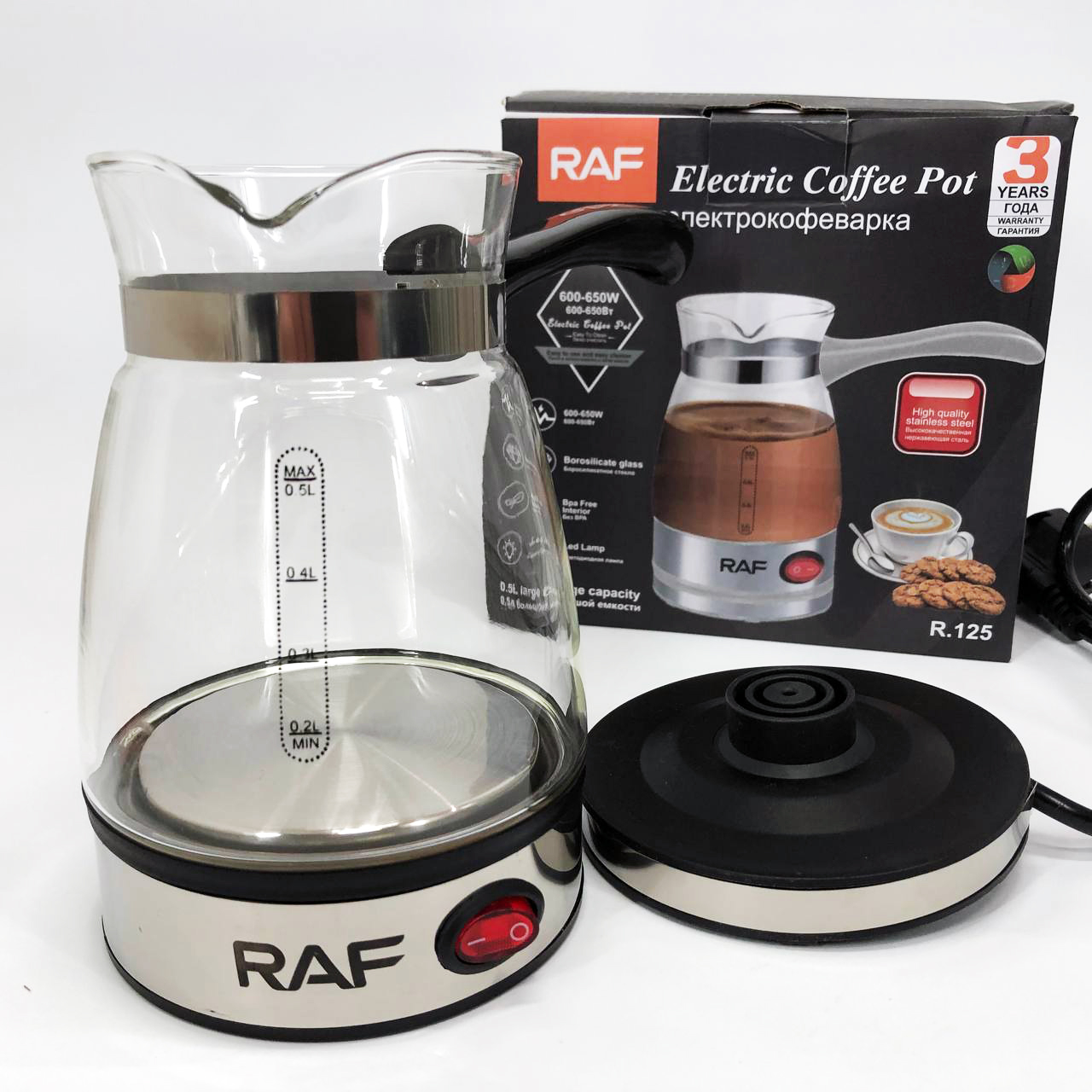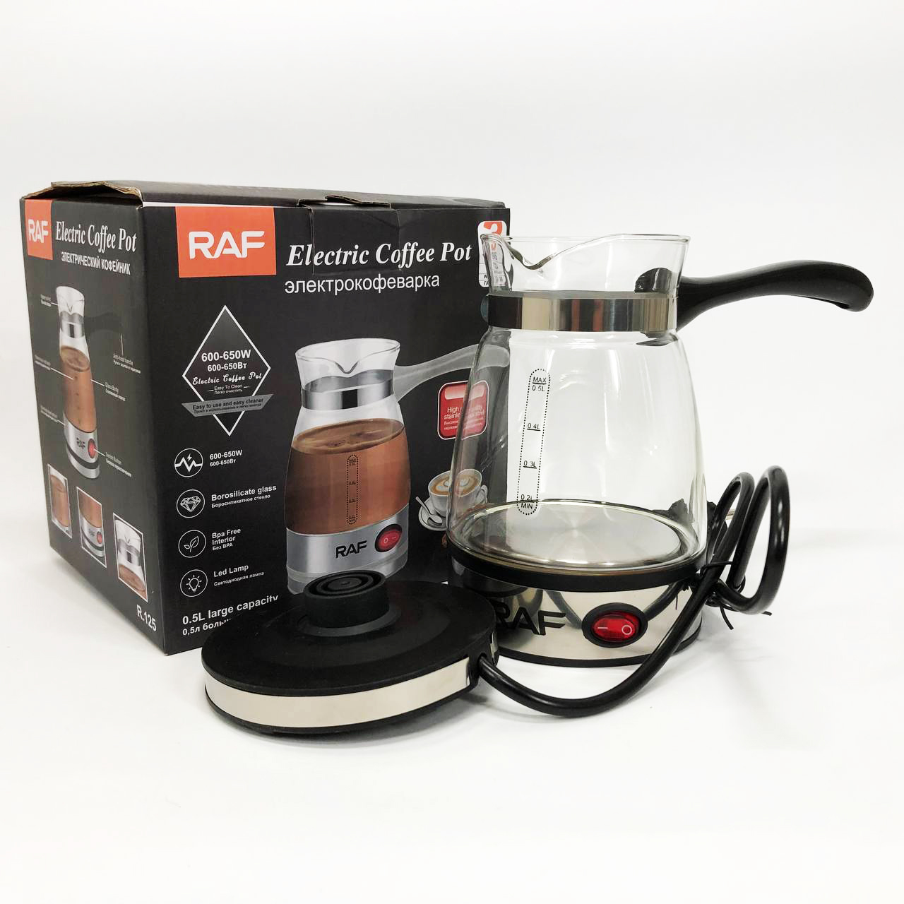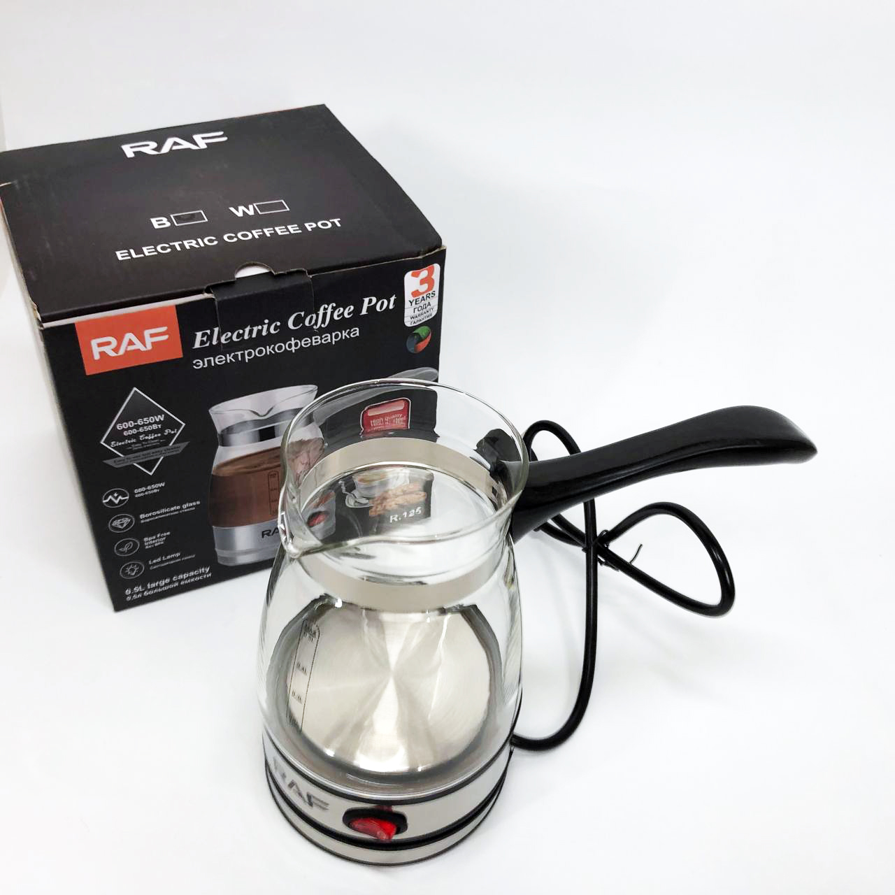 Електрична турка для кави RAF R.125 Кавоварка зі скляною чашею 500мл 600 Вт. Колір: чорний