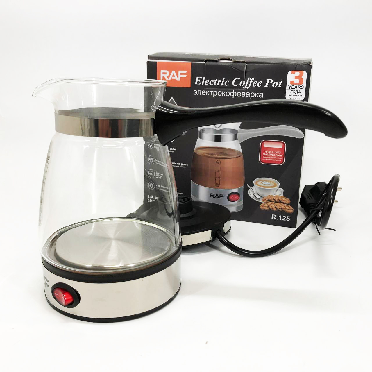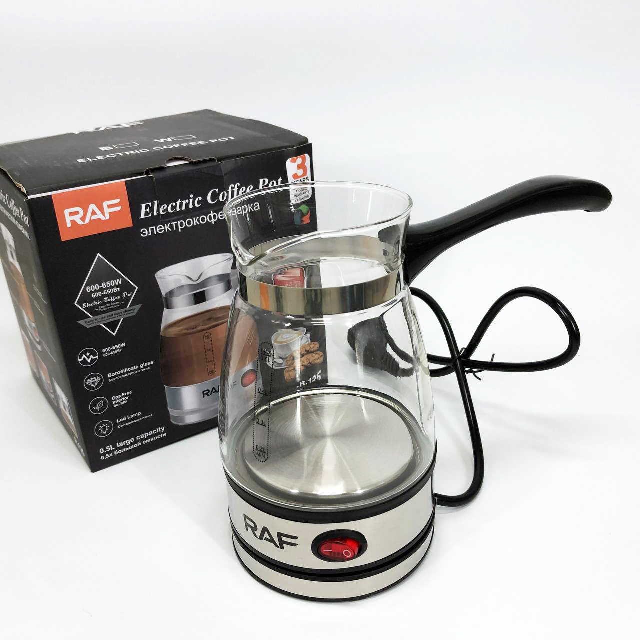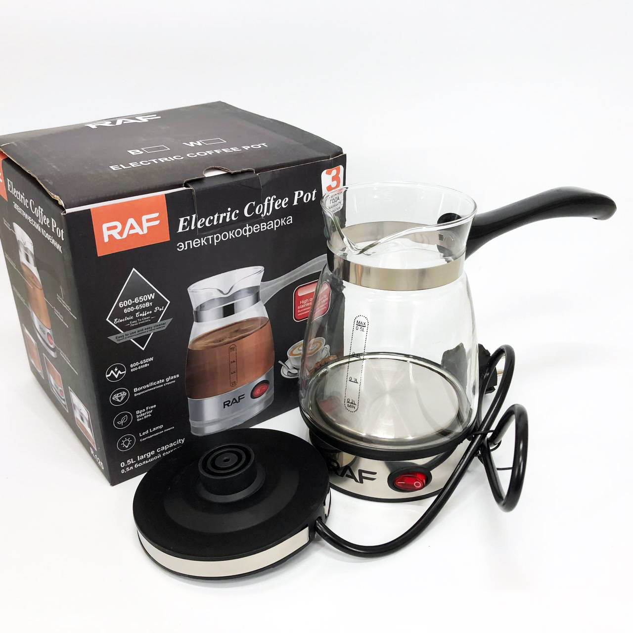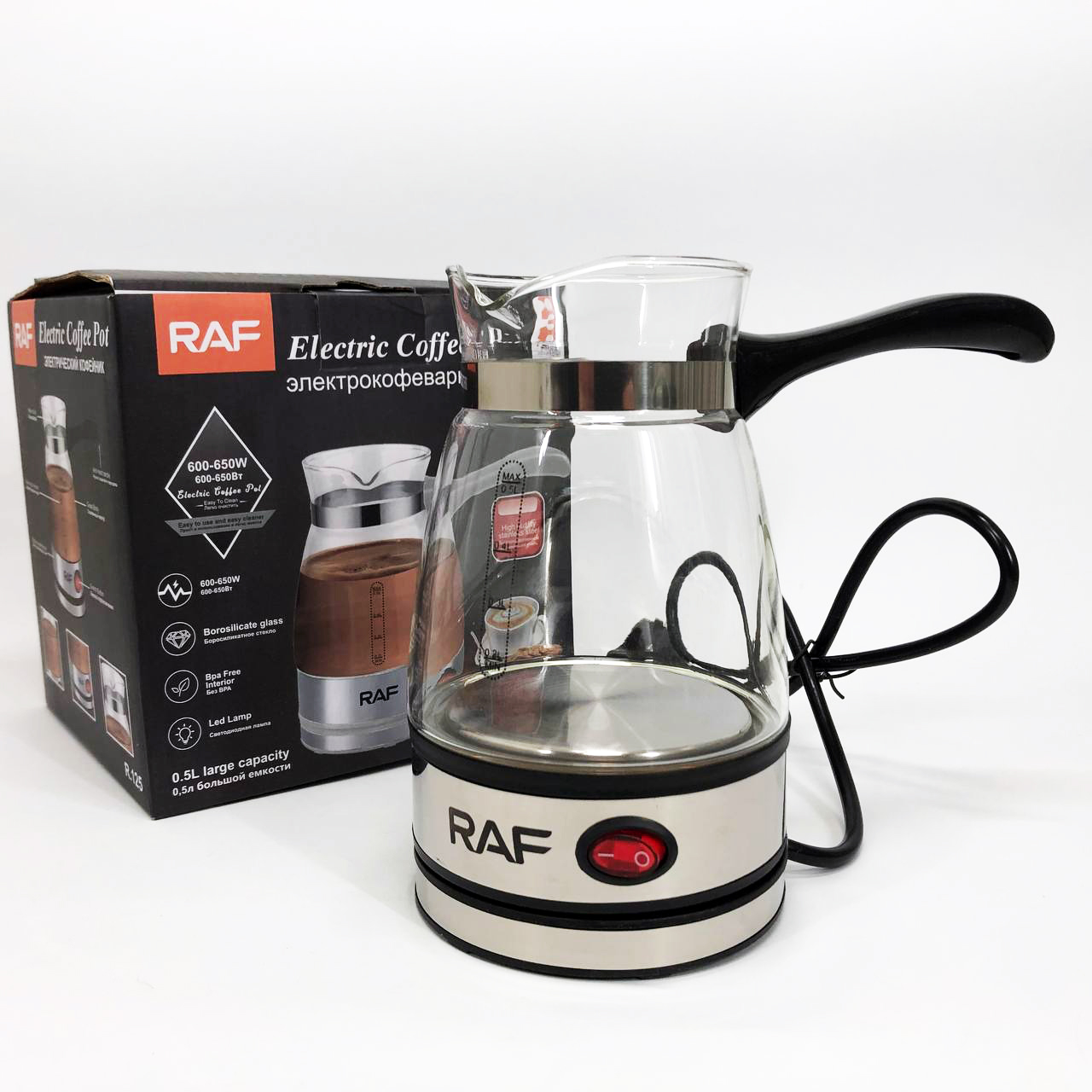 Електрична турка для кави RAF R.125 Кавоварка зі скляною чашею 500мл 600 Вт. Колір: чорний