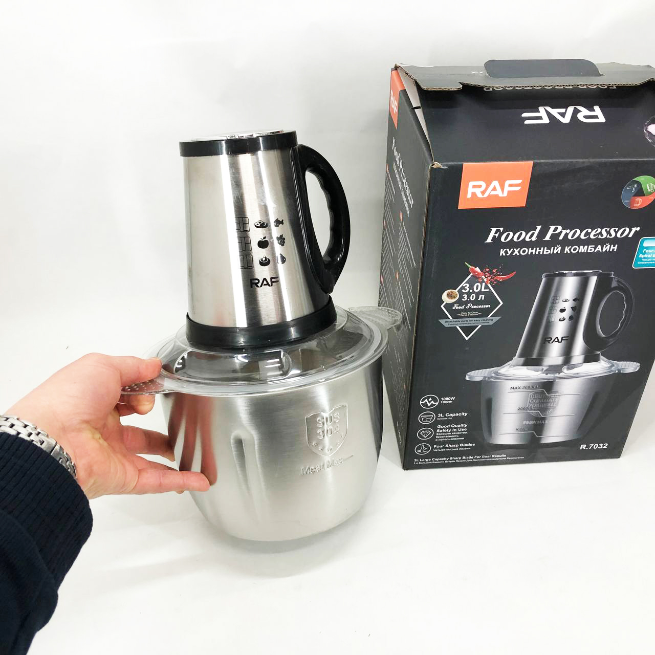 Комбайн кухонний блендер RAF R.7032 – це портативний і багатофункціональний подрібнювач, блендер, м’ясорубка.