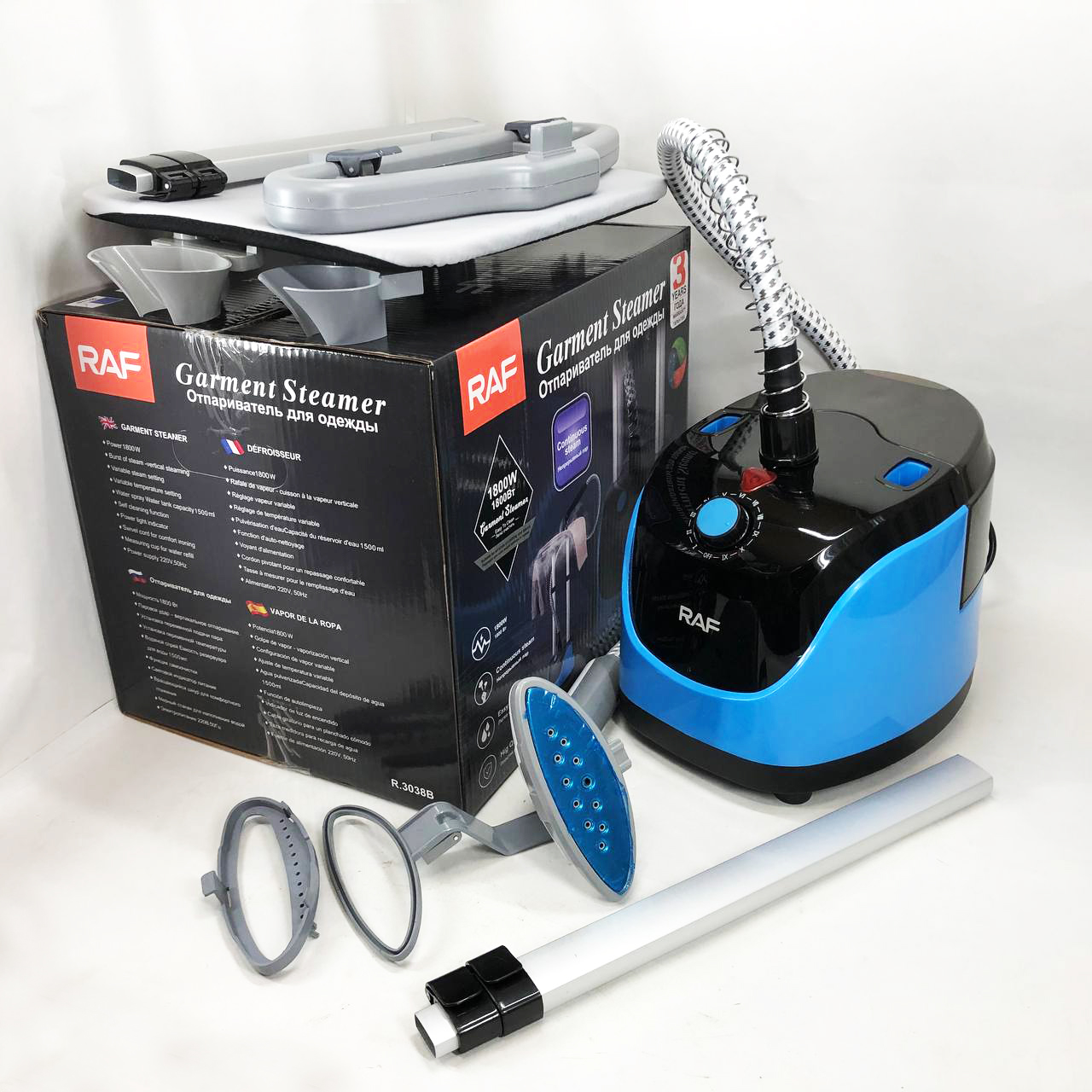 Відпарювач вертикальний для одягу зі стійкою RAF R.3038 1800 W. Колір: синій