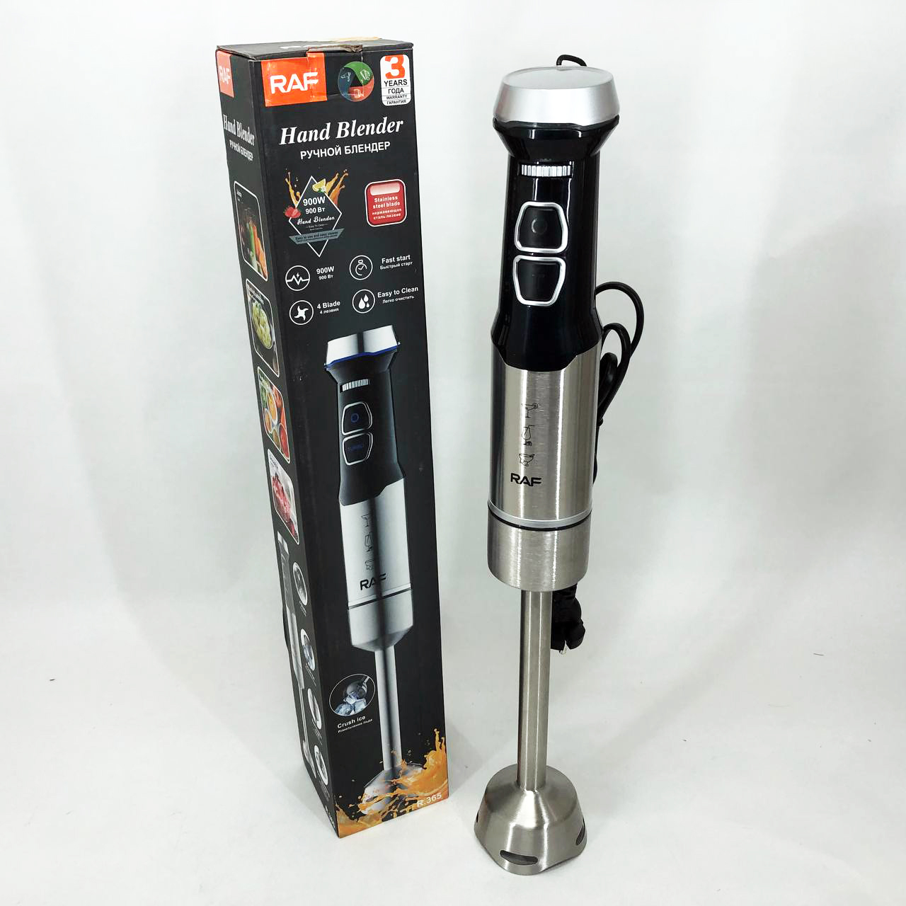 Занурювальний блендер RAF – це універсальний кухонний прилад, який стане незамінним помічником на вашій кухні. Завдяки потужному двигуну 900 Вт і зручному механічному управлінню, цей блендер дозволяє швидко і ефективно змішувати, подрібнювати, взб