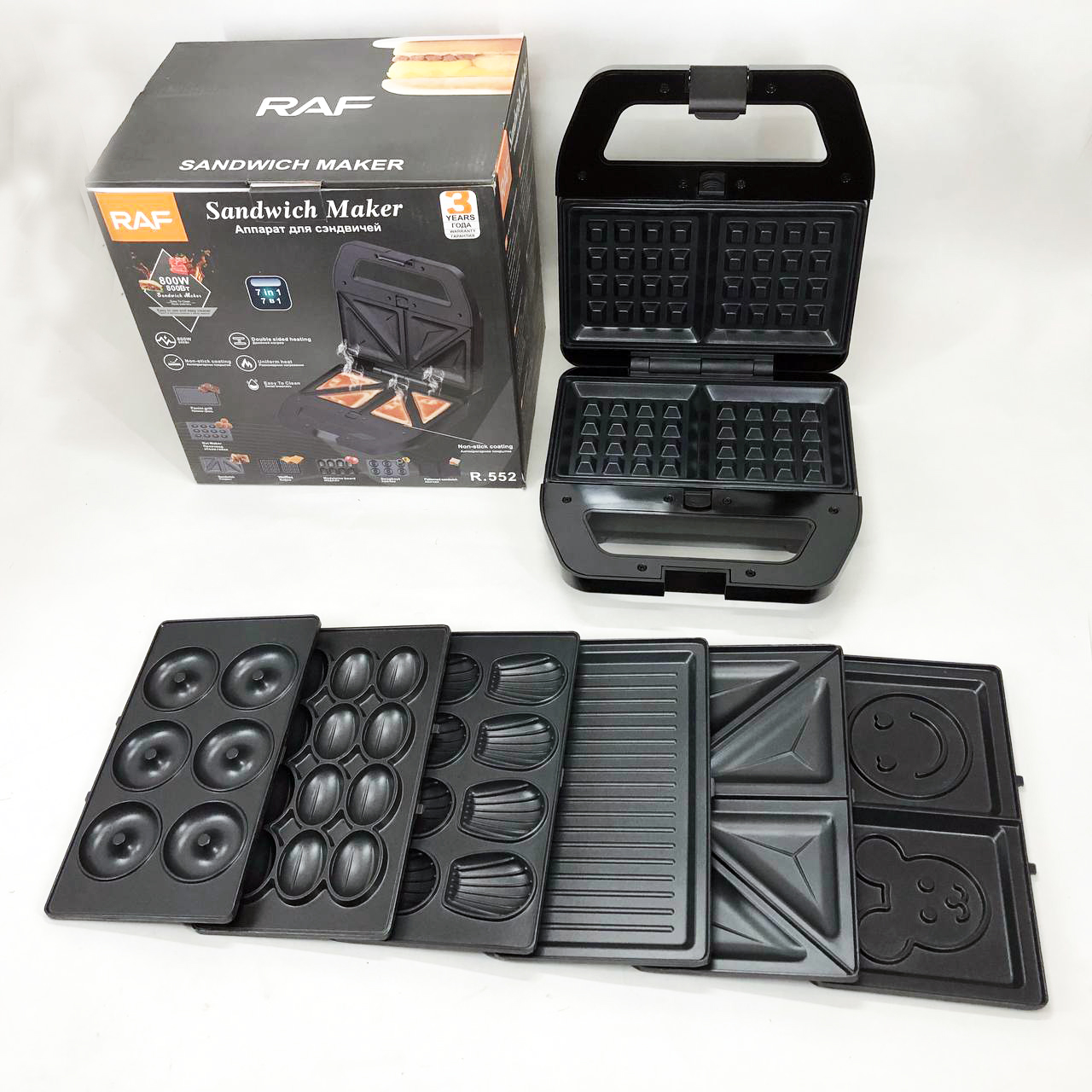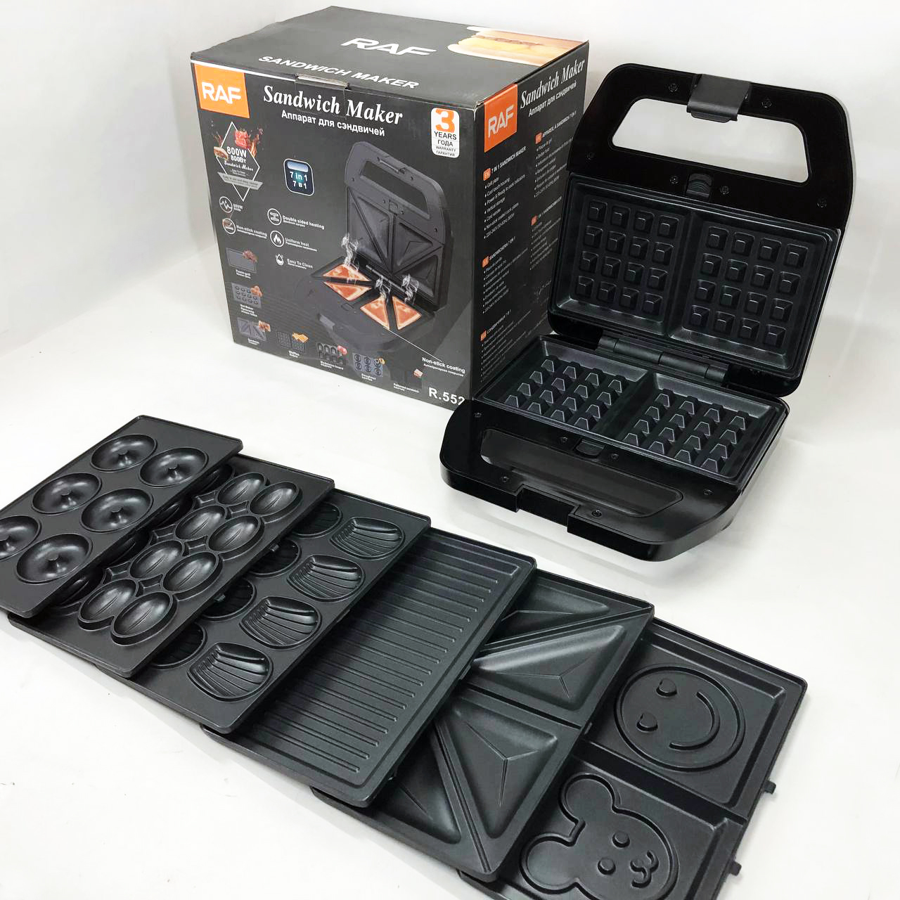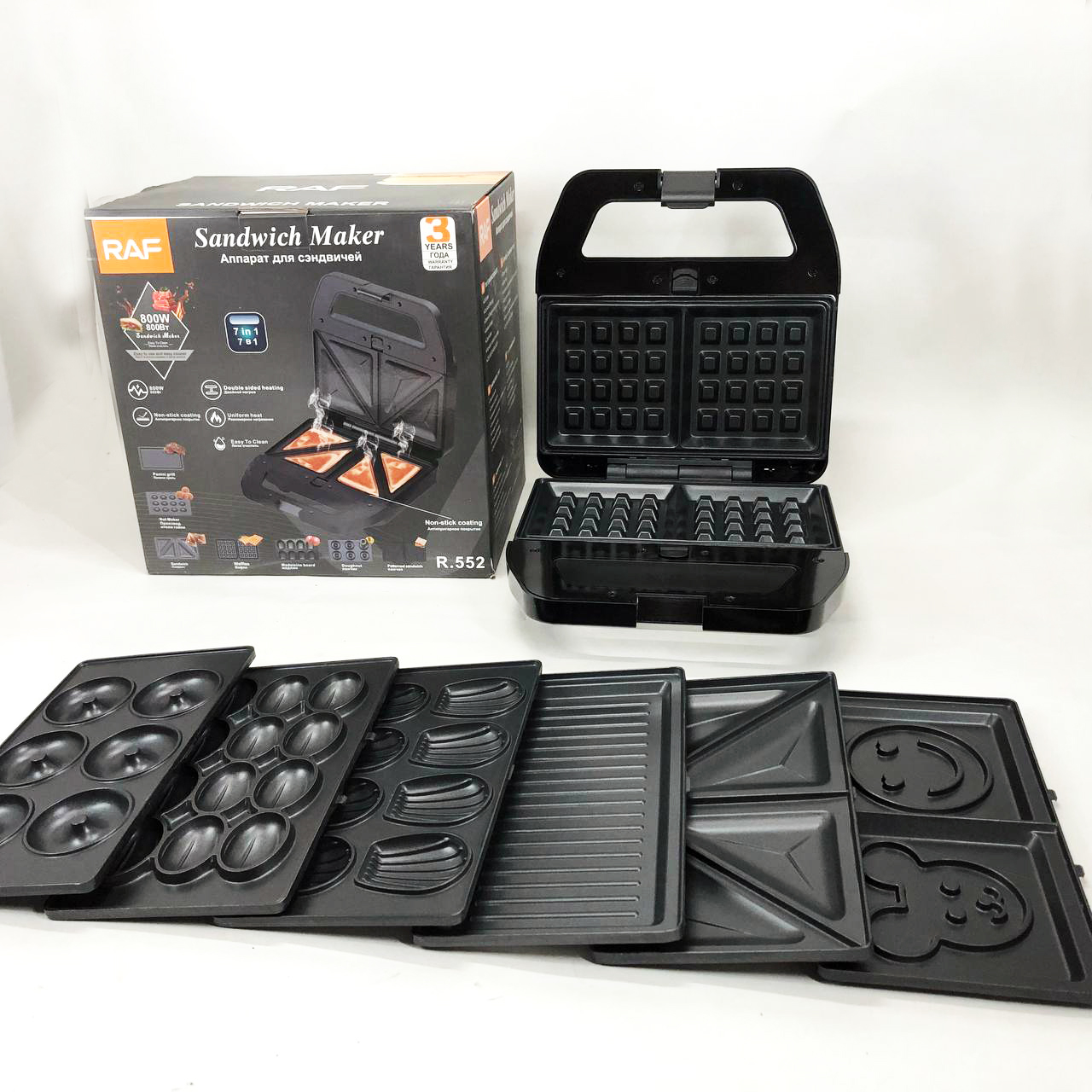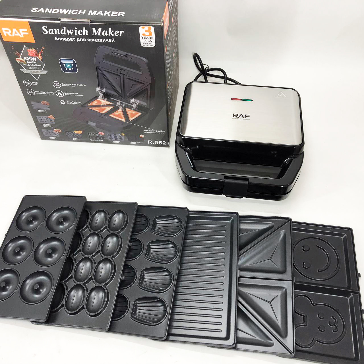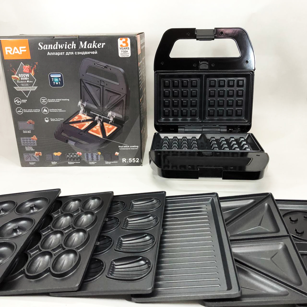 Мультимейкер RAF R.552 – 7 в 1: вафельниця, гриль, сендвічниця, пончики, горіхи, кекси, печиво, 800 Вт