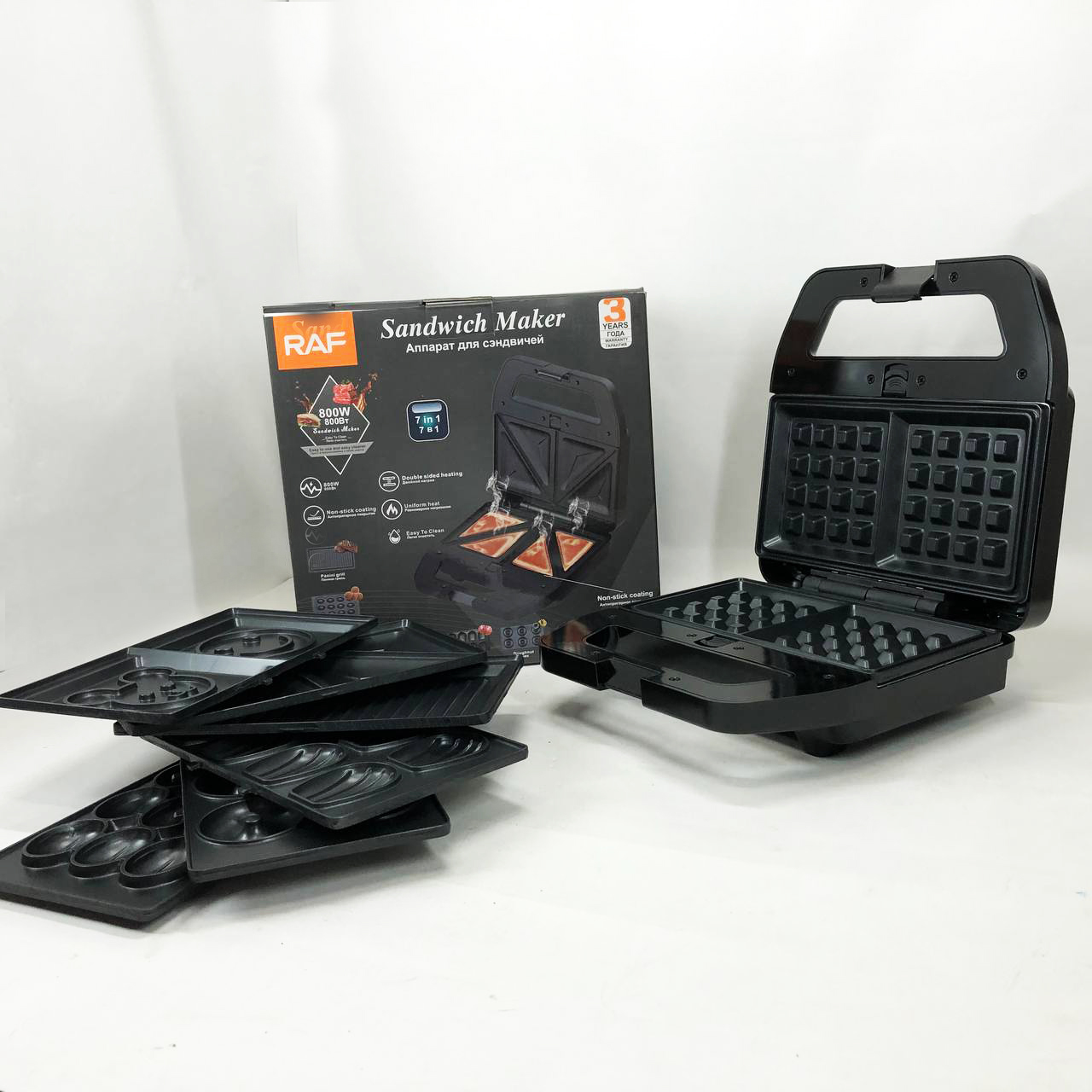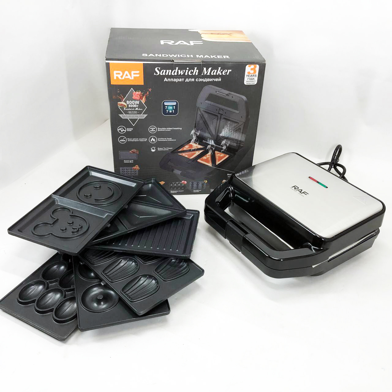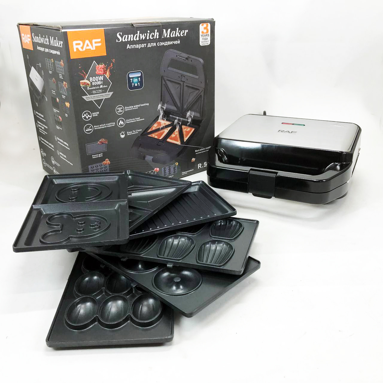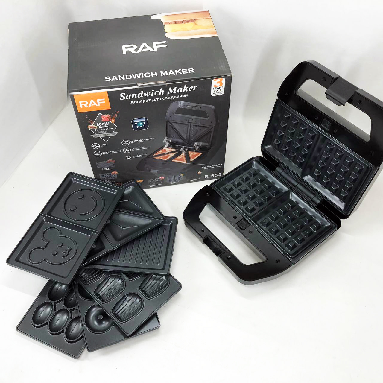 Мультимейкер RAF R.552 – 7 в 1: вафельниця, гриль, сендвічниця, пончики, горіхи, кекси, печиво, 800 Вт