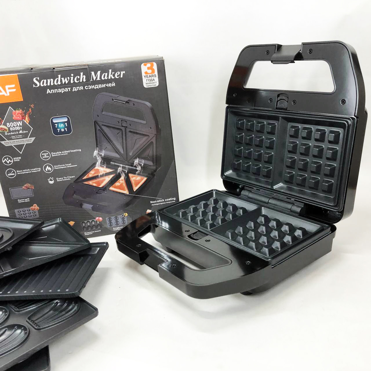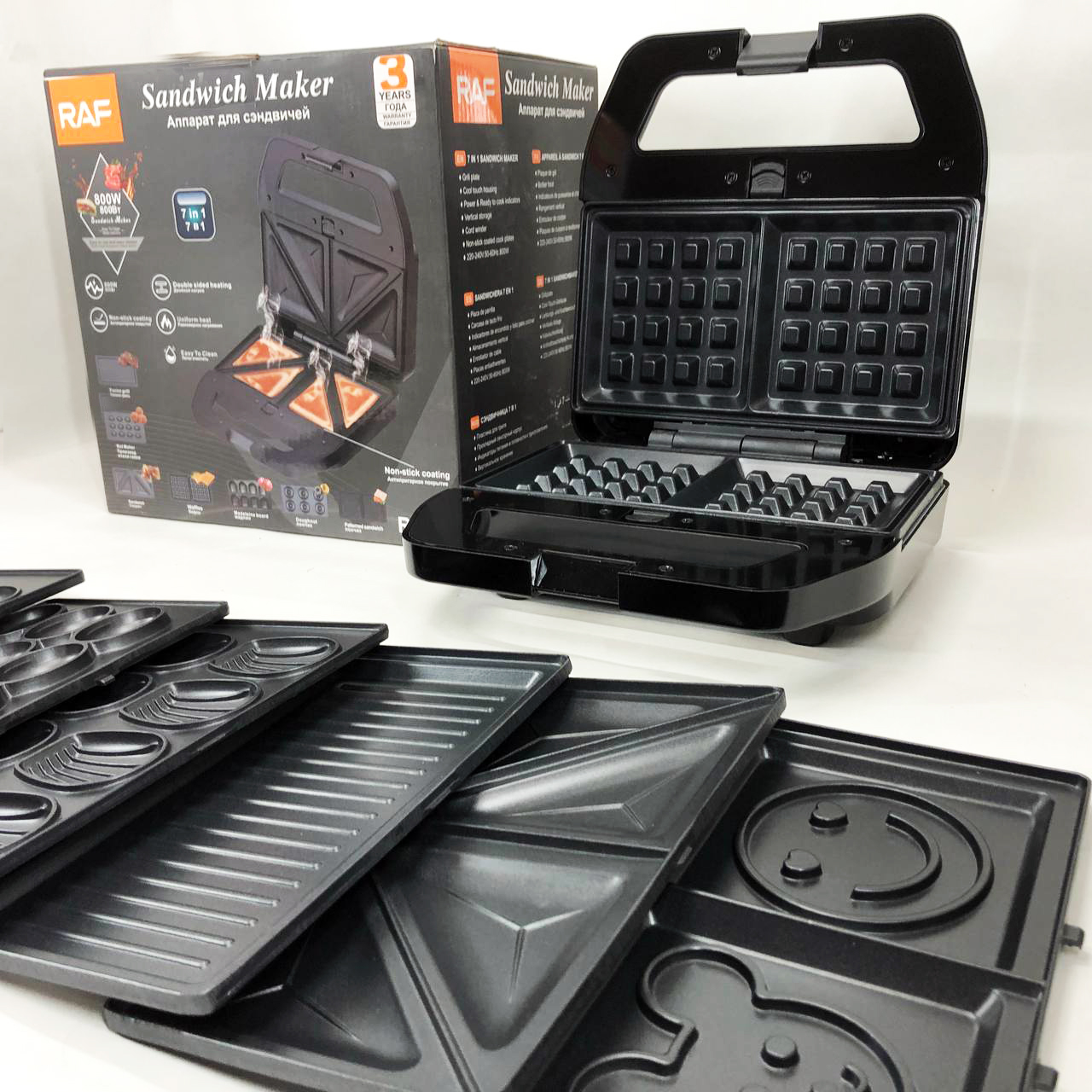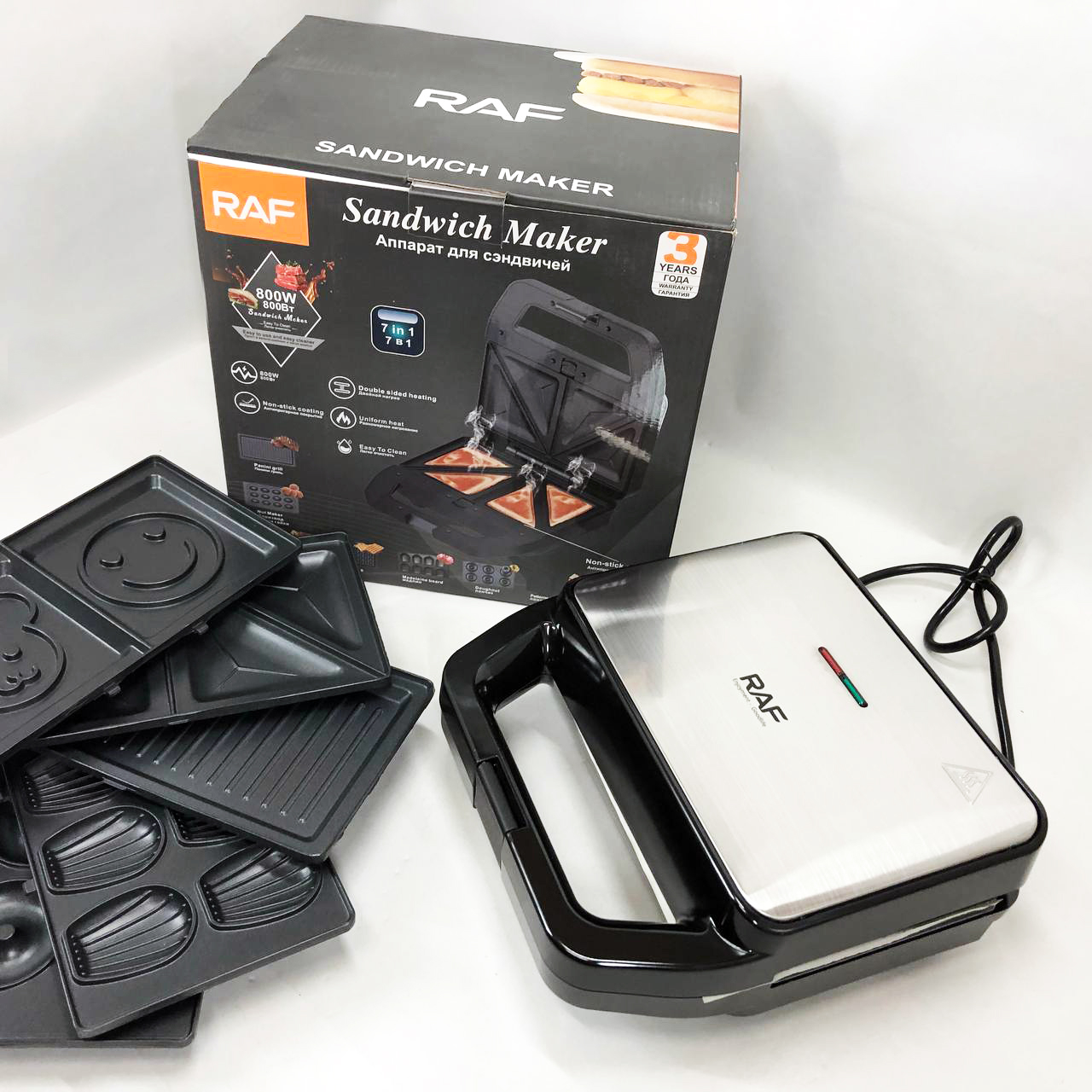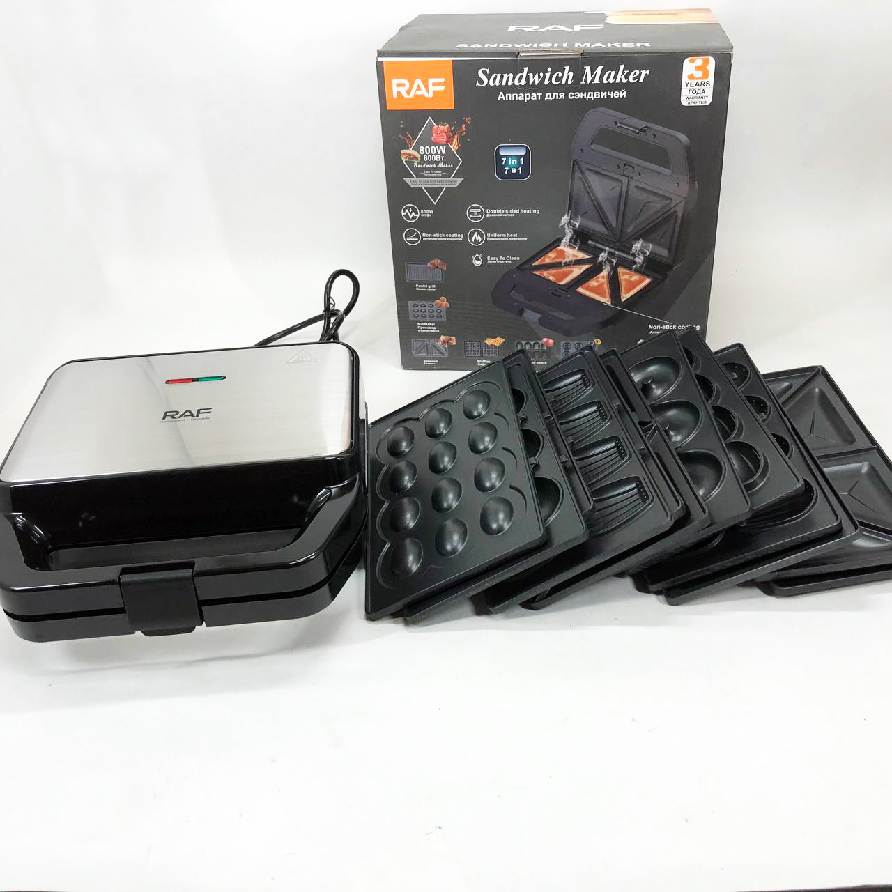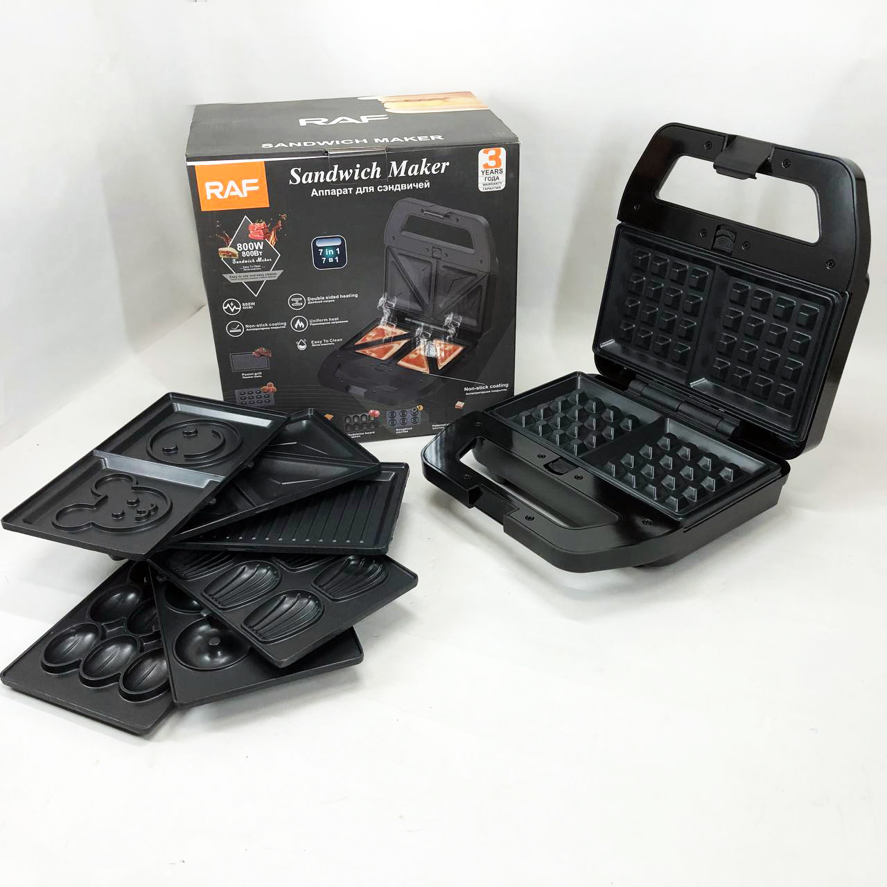 Мультимейкер RAF R.552 – 7 в 1: вафельниця, гриль, сендвічниця, пончики, горіхи, кекси, печиво, 800 Вт
