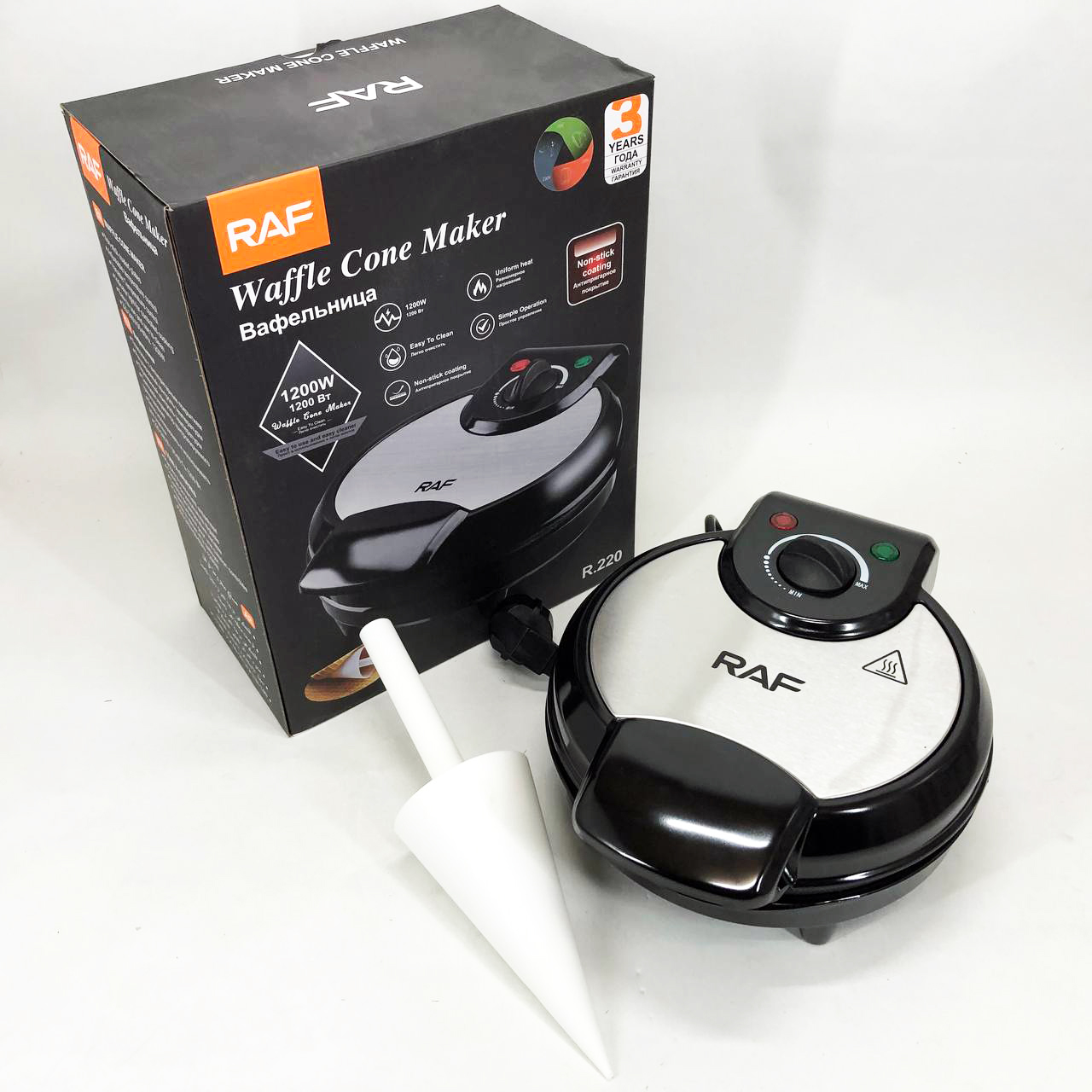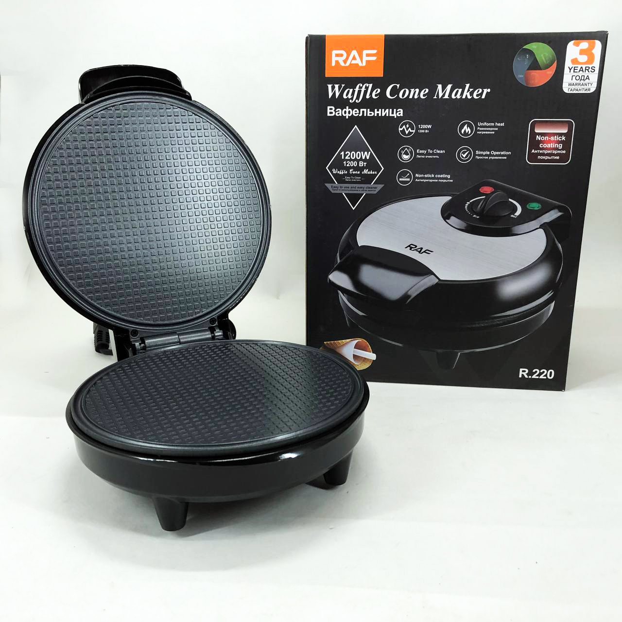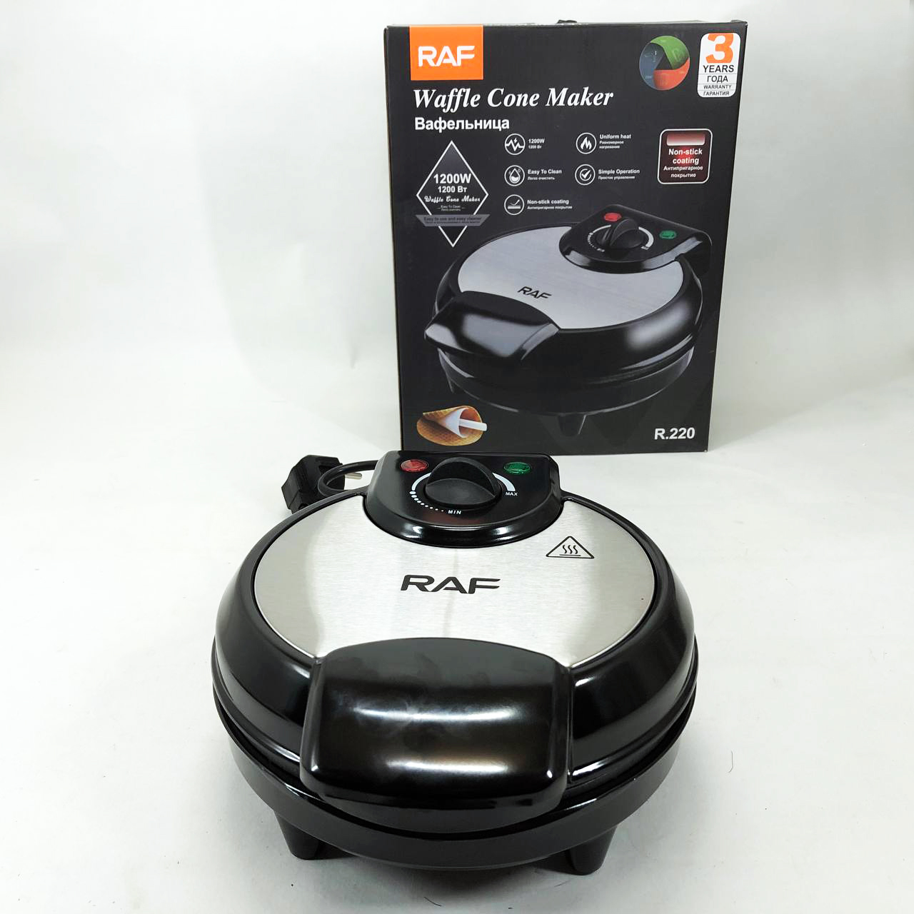 Електрична вафельниця RAF-220 призначена для приготування круглих і хрумких вафель, які можна загорнути в трубочки і наповнити фруктовою або кремовою начинкою. Рівномірний розподіл температури та антипригарне покриття робочих пластин забезпечують високу якість смаження вафлів з обох боків. Цей простий і надійний пристрій підходить як для домашнього використання, так і для професійної кухні. Крім того, вафельниця легко чиститься – достатньо протерти її вологою ганчірочкою, і вона готова до наступного використання