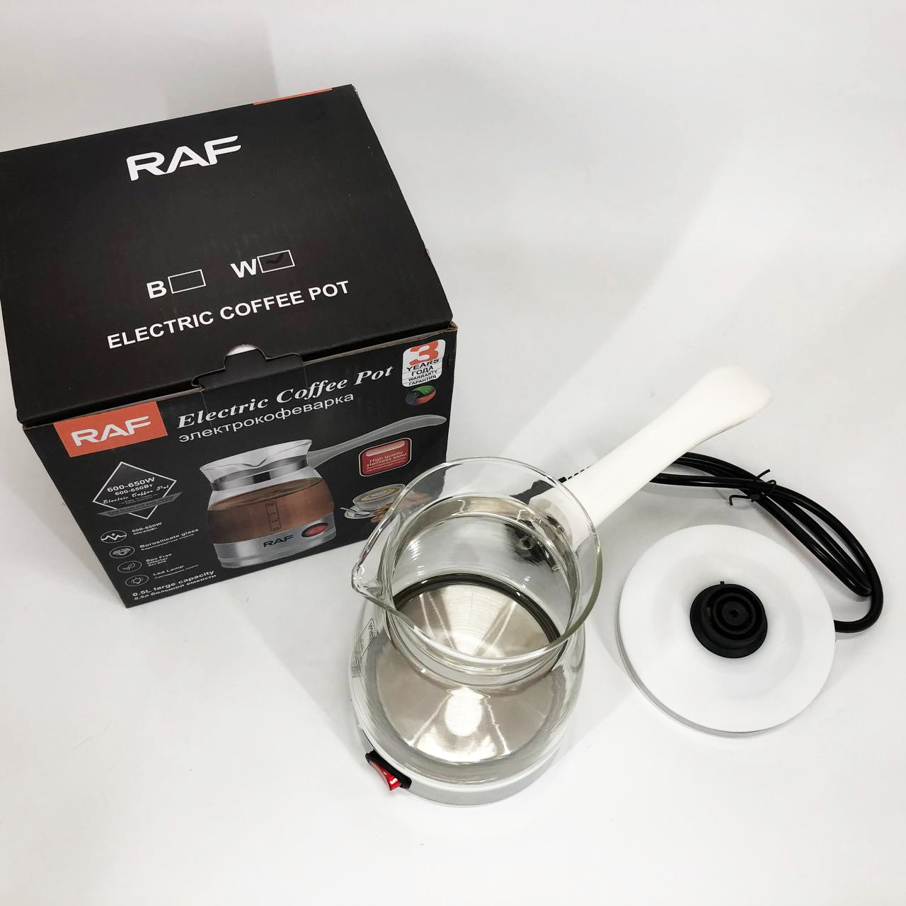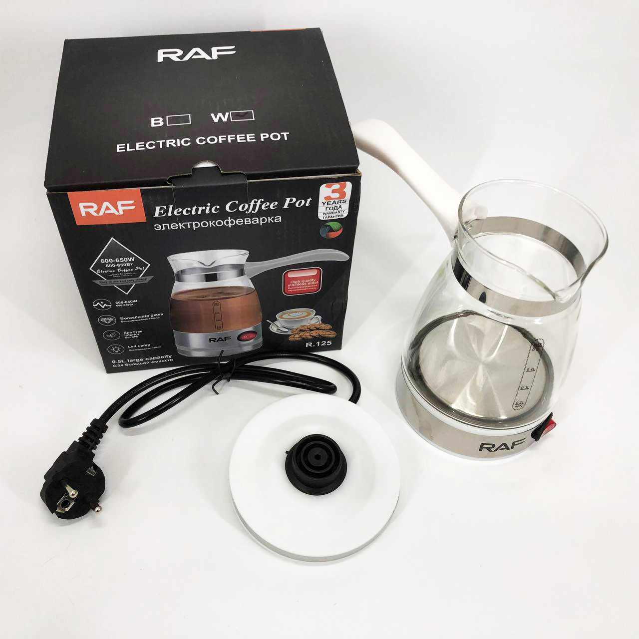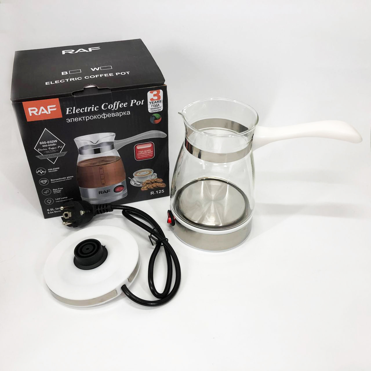 Електрична турка для кави RAF R.125 Кавоварка зі скляною чашею 500мл 600 Вт. Колір: білий