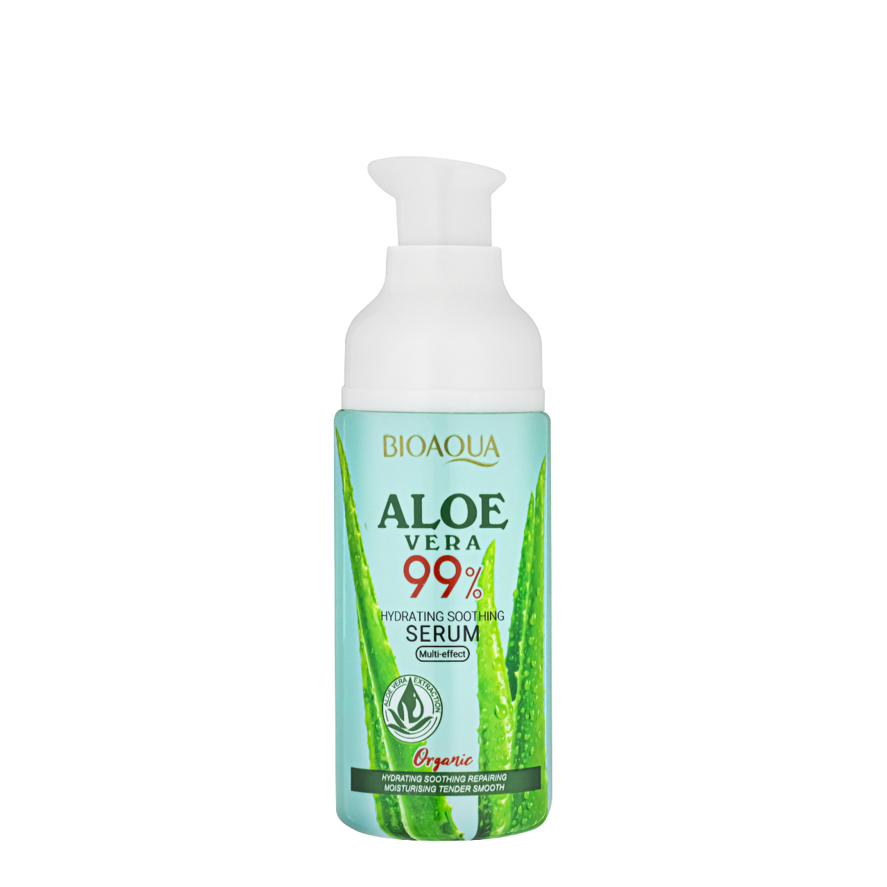 Зволожувальна заспокійлива сироватка Bioaqua Aloe Vera 99% Hydrating Soothing Serum з екстрактом алое вераСироватка з екстрактом алое інтенсивно зволожує, заспокоює та відновлює шкіру, знімаючи відчуття стягнення. Легка текстура серуму швидко вбирається, не залишаючи липкості, і підходить для всіх типів шкіри, навіть чутливої. З цим засобом ваша шкіра стає гладкою й шовковистою на дотик, подразнення зменшуються, тон обличчя вирівнюється, глибина зморщок скорочується.Як працює:екстракт алое (99%) — заспокоює, знімає подразнення, прискорює регенерацію;