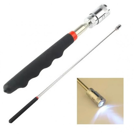 Магнітний наконечник, розташований на крильчатці затоплення, дозволяє витягувати предмети з-під його потужного магнітного поля. Портативний та зручний у використанні, цей інструмент може зрости до 80 см, при цьому його довжина у складному вигляді стане вищою за 19 см. Якісний телескопічний маніпулятор з магнітною головкою та підсвічуванням. Дозволить дістати металеві предмети із важкодоступних місць.