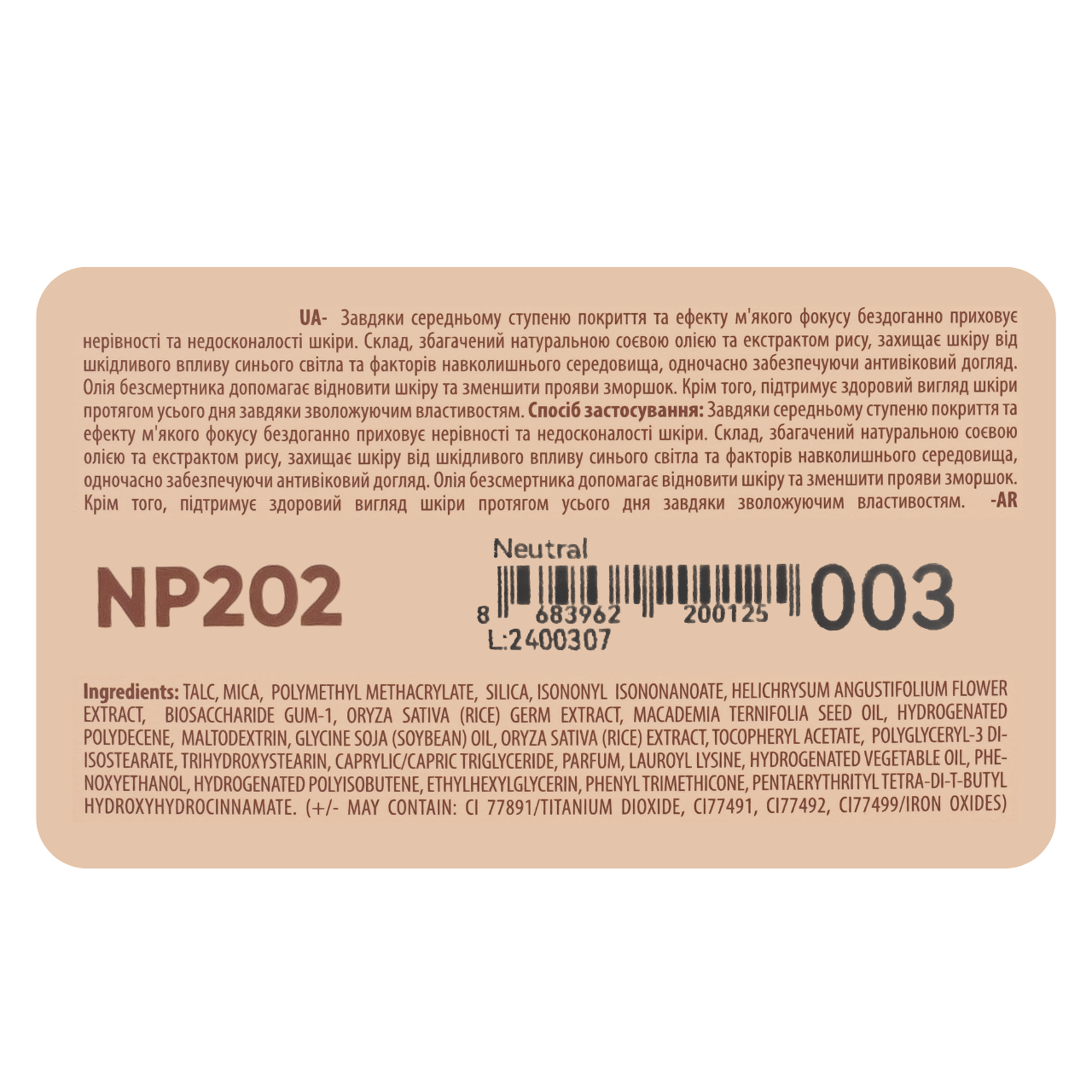 Цвет 003 Neutral Нейтральный