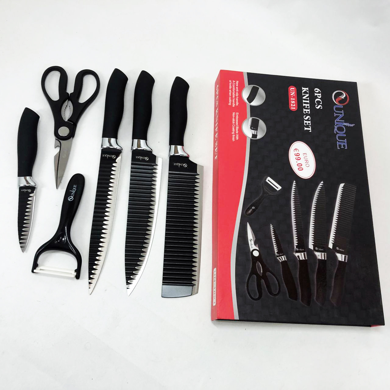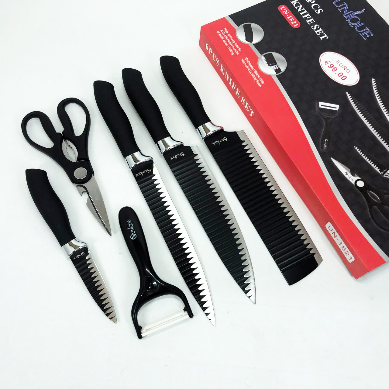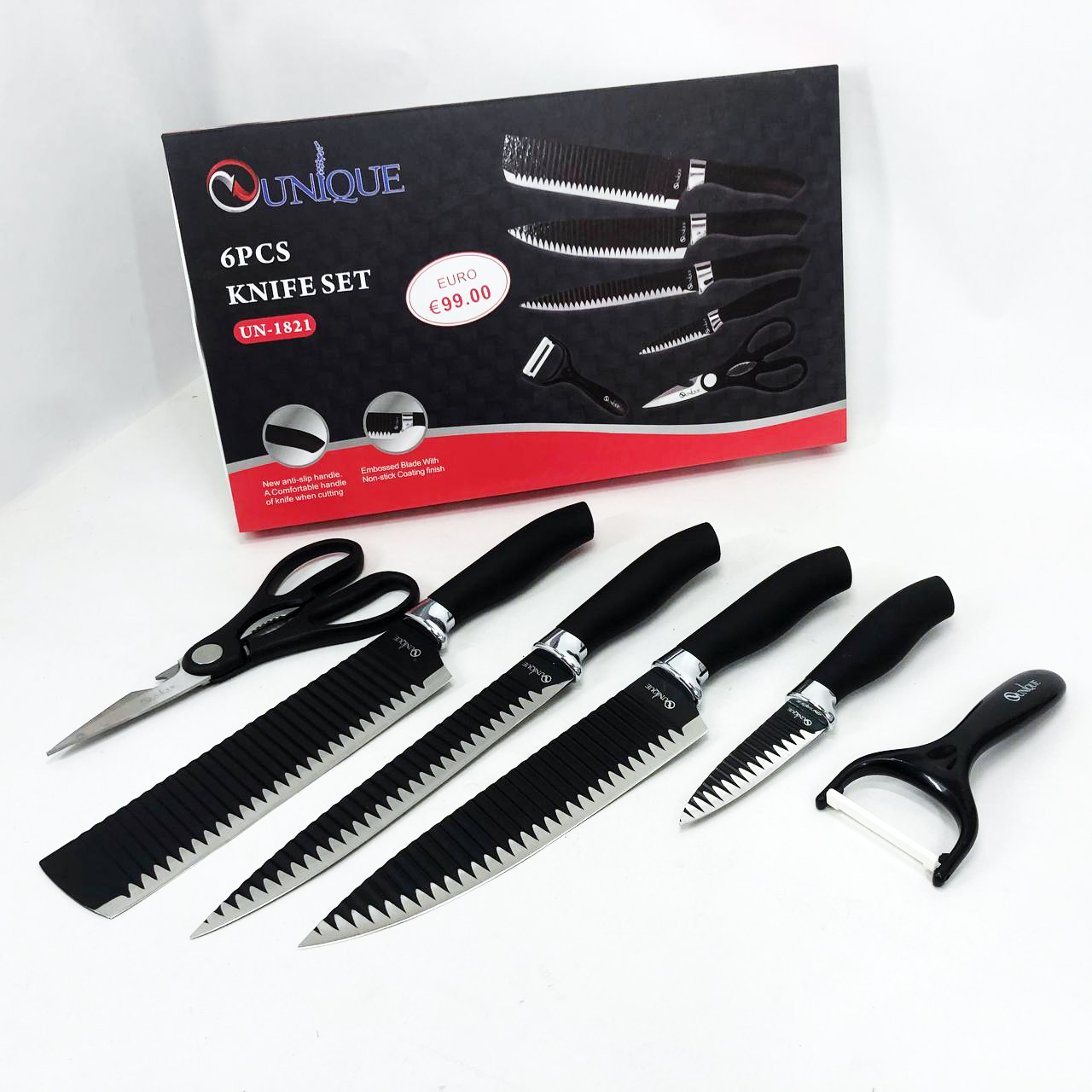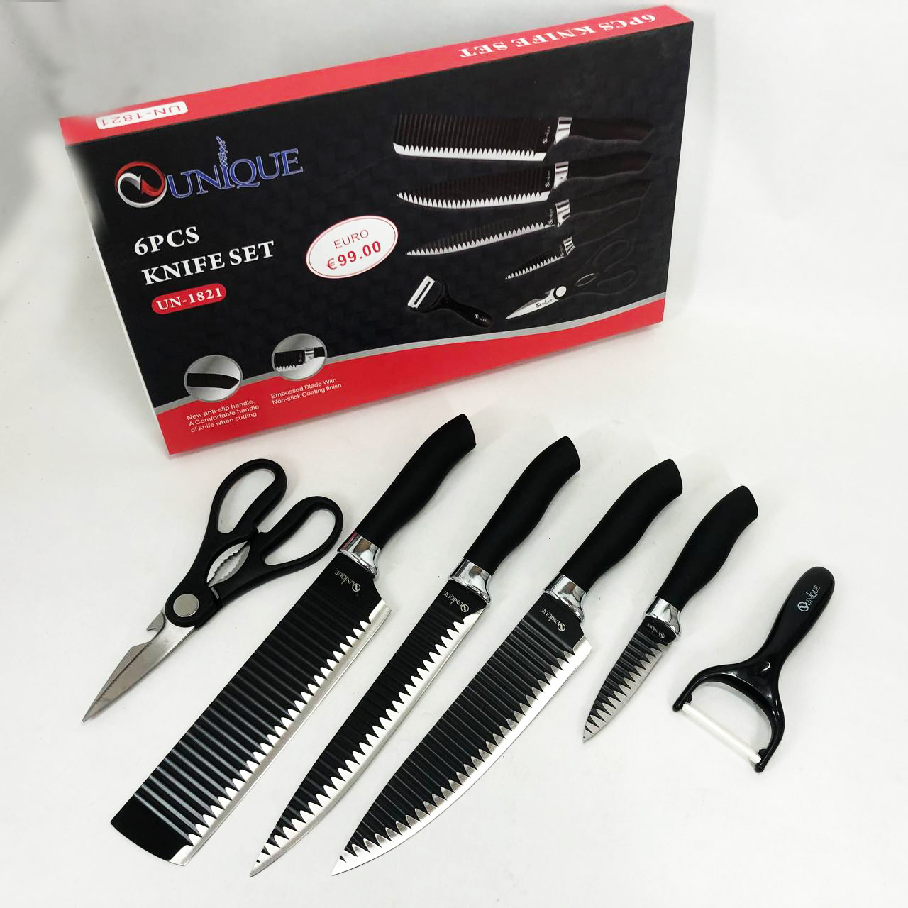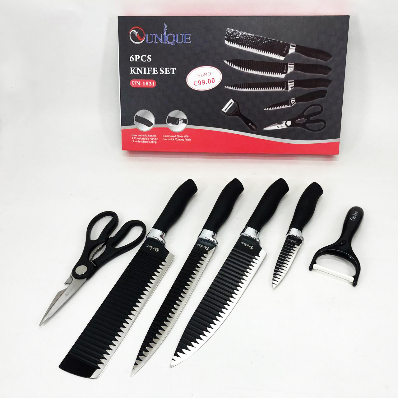 Набір ножів UNIQUE UN-1821 – відмінні ножі, які допоможуть вам справитися з приготуванням найрізноманітніших страв з м’яса, птиці, риби або овочів. Це якісні, практичні, надійні ножі, які завжди стануть Вам у нагоді в господарстві і будуть служити дуже довго.